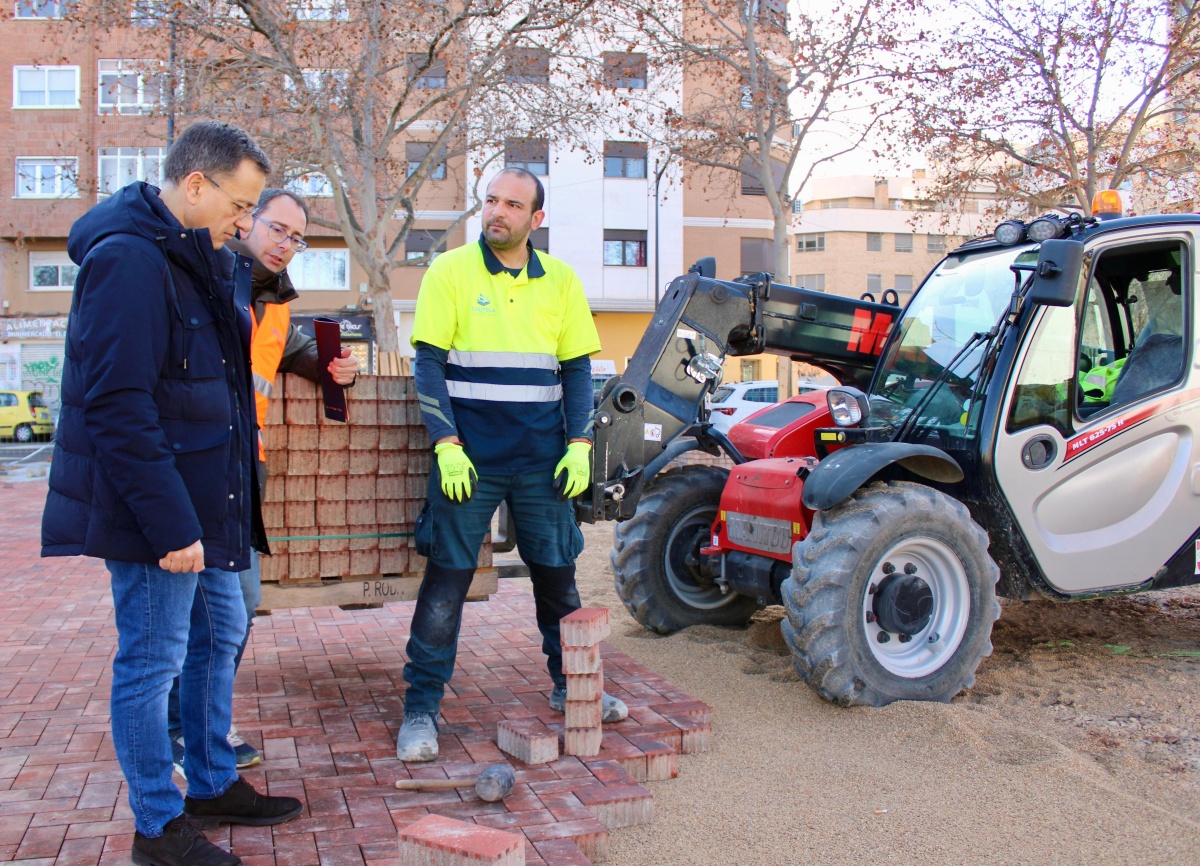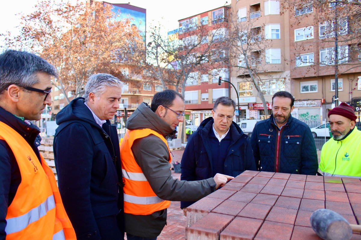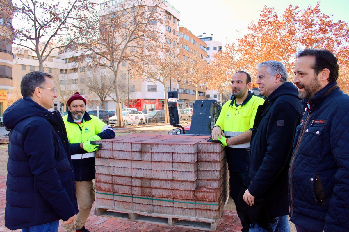 El alcalde ha explicado que, tras la demolición y retirada del pavimento de hormigón, la instalación de servicios soterrados y la colocación de una capa de grava fina, se ha comenzado a colocar un adoquín similar al del resto del entorno ferial, empezando por la Avenida Arquitecto Julio Carrilero con la calle Feria.