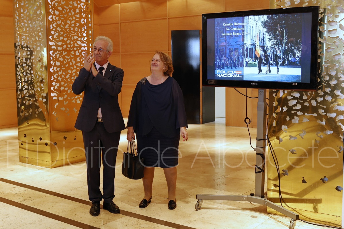 Tras años al frente de la Comisaría Provincial de la Policía Nacional en Albacete y después de toda una vida dedicada con entrega y vocación a la labor policial, el comisario Antonio Bueno inicia ahora una nueva etapa marcada por su merecida jubilación. Un momento que ha querido compartir con colegas de profesión, amigos, familiares y compañeros dedicados al servicio público como el alcalde de Albacete, Manuel Serrano; el presidente de la Diputación Provincial, Santiago Cabañero; el subdelegado del Gobierno en Albacete, Miguel Juan Espinosa, así como con representantes de la Guardia Civil, Ejército y Policía Local de Albacete con quienes ha trabajado codo con codo durante este tiempo, velando por la seguridad de los albaceteños.