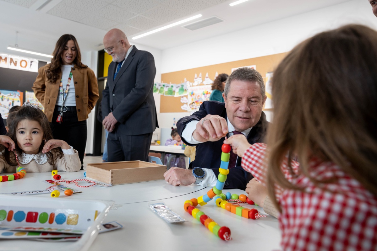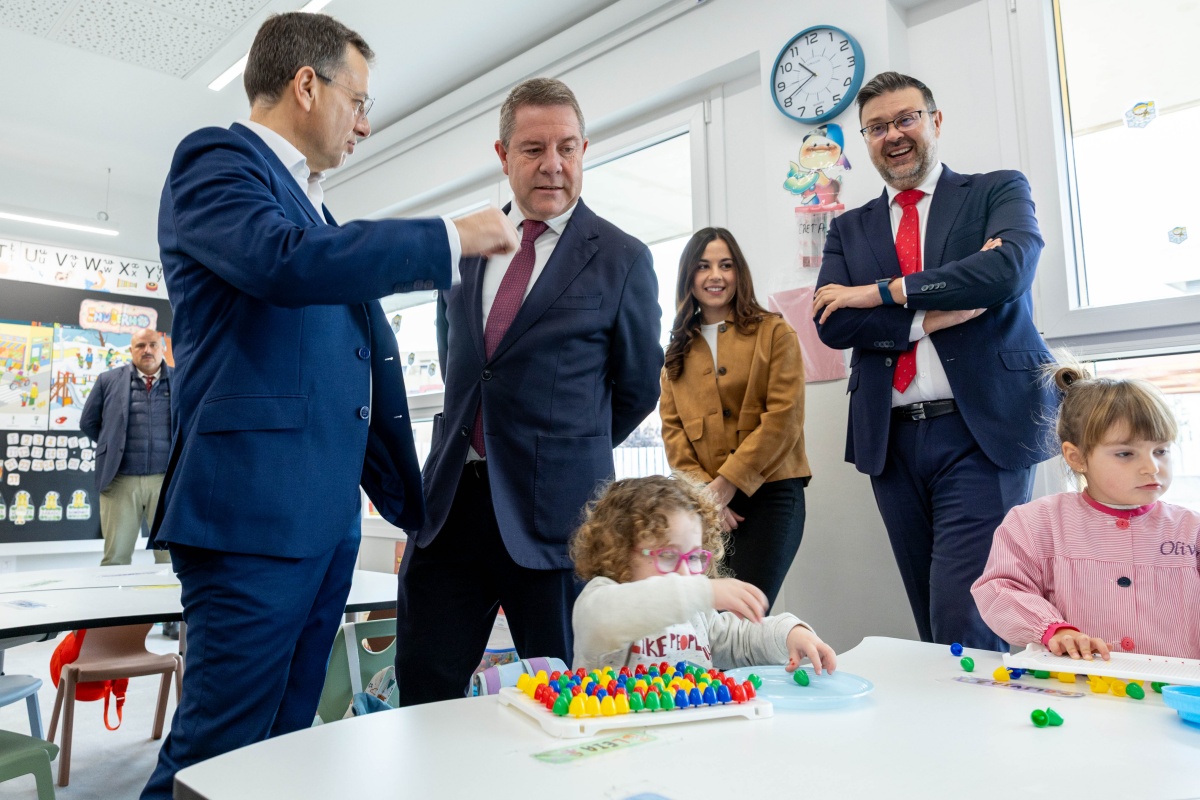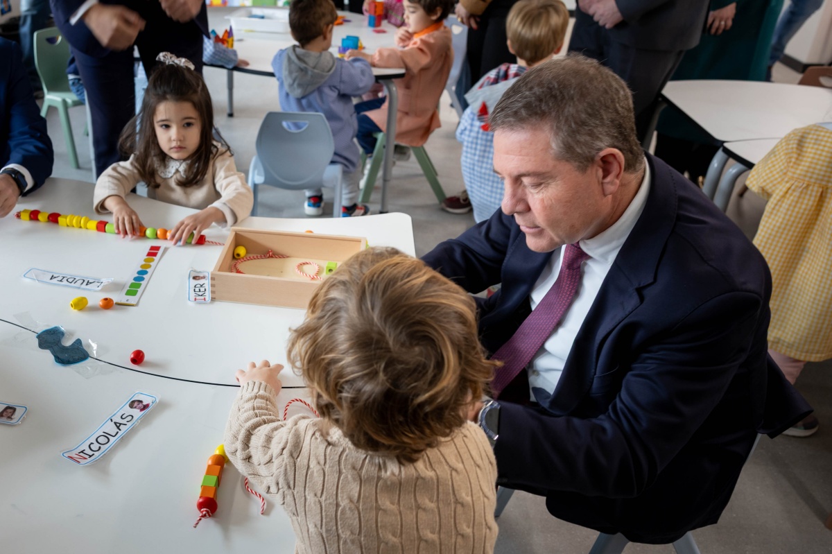 El presidente de Castilla-La Mancha, Emiliano García-Page, ha inaugurado este viernes el colegio público de educación infantil del barrio de la Universidad de Albacete, una instalación cuya primera fase de obras ya ha concluido y que permitirá atender a un máximo de 150 alumnos. El acto ha incluido el descubrimiento de una placa conmemorativa, que el jefe del Ejecutivo autonómico ha desvelado junto al alcalde de la ciudad, Manuel Serrano.