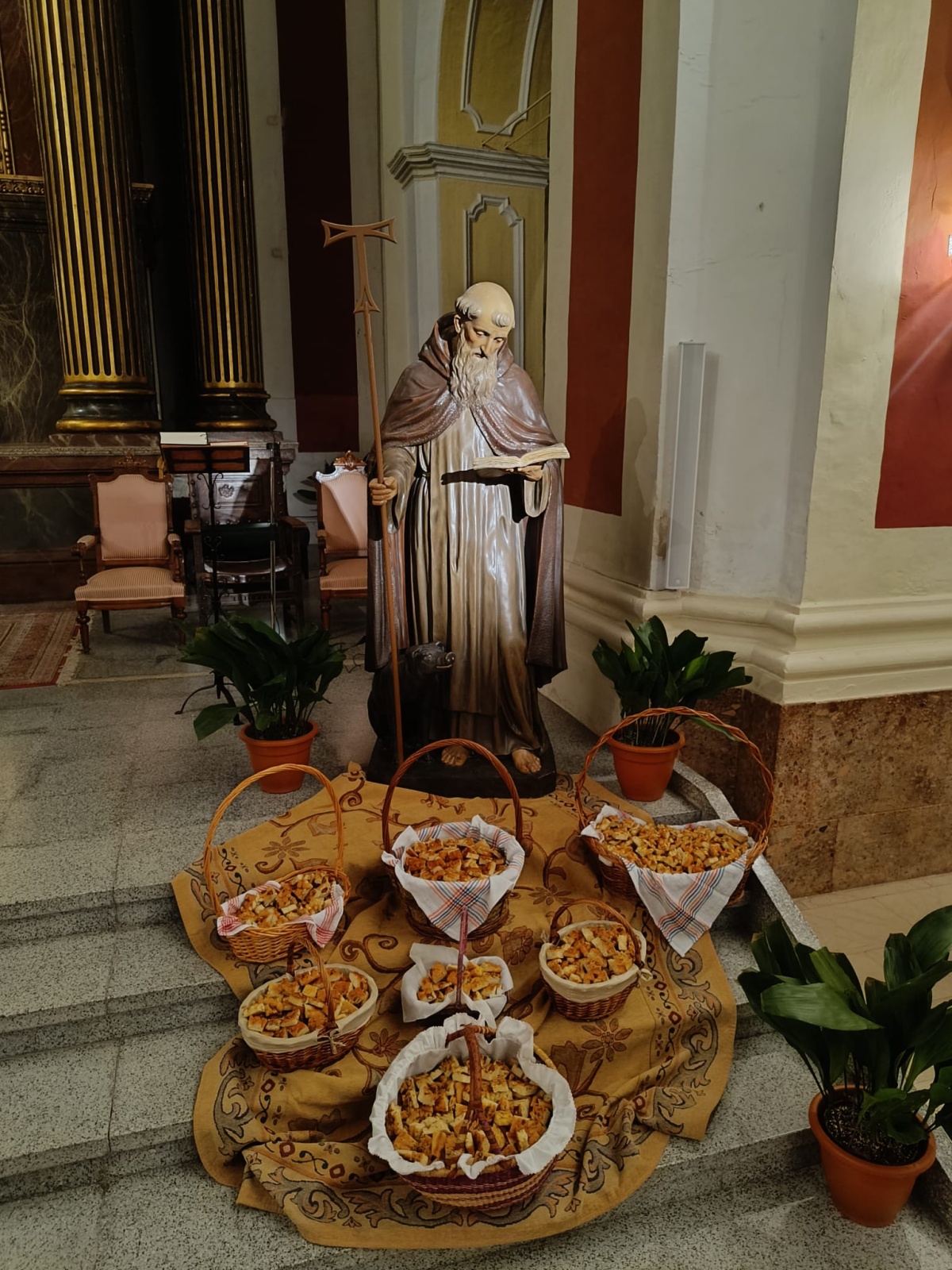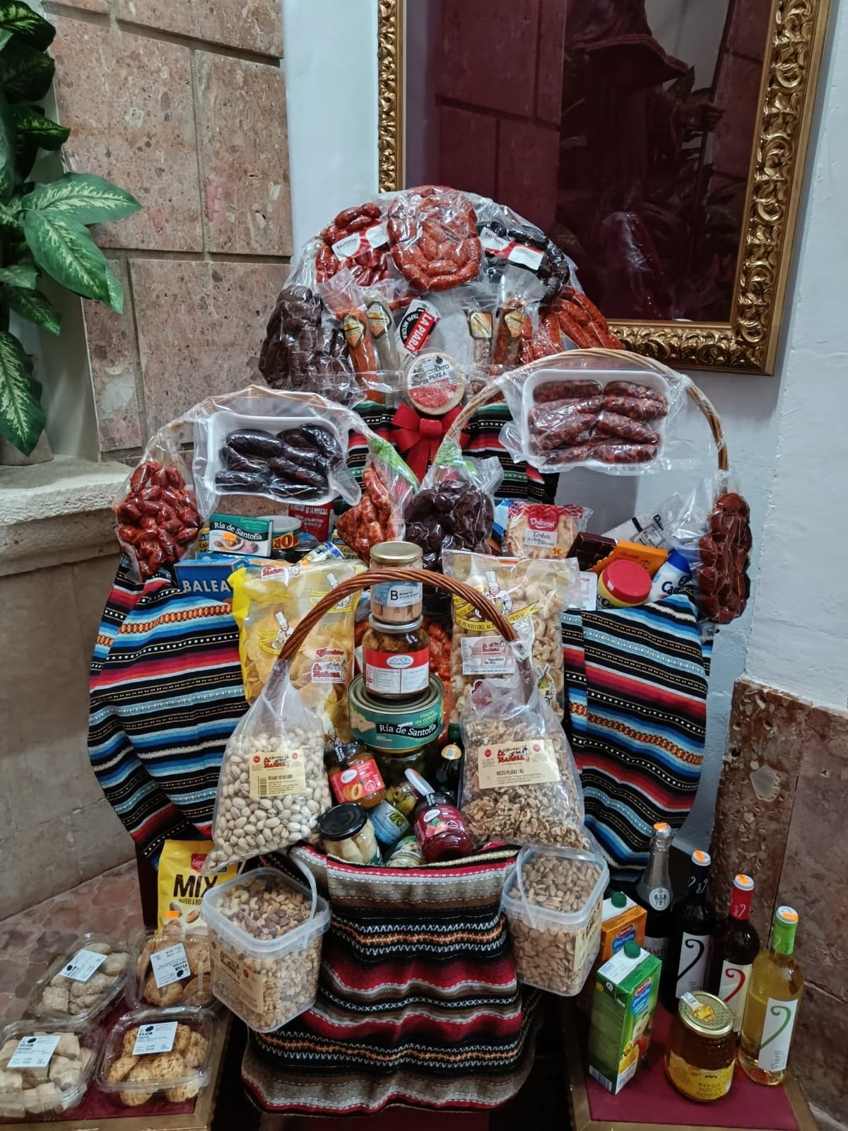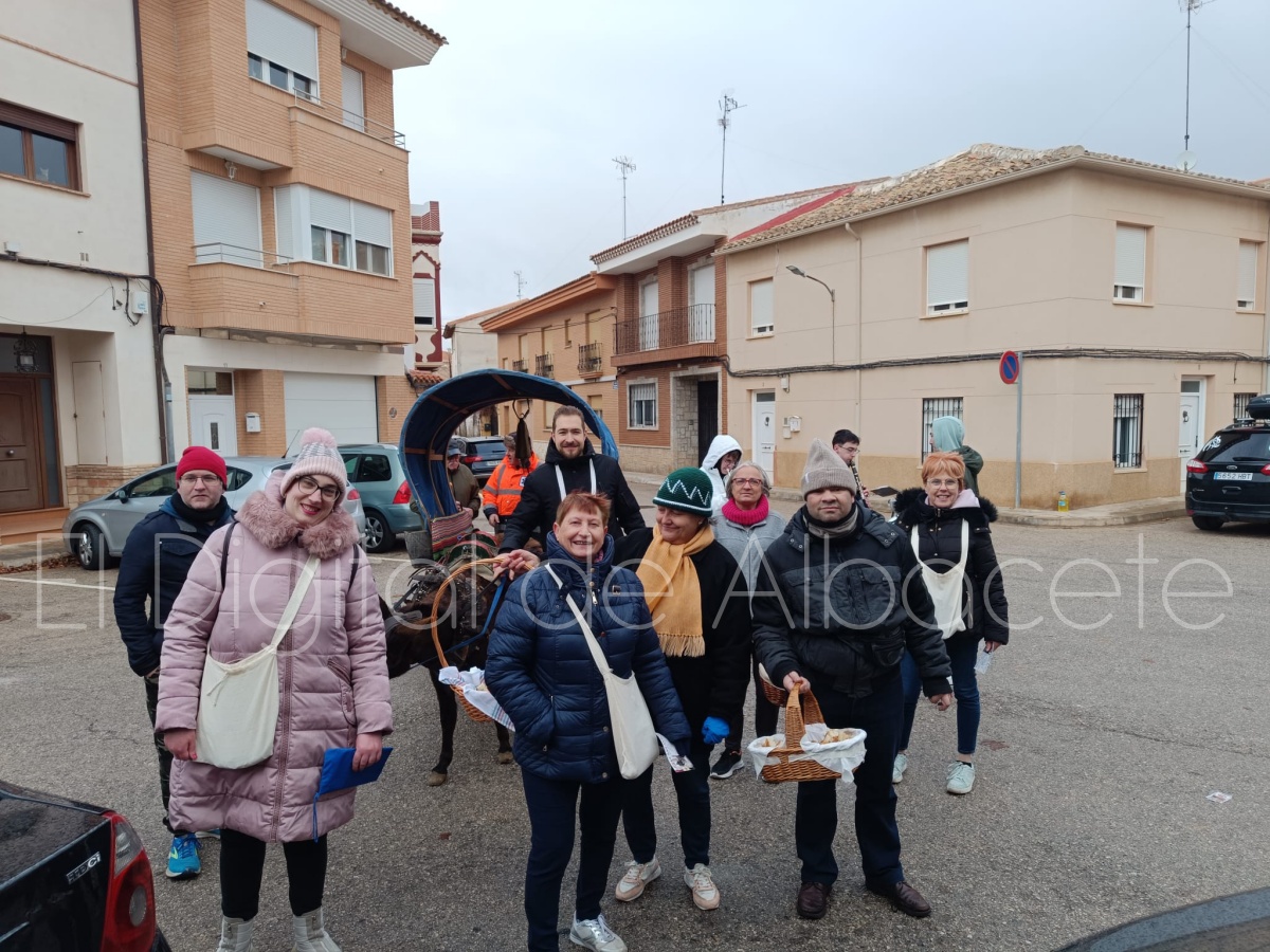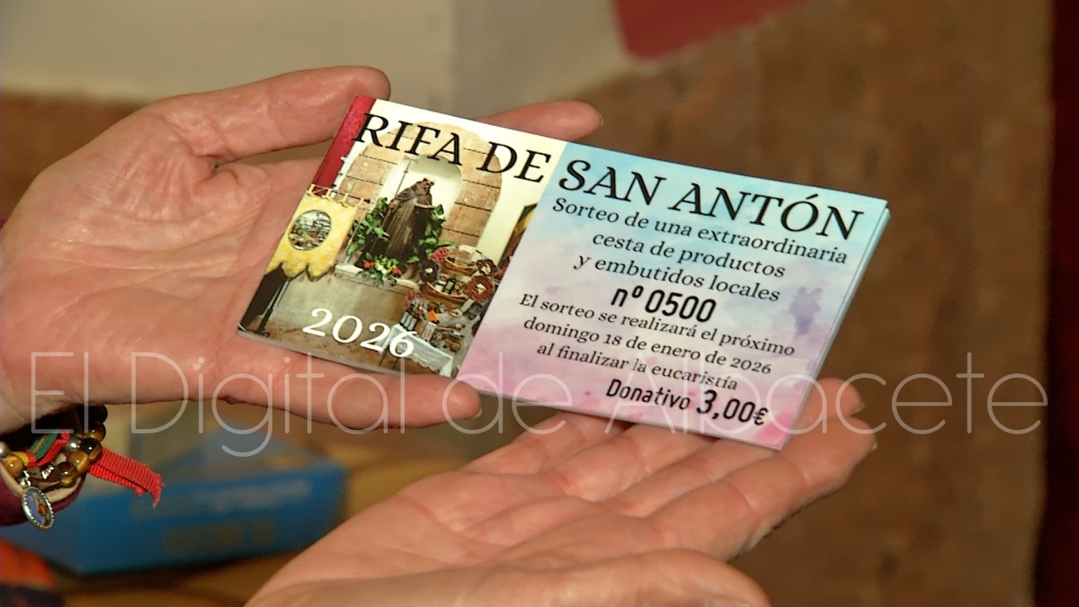 Además de repartir Pan Bendito con el carro y el burro, la comitiva va vendiendo a los vecinos papeletas para una rifa. Juan Antonio Gómez, colaborador de la Iglesia San Juan Bautista de Casas Ibáñez, nos cuenta que “Cuando el Pan Bendito ya estaba hecho, se llevaba a la iglesia a bendecir, para luego salir con el carro y la mula a repartirlo a los vecinos, y de paso vender papeletas para la rifa del gorrino. Al que le tocaba el cerdo, ya se encargaba de la matanza en su casa. Cuando empezaron las restricciones, y ya no se podía hacer matanza en las casas, reemplazaron la rifa del marrano por el de cuatro jamones. Con el tiempo, en la actualidad se ha sustituido por la rifa de una cesta que, para seguir con la tradición, está compuesta por productos obtenidos del cerdo, como jamón, salchichón, chorizo, morcilla, longanizas, o lomo, en total unos 24 kg de embutido. Se podría decir que se sigue rifando un gorrino, pero ahora ya viene ‘empaquetao’, y la cesta tiene un valor de unos 600 €”, concluye. En plena comarca de La Manchuela, Casas Ibáñez elabora el Pan Bendito, una tradición ancestral, e irresistiblemente dulce, que ayuda a entrar en calor en este frío mes de enero, que anuncia por fin sus fiestas de San Antón.