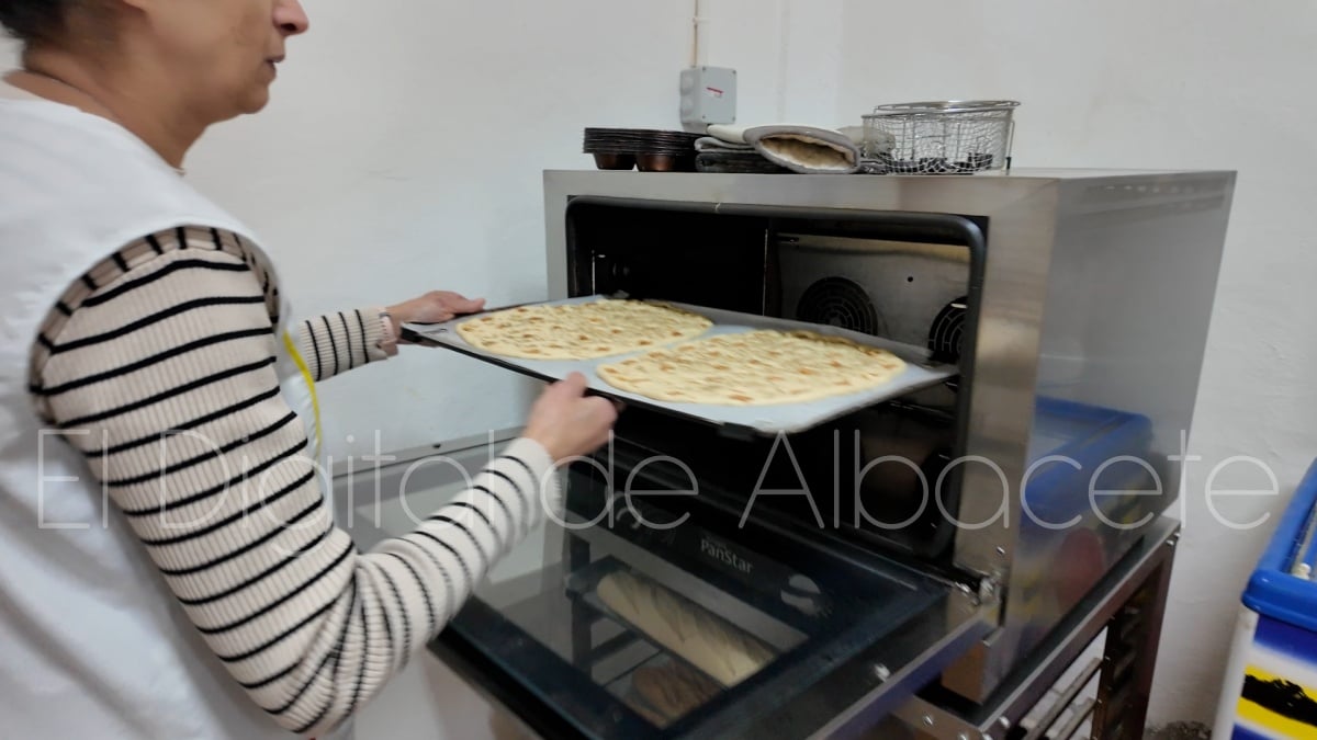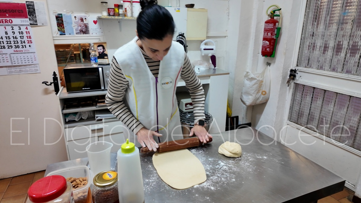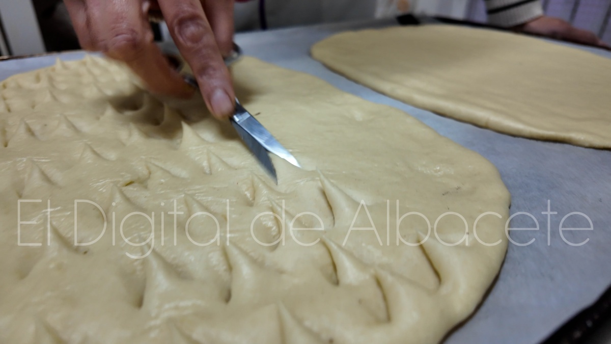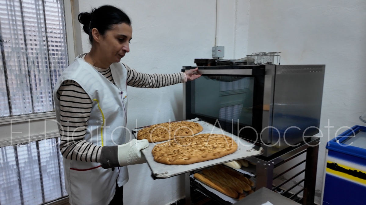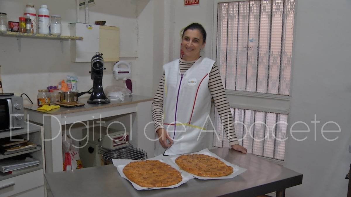 Hace unos años, la pastelería ‘Brioch’ de Casas Ibáñez recuperó la receta tradicional del Pan Bendito. Florentina Feraru, de la pastelería ‘Brioch’, explica que “este dulce consiste en una torta de masa de pan elaborada con aceite, harina, manteca, levadura, huevo, sal, y agua. Se mezclan todos los ingredientes en la amasadora durante unos 10 minutos, hasta conseguir una masa fina. Una vez conseguida esa textura se deja fermentar unos 15 minutos. Cuando ya está fermentada la masa, la dividimos en porciones de unos 500 gramos para luego amasarlas en forma de bola. Luego la extendemos con un rodillo, y se deja en un sitio cálido para que suba su volumen. Pasado un tiempo se harán unos cortes con las tijeras para dejar unas ranuras en la masa donde irán las almendras. Luego se espolvorea con anises o matalahúva, y se clavetea con las almendras antes de llevarlo al horno, donde deberá estar unos 15 minutos. Mientras la masa está en el horno, se pone en un cacharro unos 200 gramos de miel, y 50 gramos de aceite y se lleva a fuego, removiendo con una cuchara hasta que los dos ingredientes se mezclen creando una emulsión más líquida. Pasados los 15 minutos, se saca del horno, se cubre con la miel que hemos preparado, y a disfrutar del Pan Bendito”, señala.