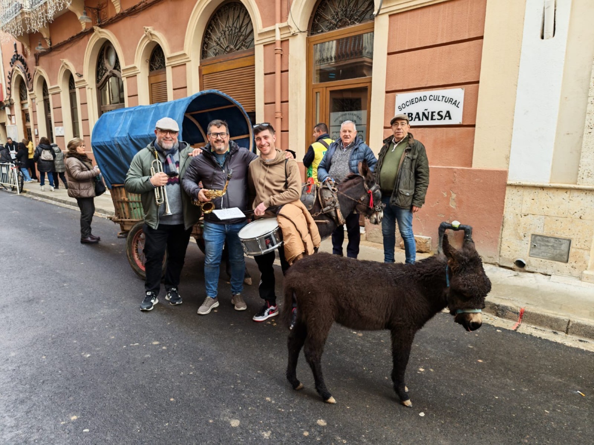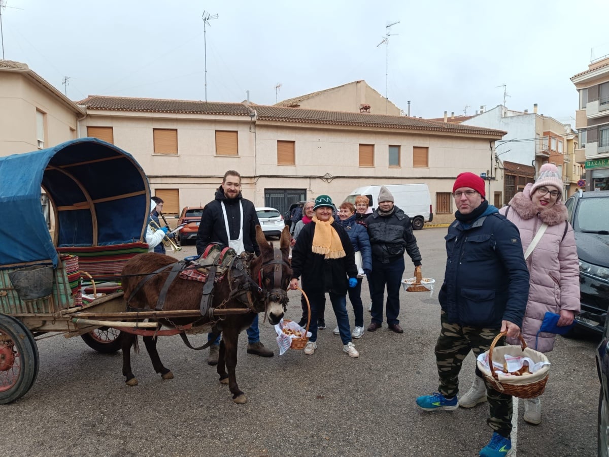 En sus orígenes, este dulce se elaboraba solo en enero para honrar a San Antón y, una vez bendecido en la Iglesia, era llevado en cestos para ser vendido por las calles del pueblo al son de tambores y dulzainas. Una tradición que aún se mantiene gracias a José Gil, un vecino de Casas Ibáñez que, a sus 71 años, sigue haciendo el tradicional pasacalles con la carreta de San Antón, tirada por un burro, repartiendo Pan Bendito por las calles de la localidad. “De pequeño he labrado mucho con las mulas, y es algo que llevo en los genes. Siempre me ha gustado mantener las tradiciones, así que, cuando llegan estas fechas, estoy deseando enganchar el burro de Pepe Jesús, y salir con la carreta a repartir Pan Bendito a los vecinos por las calles de mi pueblo, algo que llevo más de 20 años haciendo, y es todo un orgullo para mí. El Pan Bendito se bendice temprano en la Iglesia, y a eso de las 10 de la mañana, lo recogemos y salimos a hacer un recorrido por el pueblo para repartirlo. Antiguamente, la carreta iba acompañada del ‘tío de la pita’, dos músicos tocando tambor y dulzaina, pero ahora voy acompañado de una charanga de músicos del pueblo, y los vecinos salen a la calle a recibirnos en cuanto escuchan la música”, describe.