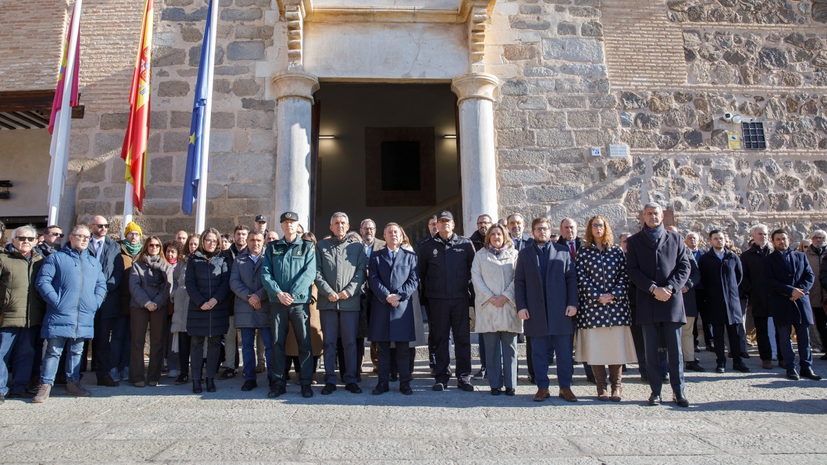 Al minuto de silencio han asistido, además, varios consejeros del Gobierno regional, así como el secretario de Organización del PSOE de Castilla-La Mancha y diputado nacional, Sergio Gutiérrez; el portavoz del grupo parlamentario Vox en las Cortes regionales, Iván Sánchez; y miembros de las fuerzas y cuerpos de seguridad del Estado.