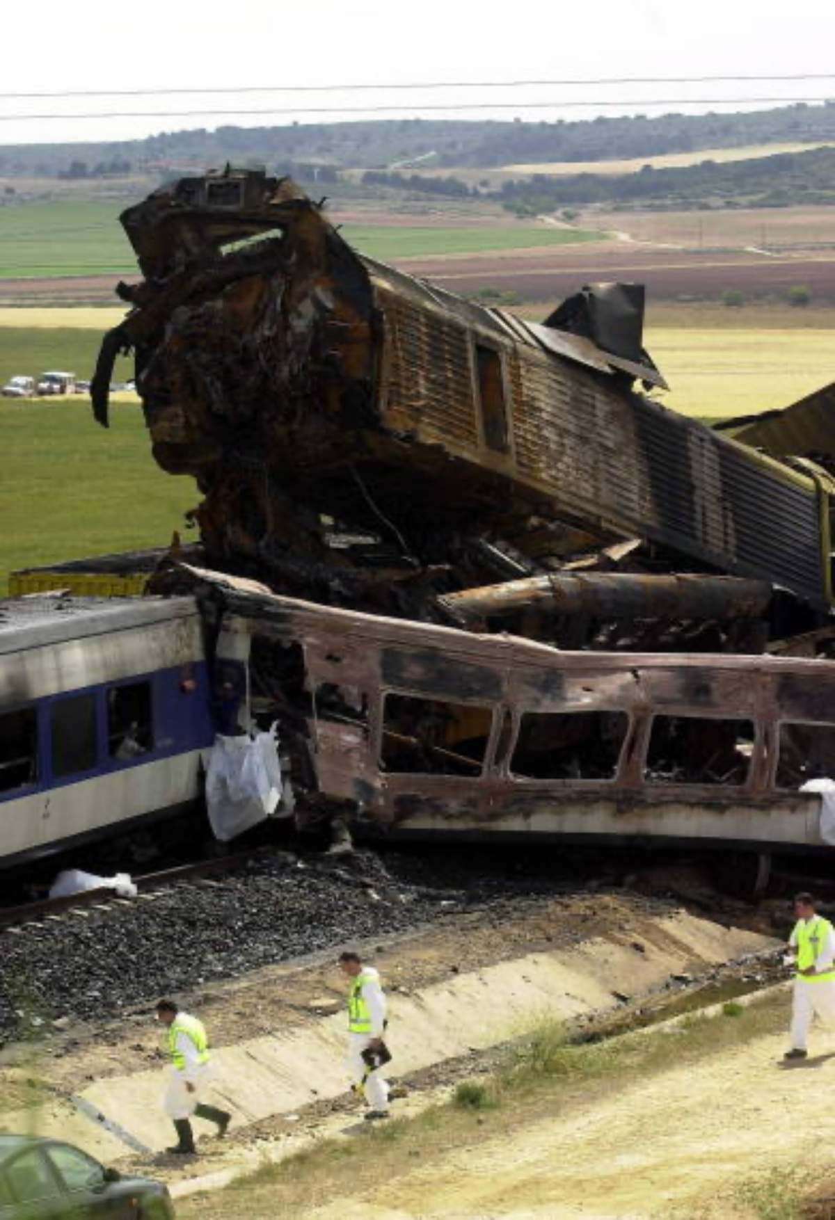 La segunda mayor tragedia ferroviaria en España ocurrió el 24 de julio de 2013 con el descarrilamiento en Angrois (A Coruña) de un tren de velocidad alta Alvia que cubría la ruta Madrid-Ferrol, murieron 80 personas y resultaron heridas 143.