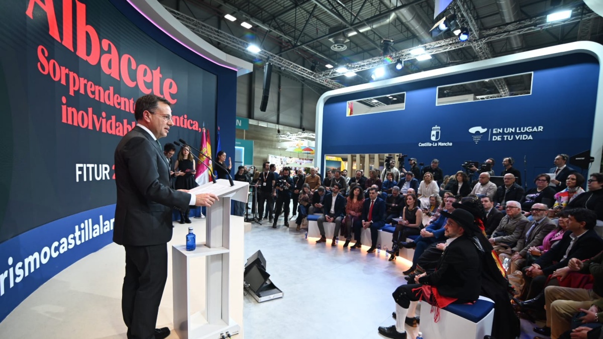Durante su intervención en este acto, Manuel Serrano destacaba que Albacete se presenta en FITUR bajo un lema que define su identidad: ‘Albacete sorprendente, auténtica e inolvidable‘. “Albacete es un gran destino, atractivo y atrayente, y debemos decirlo alto y claro en este foro inigualable que es FITUR”, subrayaba el alcalde, incidiendo en que la ciudad es “una forma de ser, de sentir y de vivir”.