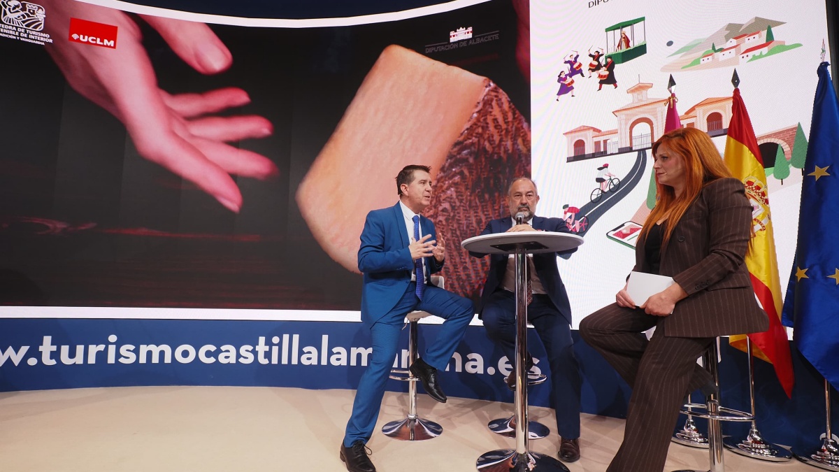 La presentación, celebrada en el estand de Castilla-La Mancha, ha contado con la participación del presidente de la Diputación, Santiago Cabañero, y del rector de la UCLM, Julián Garde, en un diálogo conducido por Raquel Cortijo y precedido por la proyección de un vídeo promocional del destino.