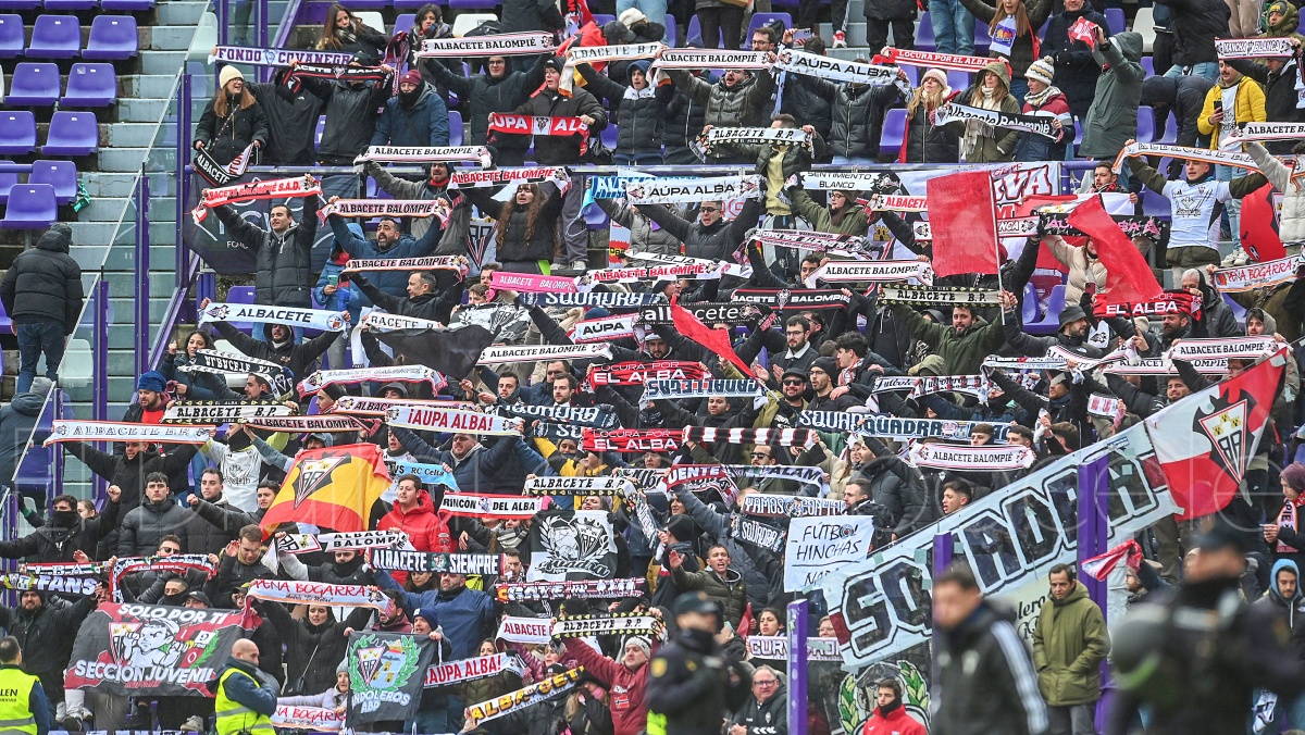 Varios centenares de aficionados del Albacete se desplazaron este sábado hasta Valladolid para alentar a su equipo y dejarse la garganta siendo el jugador número 12.