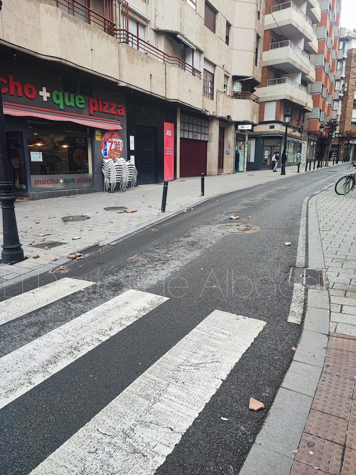 El suceso, debido al viento, tuvo lugar en una zona muy transitada de la ciudad, junto a la Plaza Mayor y frente a Villacerrada, paso habitual de miles de personas cada día. A ello se suma un factor especialmente sensible: el punto donde se produjo el desprendimiento se encuentra a escasos metros de un colegio, prácticamente enfrente, lo que incrementa la preocupación por el riesgo que pudo entrañar en un horario de elevada afluencia.