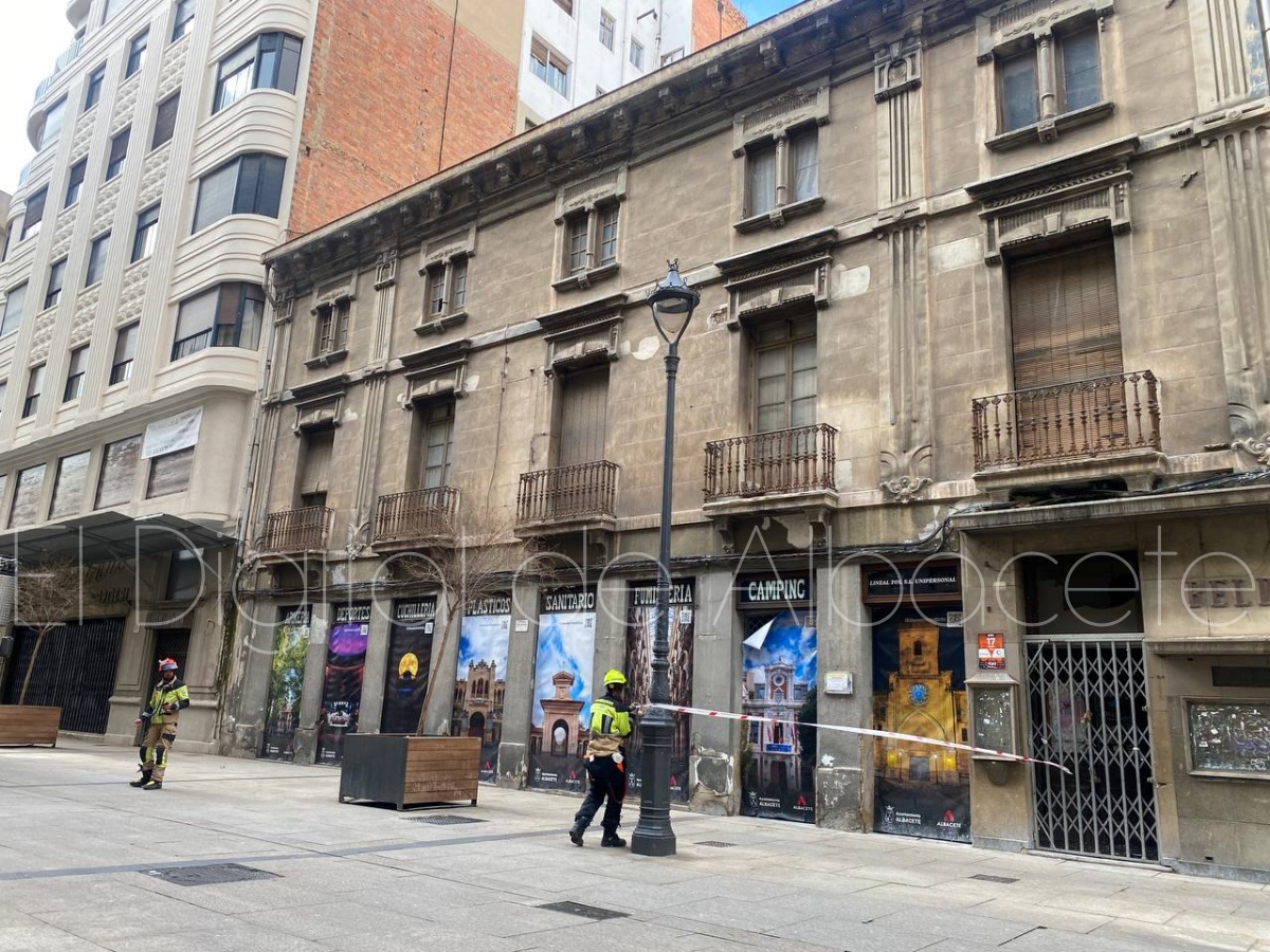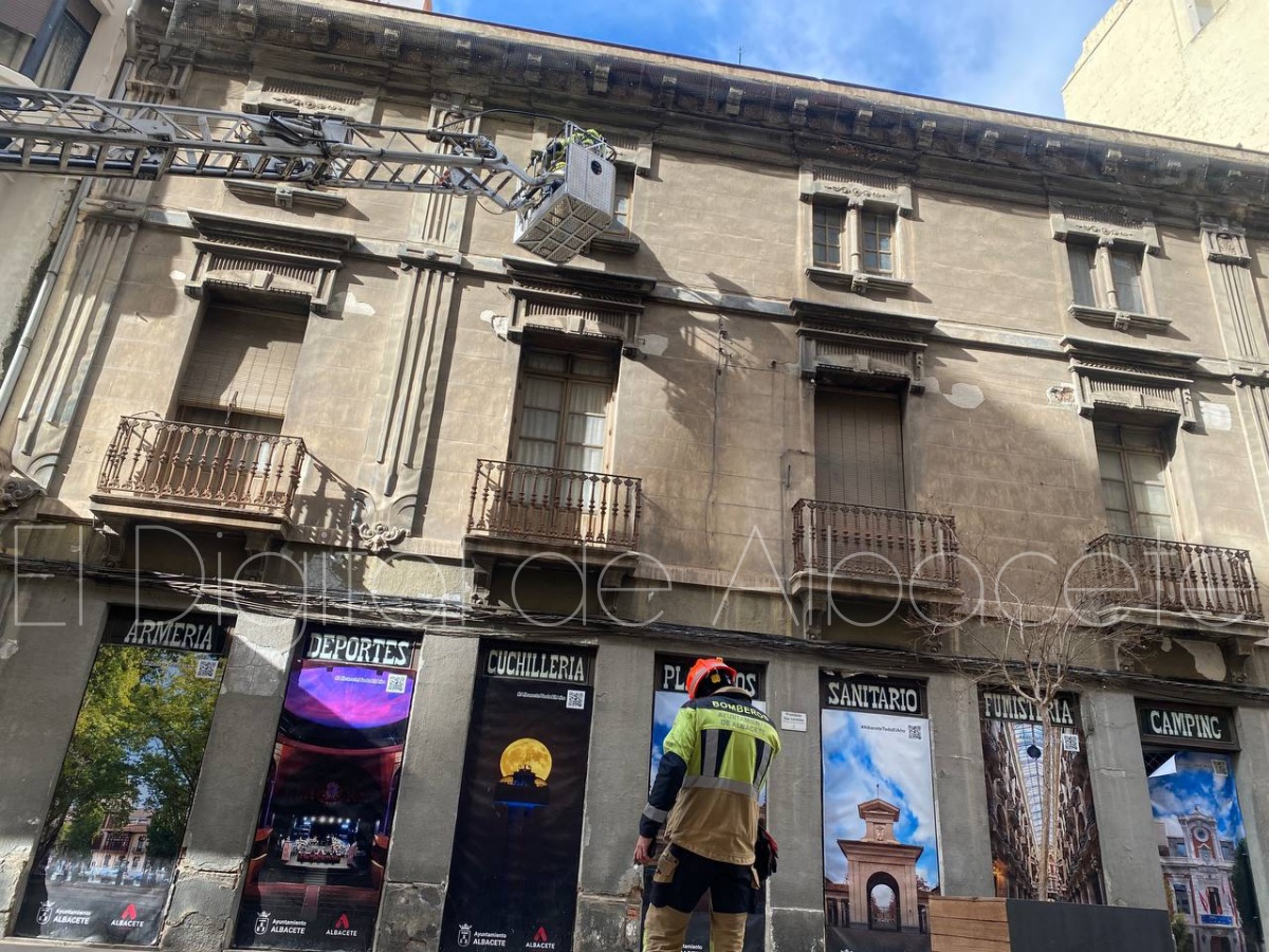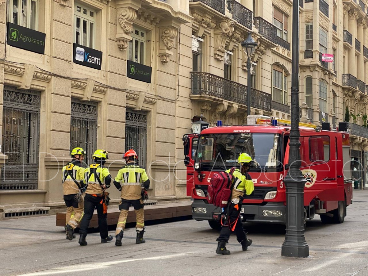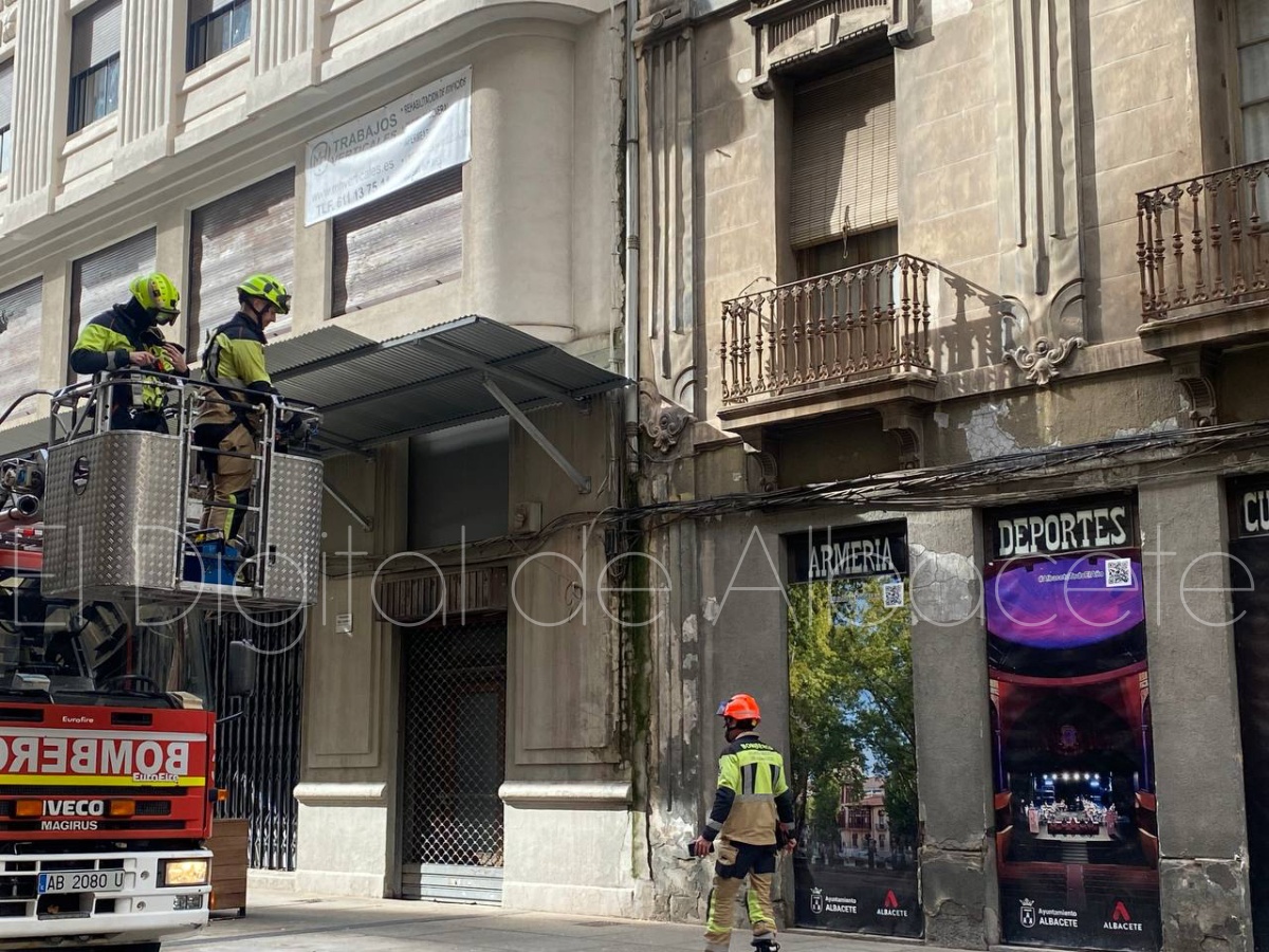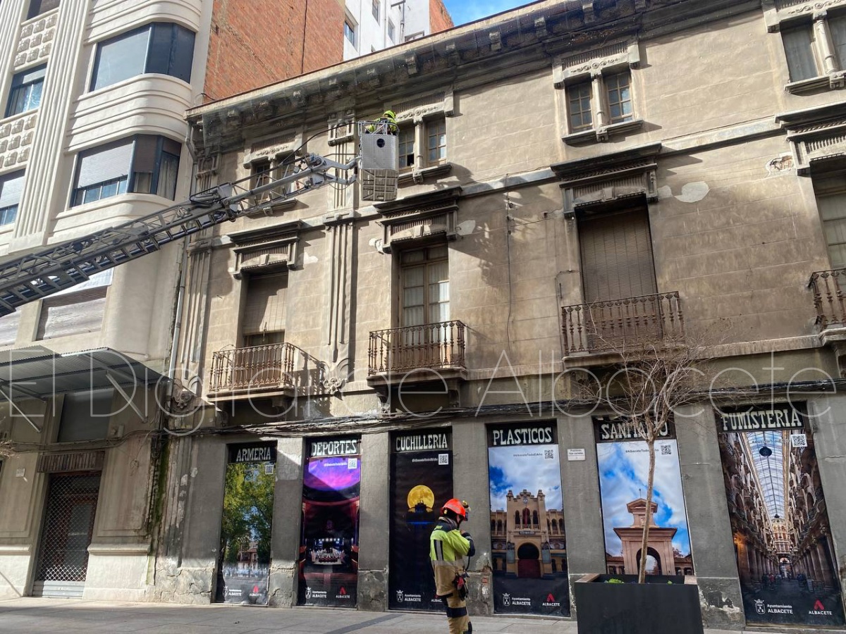 Poco después, sobre las 14:00 horas, los Bomberos de Albacete han tenido que intervenir en el emblemático edificio Belda, situado en la calle Ancha.
