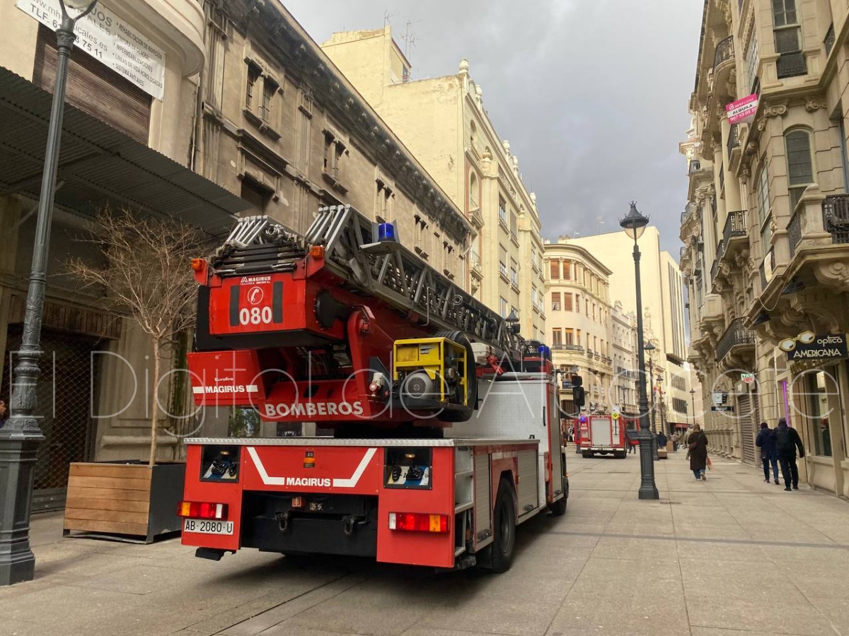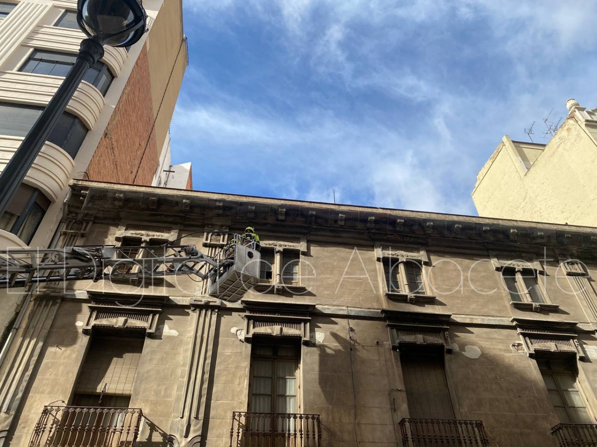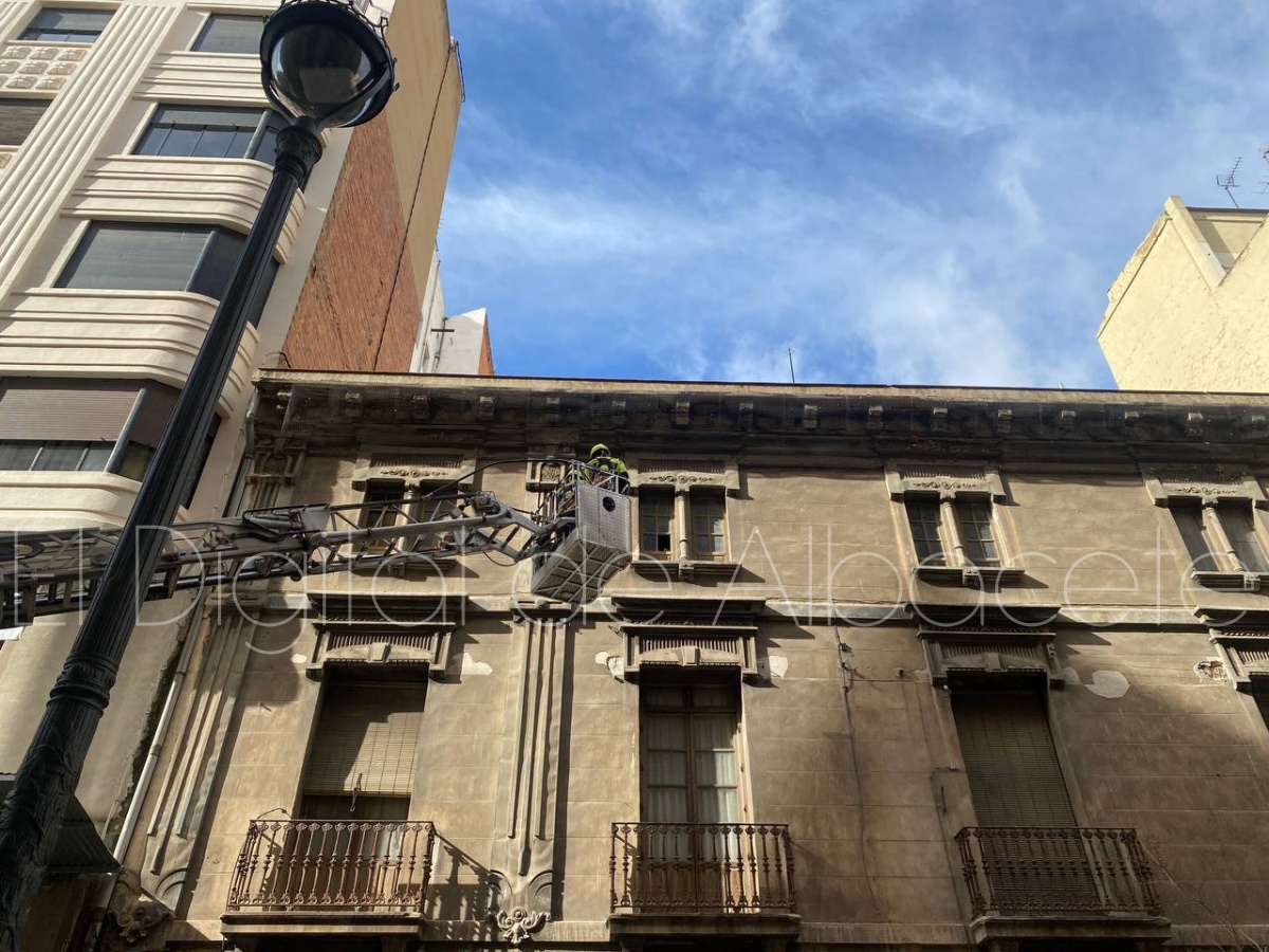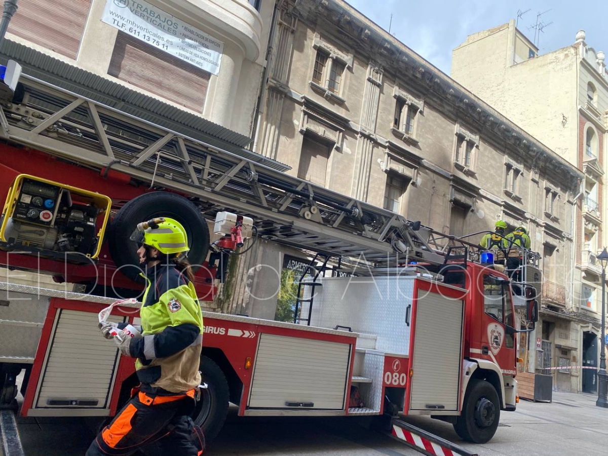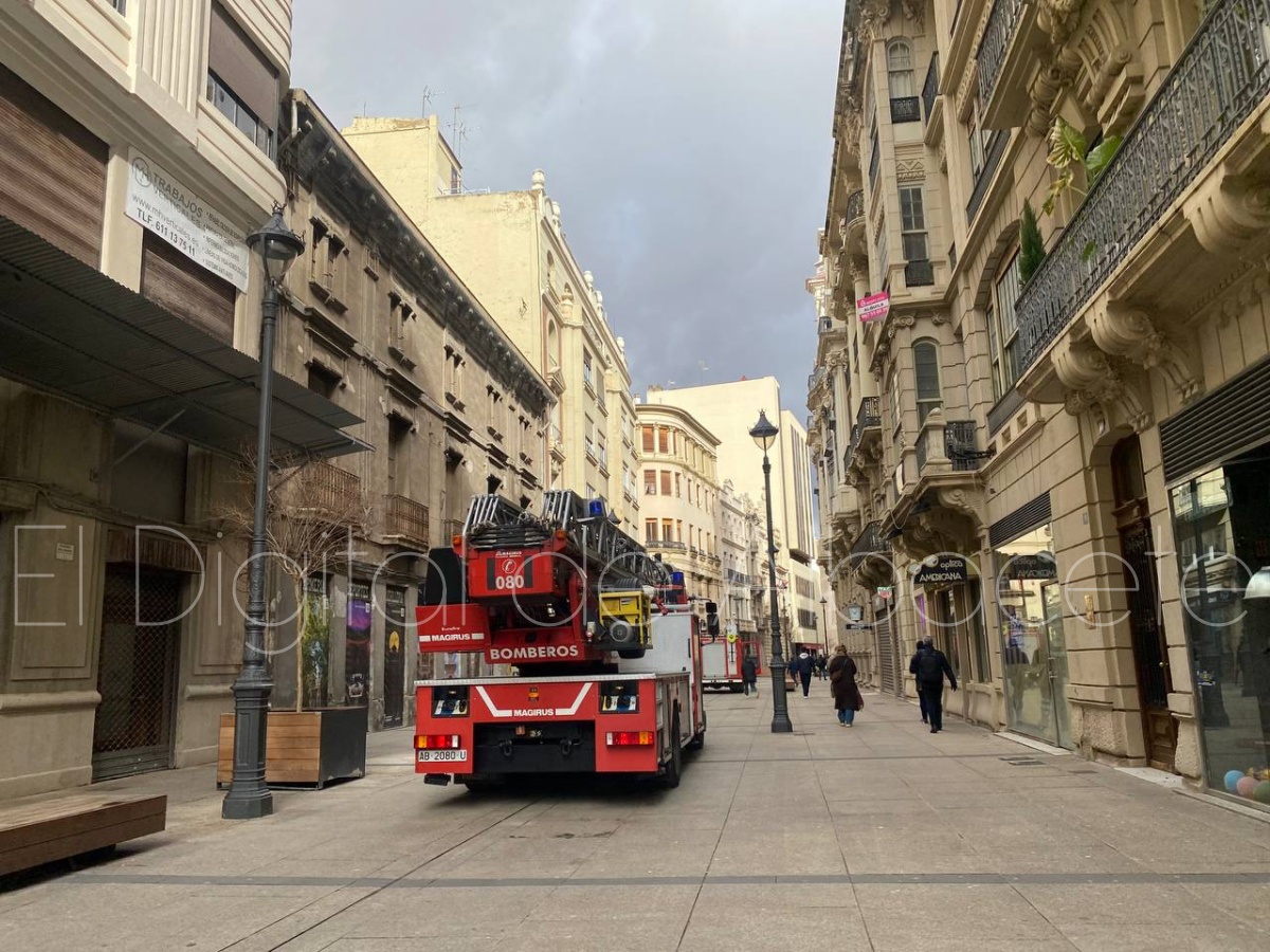 Poco después, sobre las 14:00 horas, los Bomberos de Albacete han tenido que intervenir en el emblemático edificio Belda, situado en la calle Ancha.