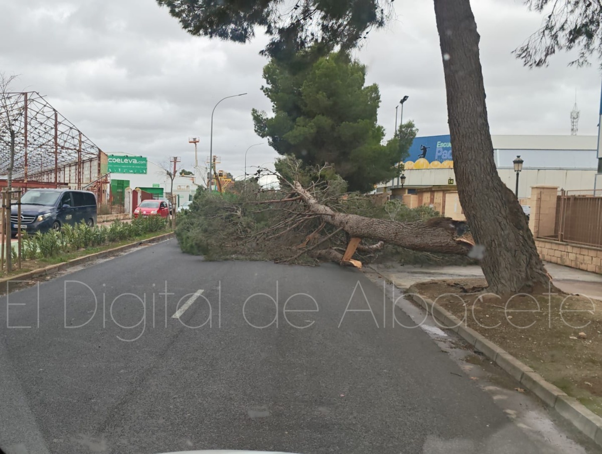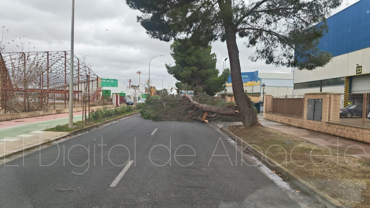 Un ejemplo es lo ocurrido en Campollano, donde el fuerte vendaval ha tirado un árbol en la Calle Autovía. Los hechos han ocurrido en torno a las 12.35 horas de este miércoles.