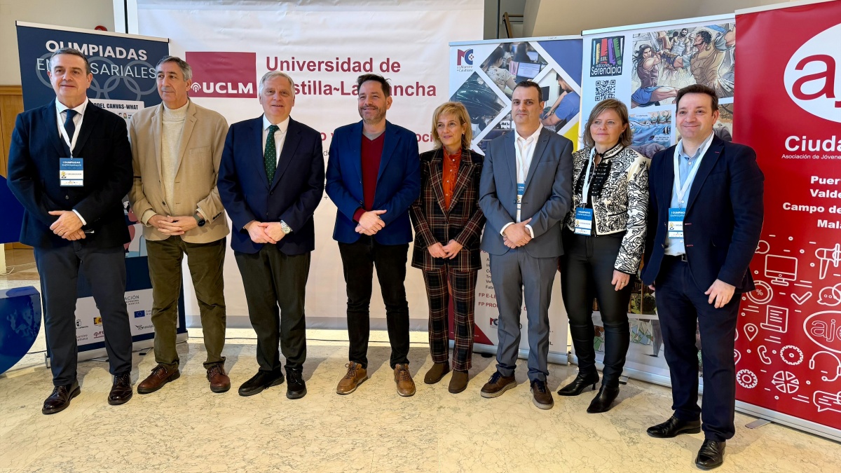 El encuentro ha sido inaugurado por el decano de la Facultad de Derecho y Ciencias Sociales, Fernando Callejas Albiñana; el alcalde de Ciudad Real, Francisco Cañizares Jiménez; el subdelegado del Gobierno en Ciudad Real, David Broceño Caminero; y el delegado provincial de Educación, Cultura y Deportes, José J. Caro Sierra; además de los responsables del proyecto ‘Business Game’, quienes han subrayado la capacidad del proyecto para acercar la Formación Profesional al entorno empresarial real y para impulsar metodologías de aprendizaje basadas en el juego y la innovación.