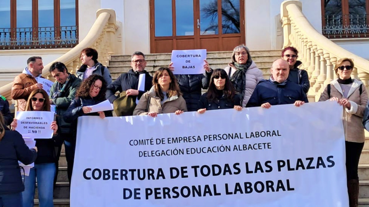 El comité de empresa del personal laboral de la delegación de Educación se ha concentrado este viernes frente a la Fábrica de Harinas de Albacete, reuniendo a una veintena de personas, para denunciar la eliminación de plazas de ordenanza en los centros de la provincia y ha solicitado que se cubran las bajas de trabajadores.