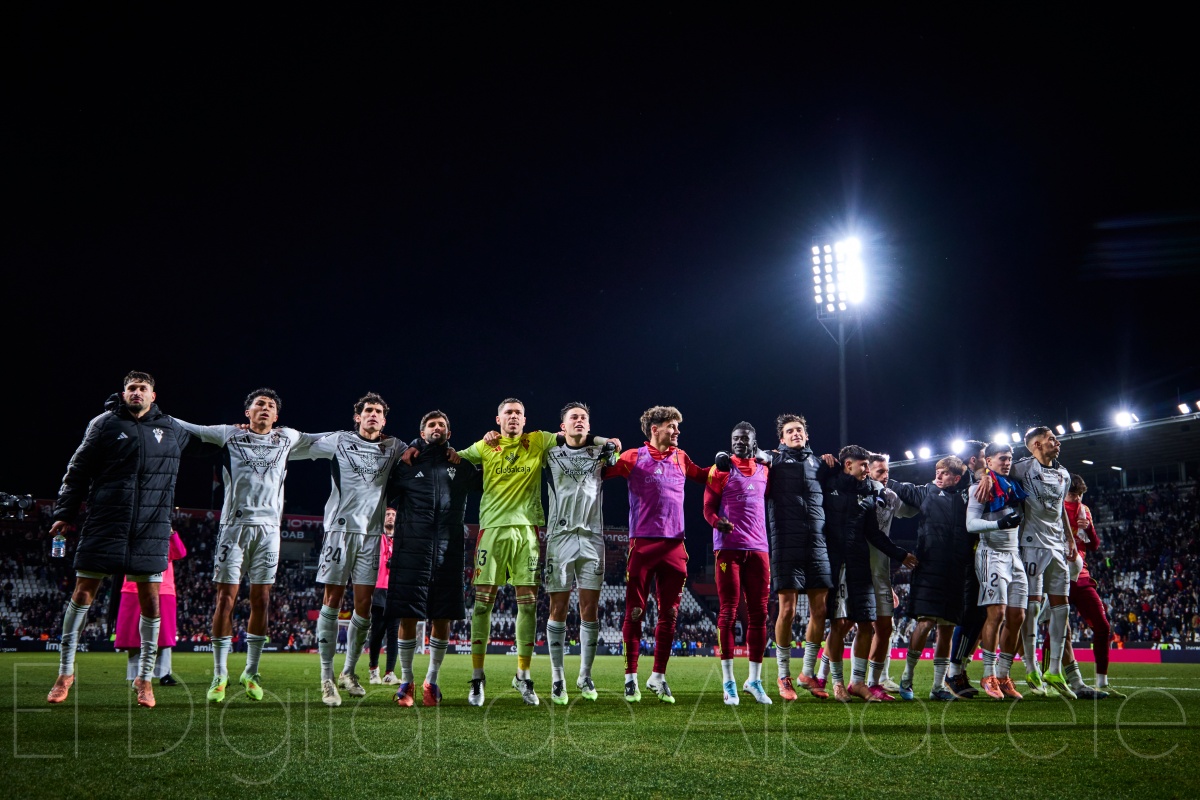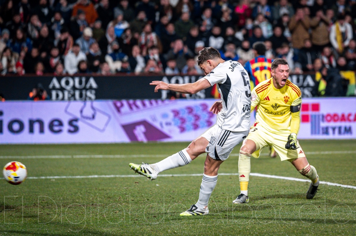 Salió el conjunto visitante muy metido en harina y pronto pudo ampliar distancias en el marcador por mediación de Dani Olmo, que gozó de una clara ocasión cuando apenas habían transcurrido dos minutos desde que comenzara la segunda mitad, pero el balón tocó en el cuerpo de Jesús Vallejo y acabó saliendo por encima del larguero. El que no perdonó fue Araújo, quien a la salida de un córner ganó la partida a su marcador, Javi Villar, y remató con certidumbre de cabeza para batir a Raúl Lizoain y poner el 0-2