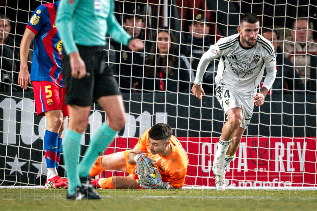 Parecía haber reaccionado el Barcelona tras el gol de Javi Moreno con un gol de Ferrán en el minuto 90, pero el colegiado lo anuló por fuera de juego a instancias del VAR.