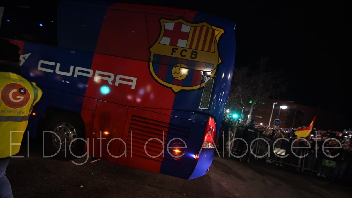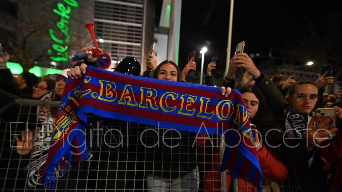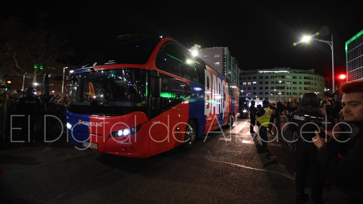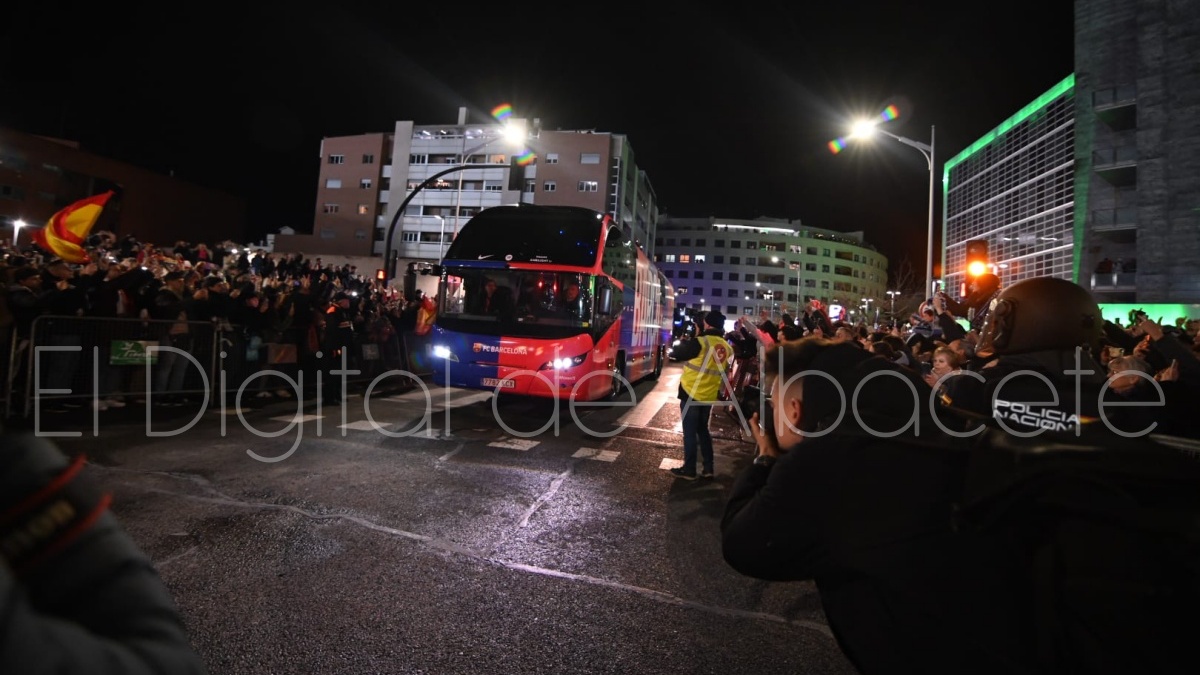 Poco después de las 19.30 horas, el FC Barcelona llegaba al Carlos Belmonte de Albacete para medirse al cuadro blanco a partir de las 21.00 horas por una plaza en las semifinales de la Copa del Rey