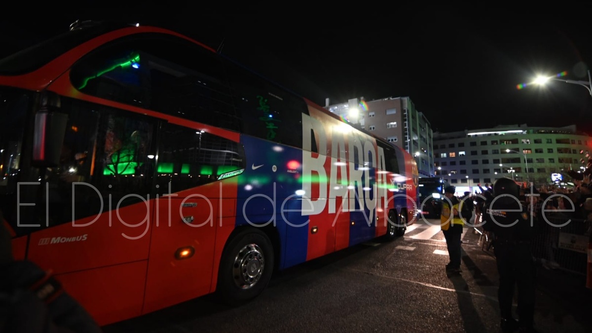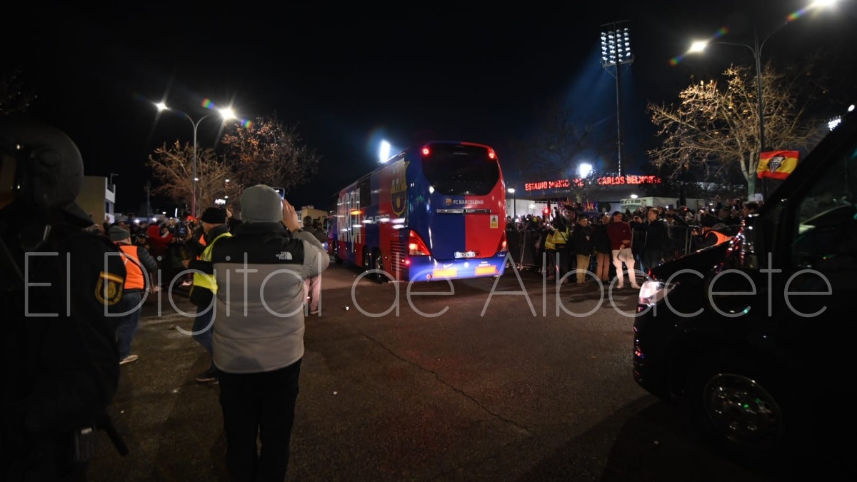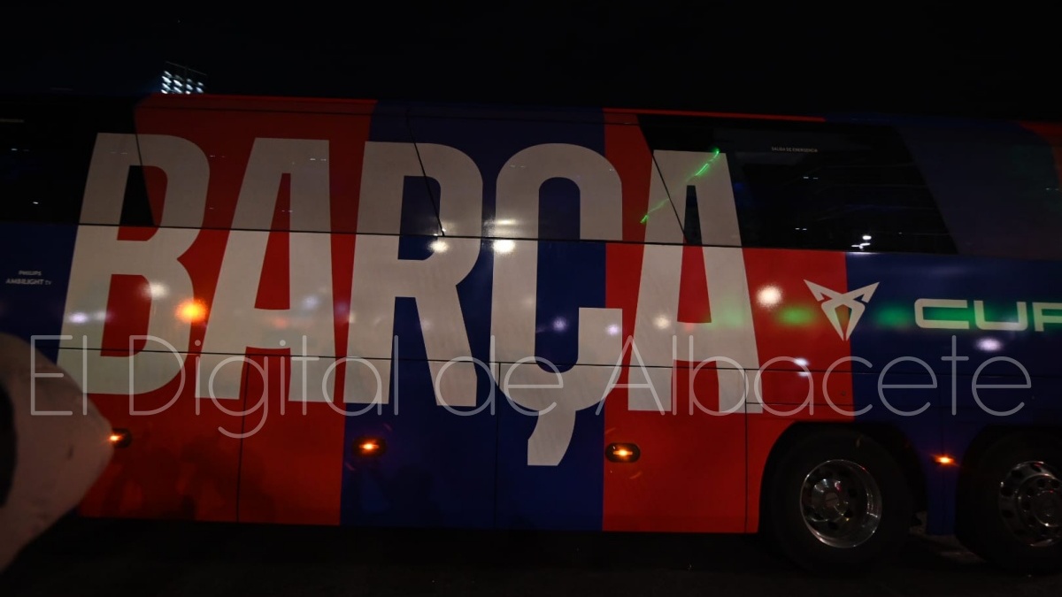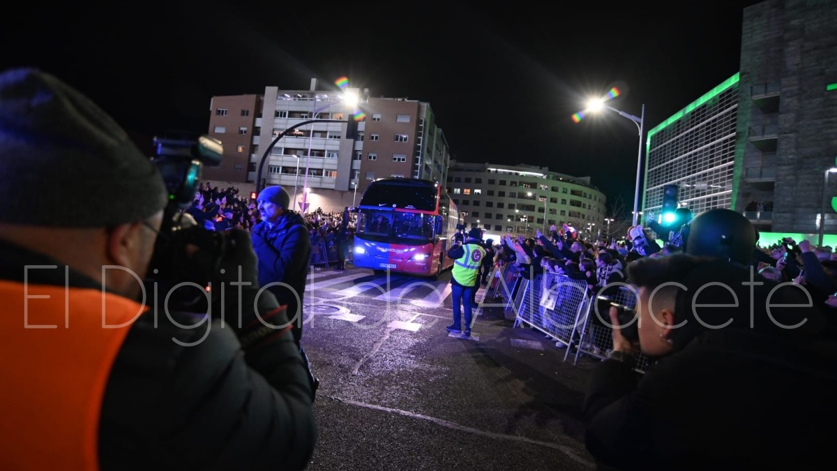 Poco después de las 19.30 horas, el FC Barcelona llegaba al Carlos Belmonte de Albacete para medirse al cuadro blanco a partir de las 21.00 horas por una plaza en las semifinales de la Copa del Rey