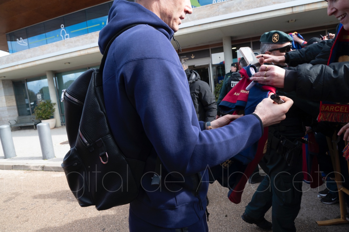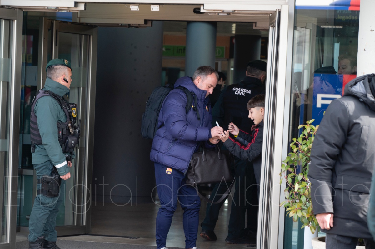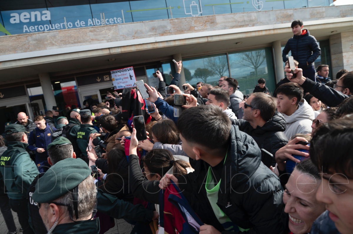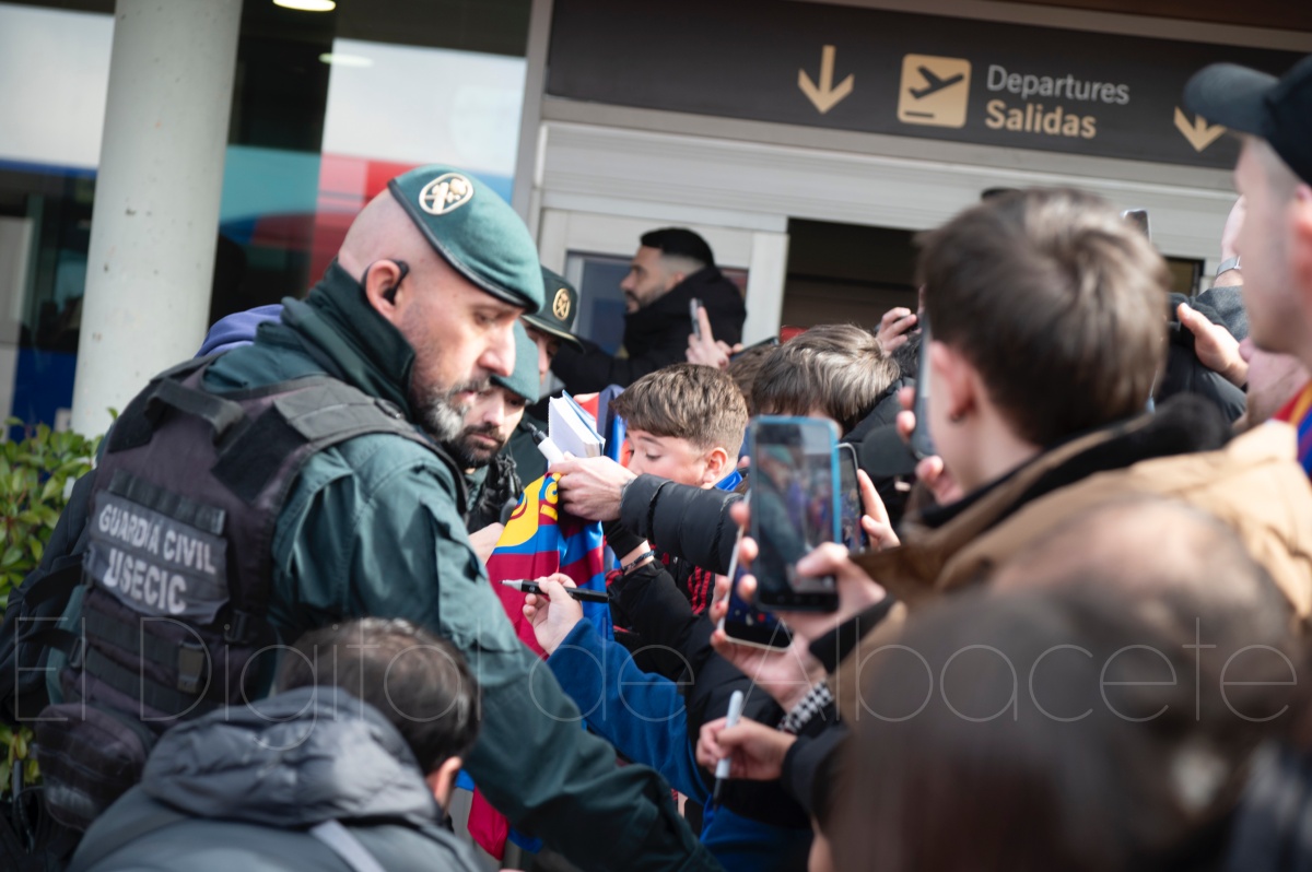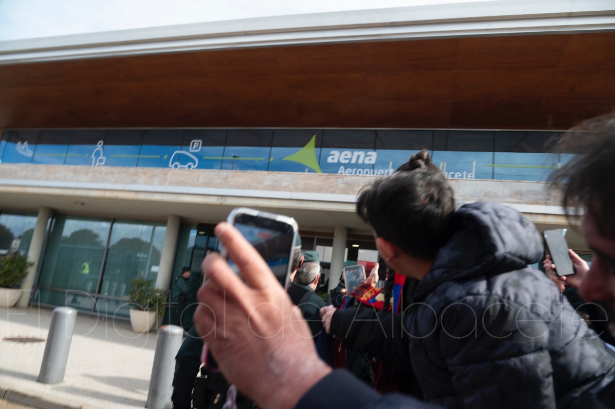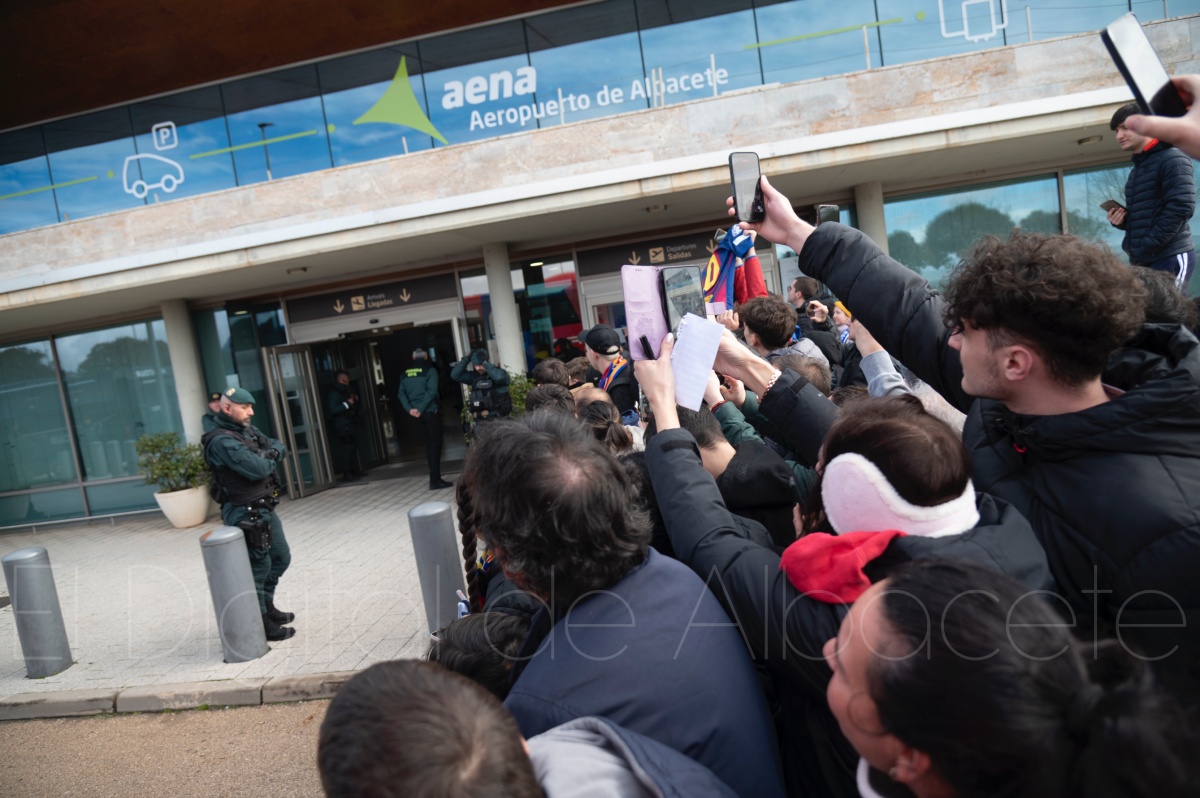 La llegada del equipo catalán estuvo acompañada de una notable expectación en el Aeropuerto de Albacete – Los Llanos. Desde primeras horas de la mañana, decenas de aficionados se congregaron en los aledaños del aeropuerto con camisetas azulgranas y móviles en alto para intentar ver de cerca a sus ídolos, en un ambiente marcado por la ilusión ante una cita de Copa del Rey de alto voltaje.