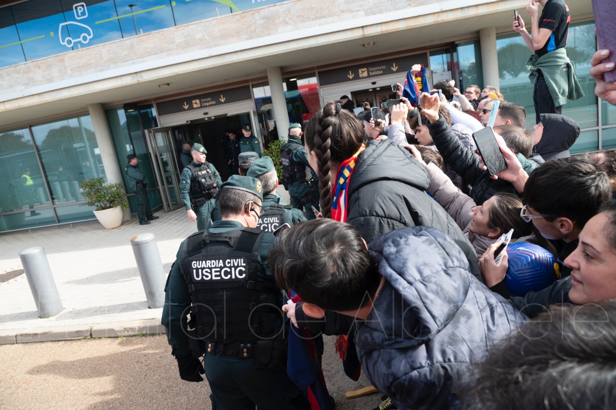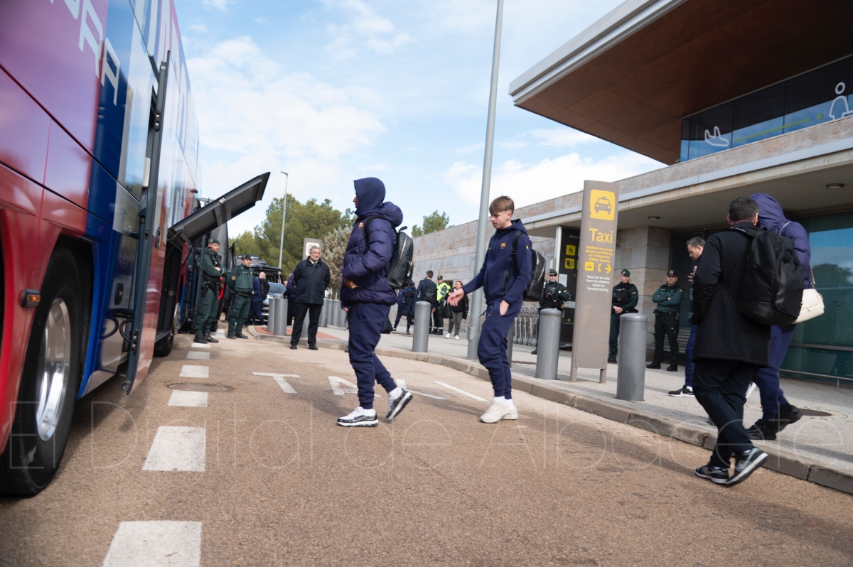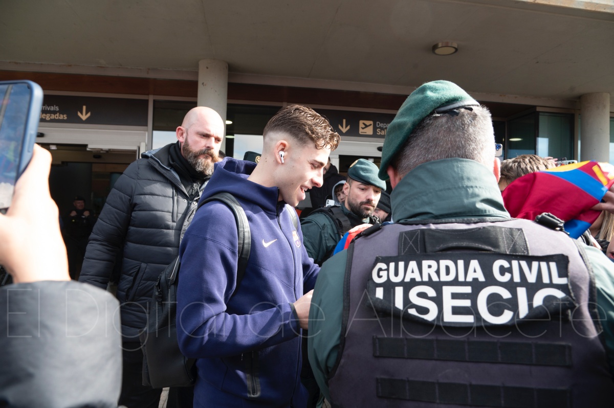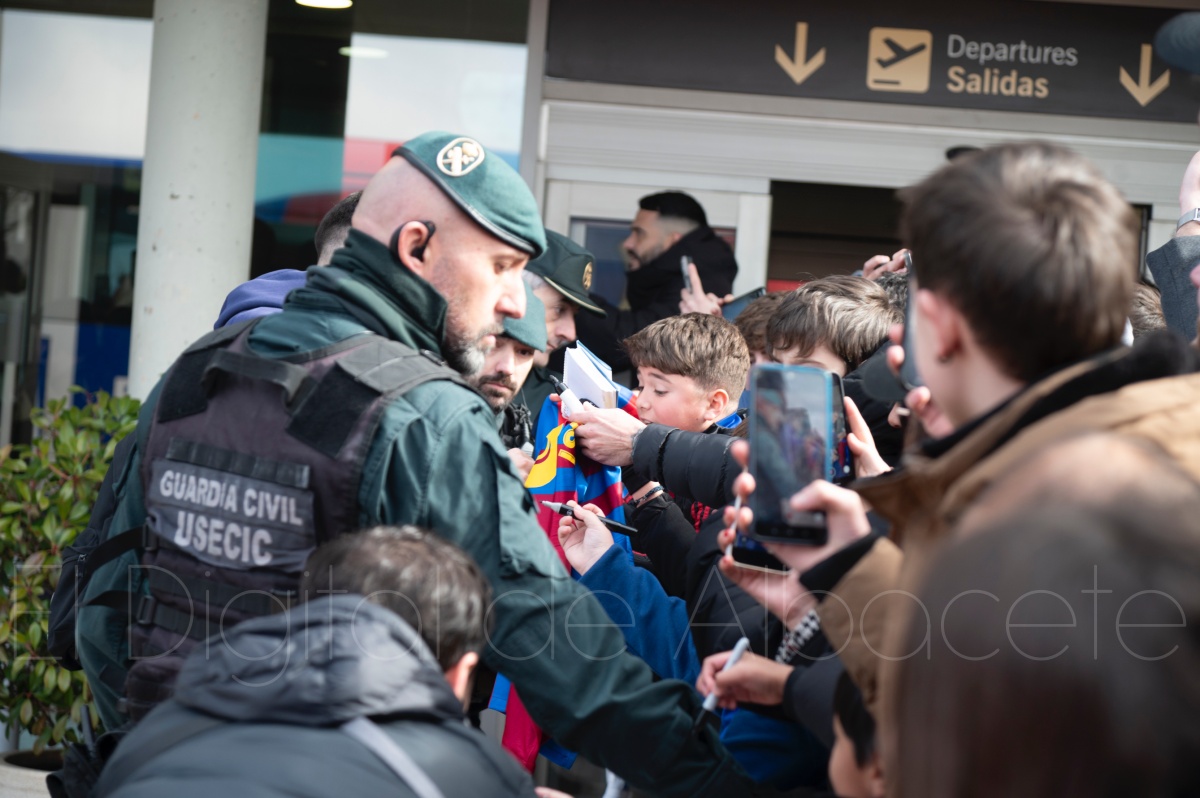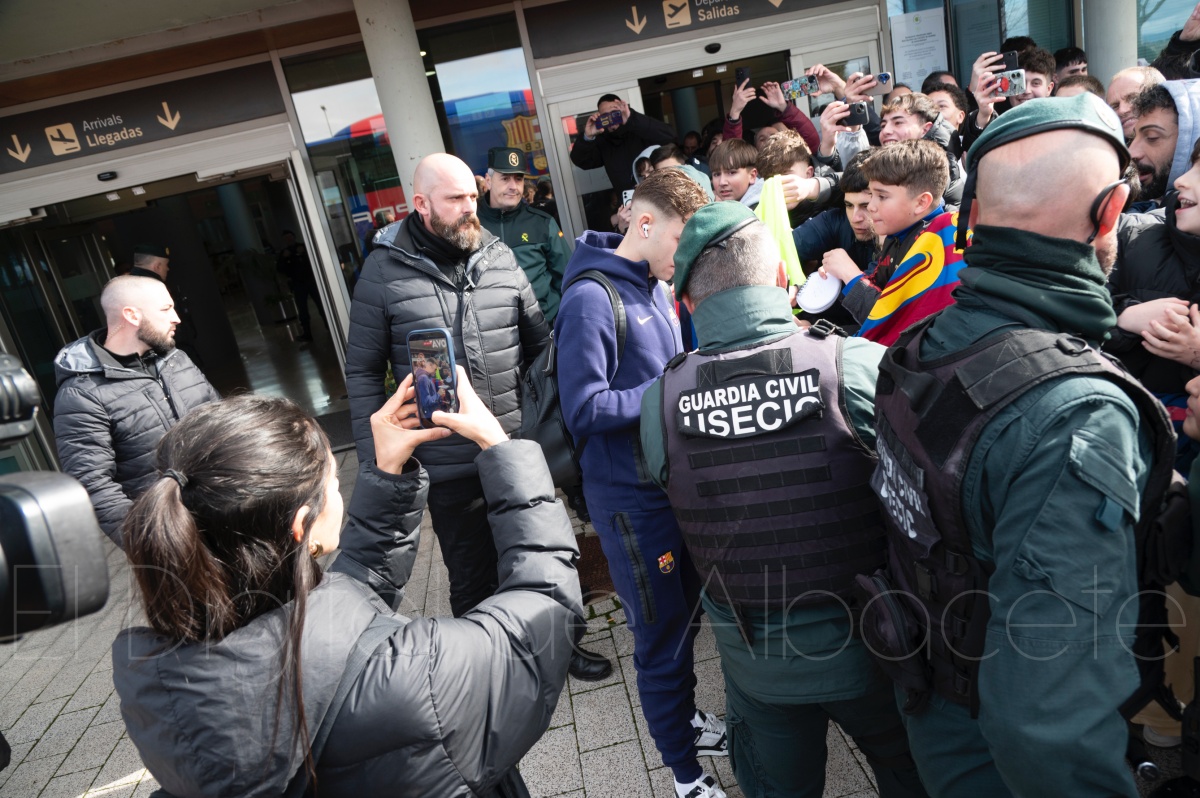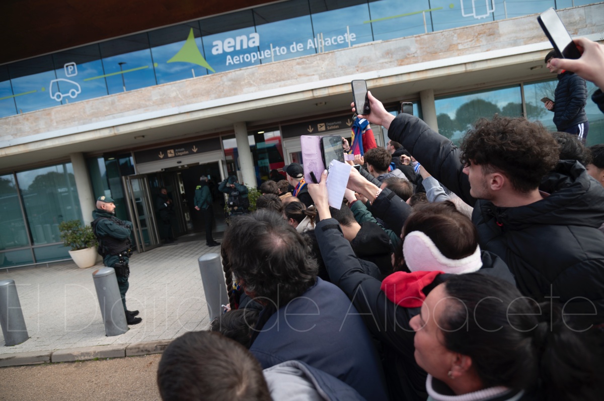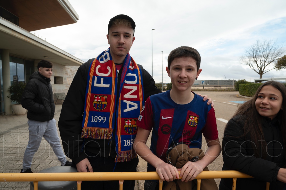 La llegada del equipo catalán estuvo acompañada de una notable expectación en el Aeropuerto de Albacete – Los Llanos. Desde primeras horas de la mañana, decenas de aficionados se congregaron en los aledaños del aeropuerto con camisetas azulgranas y móviles en alto para intentar ver de cerca a sus ídolos, en un ambiente marcado por la ilusión ante una cita de Copa del Rey de alto voltaje.