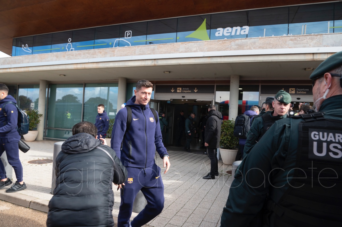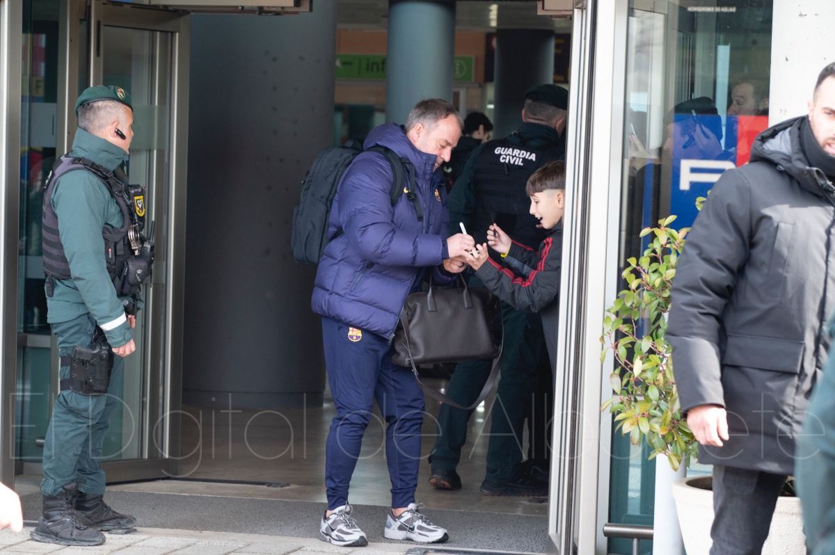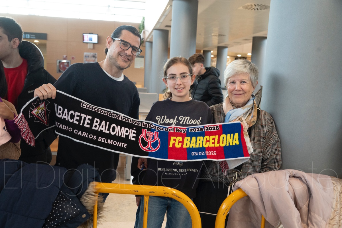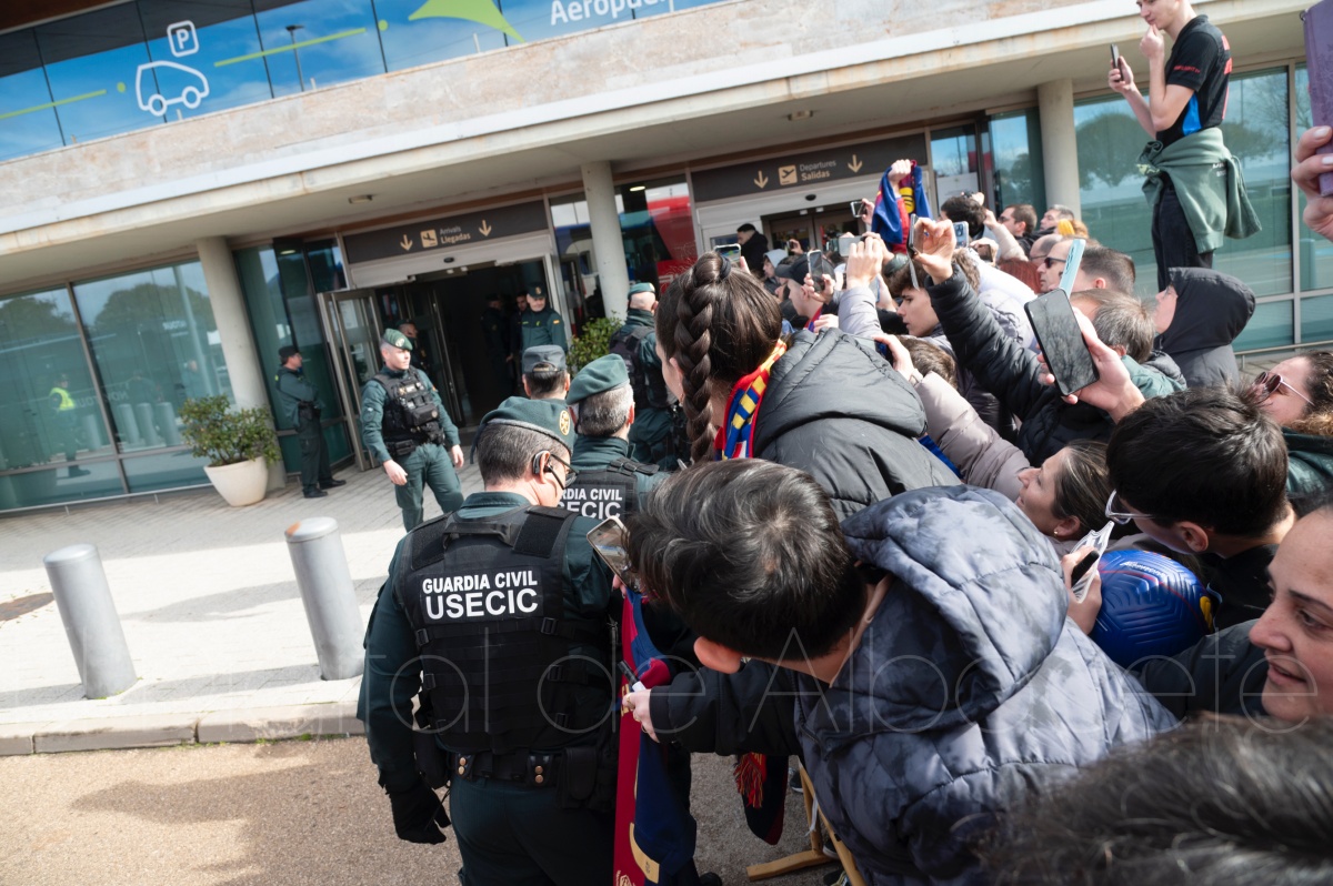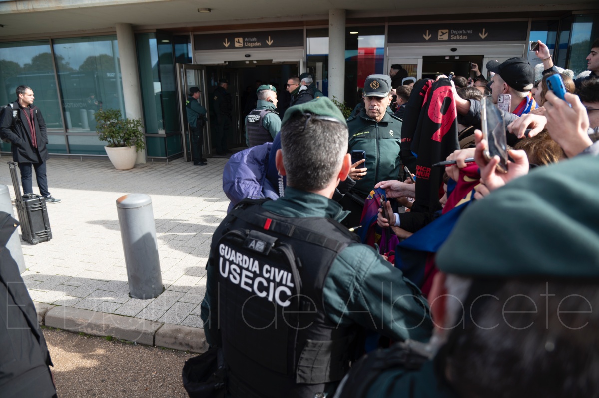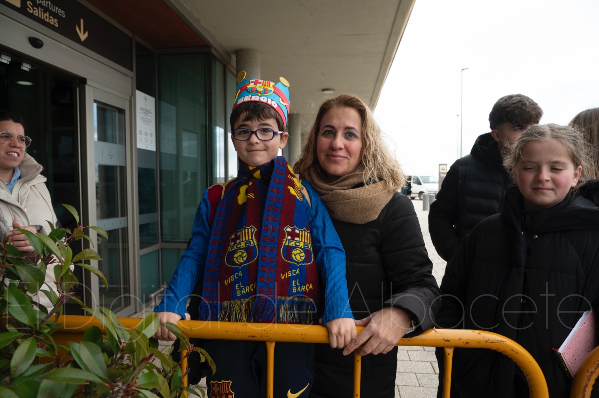 La llegada del equipo catalán estuvo acompañada de una notable expectación en el Aeropuerto de Albacete – Los Llanos. Desde primeras horas de la mañana, decenas de aficionados se congregaron en los aledaños del aeropuerto con camisetas azulgranas y móviles en alto para intentar ver de cerca a sus ídolos, en un ambiente marcado por la ilusión ante una cita de Copa del Rey de alto voltaje.