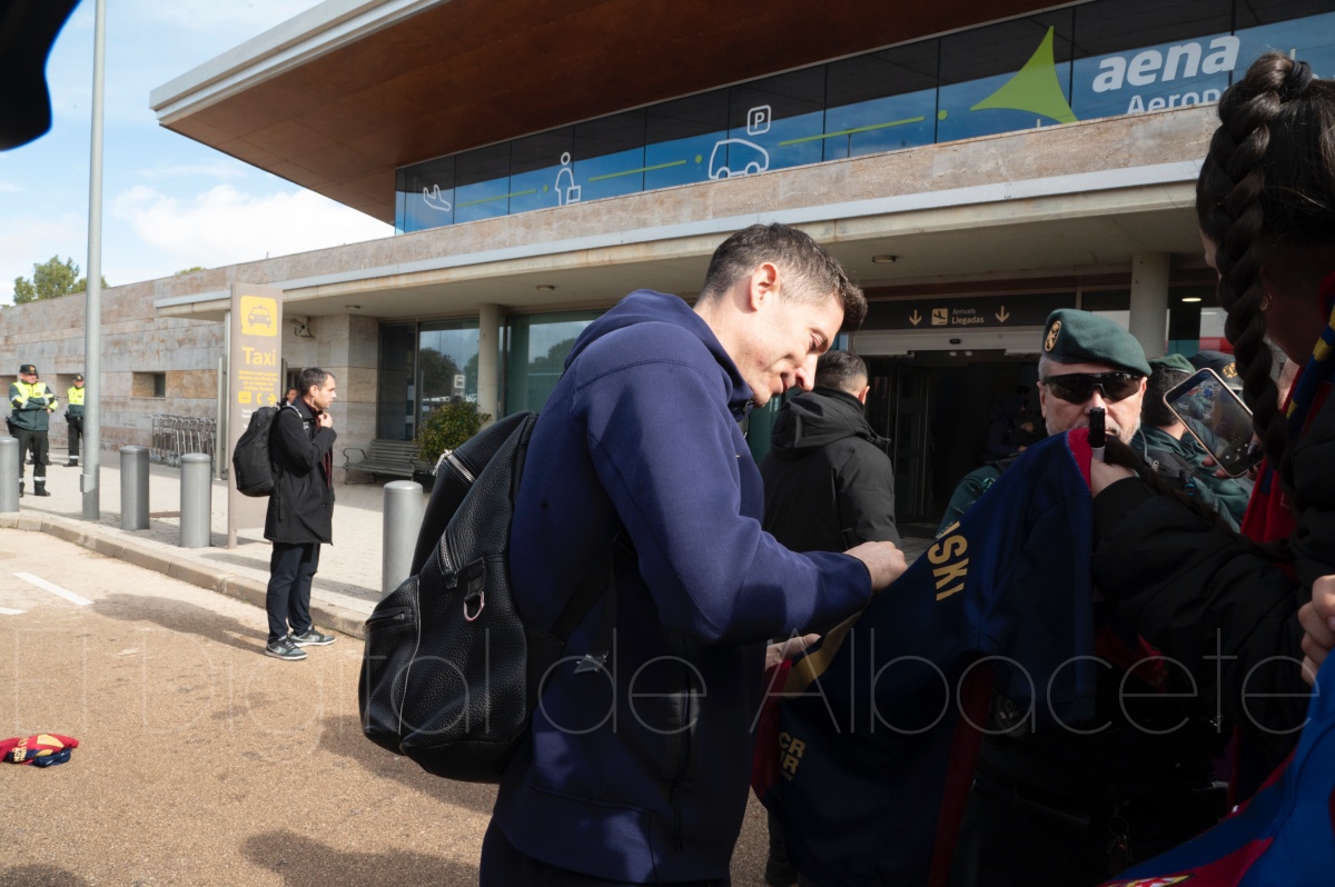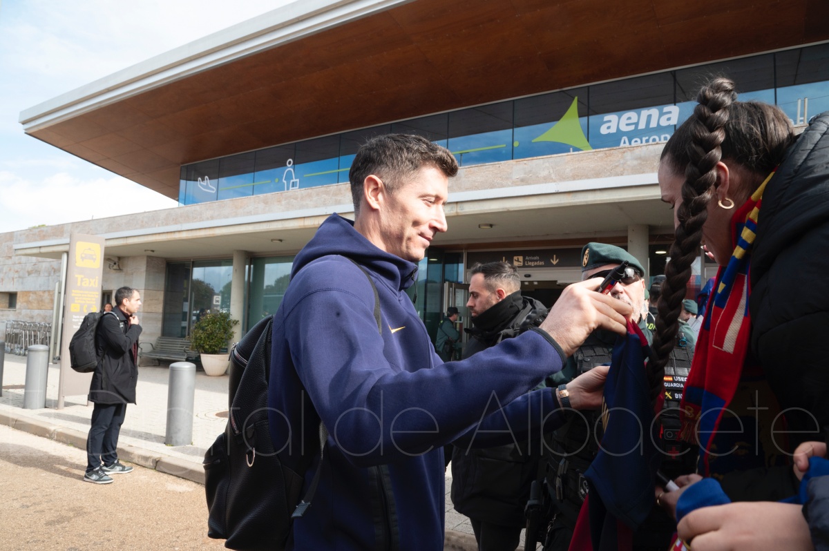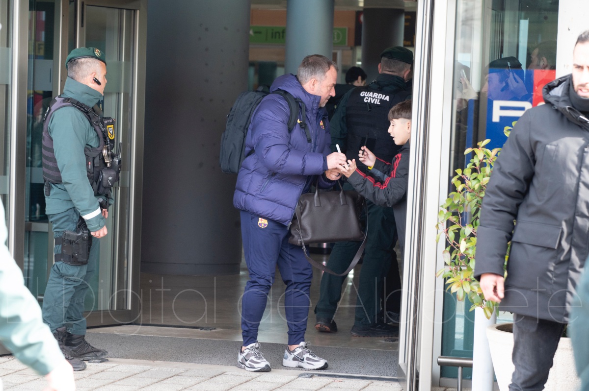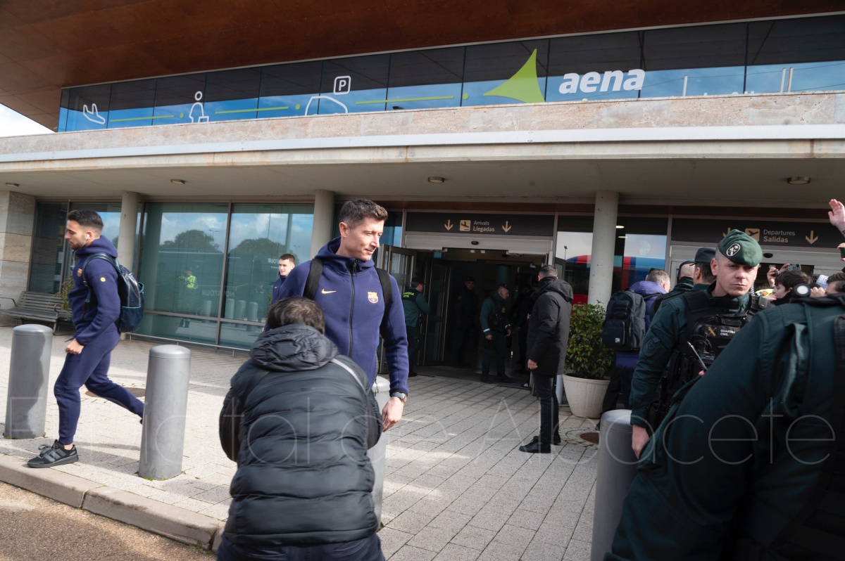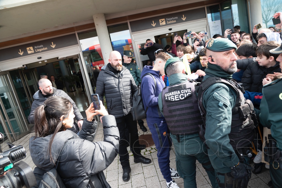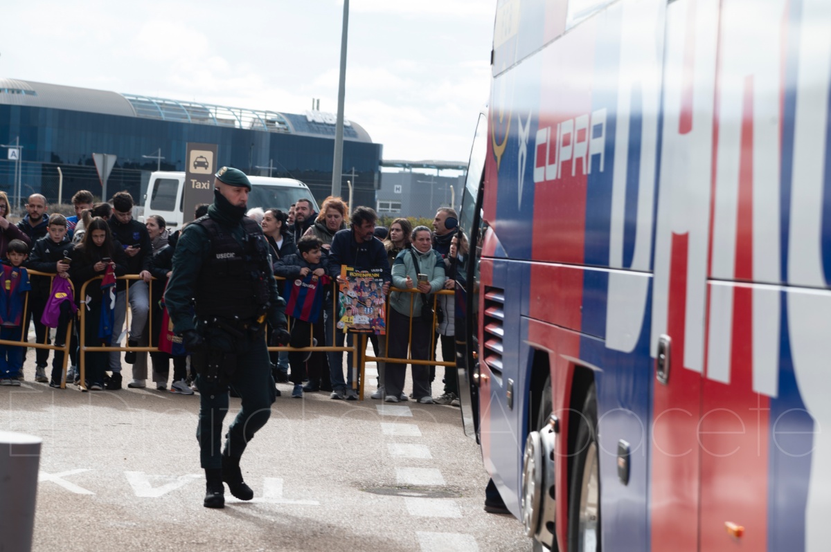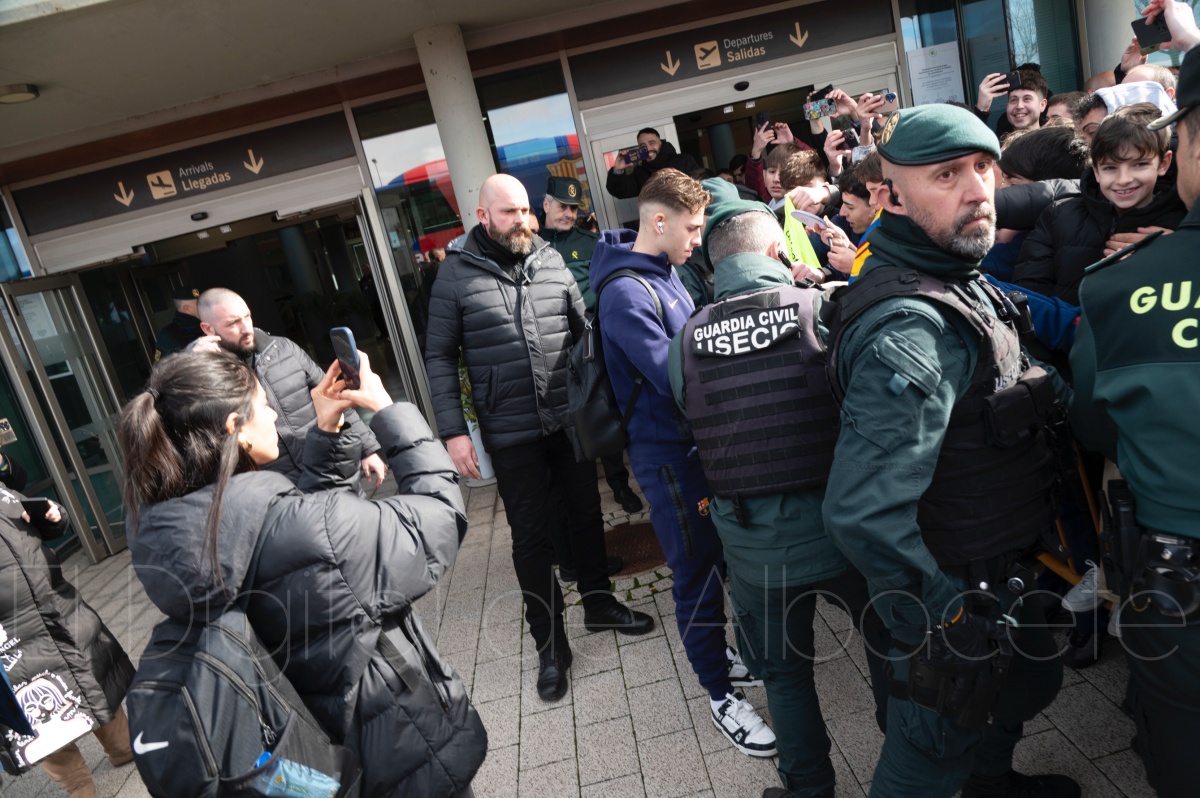 La llegada del equipo catalán estuvo acompañada de una notable expectación en el Aeropuerto de Albacete – Los Llanos. Desde primeras horas de la mañana, decenas de aficionados se congregaron en los aledaños del aeropuerto con camisetas azulgranas y móviles en alto para intentar ver de cerca a sus ídolos, en un ambiente marcado por la ilusión ante una cita de Copa del Rey de alto voltaje.