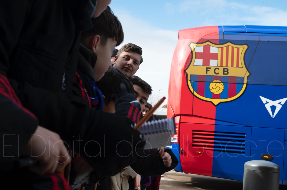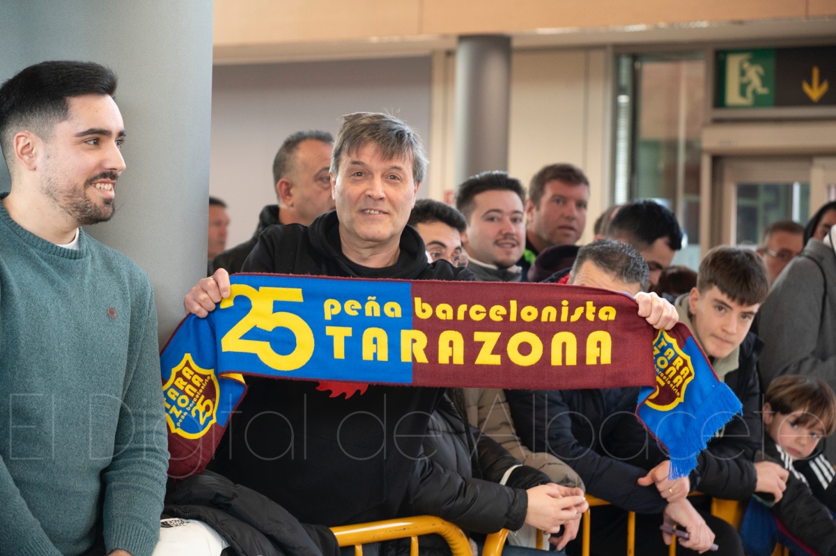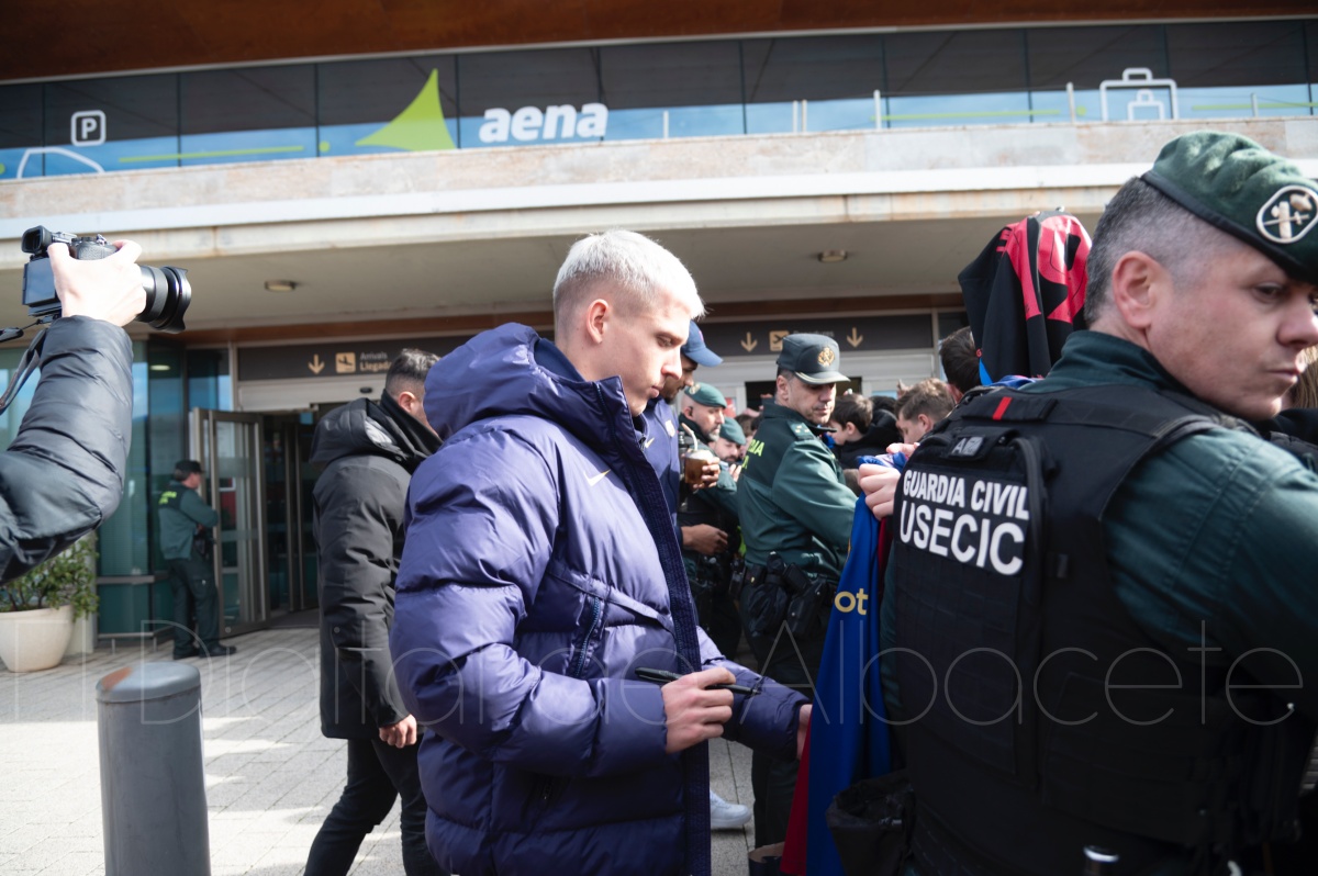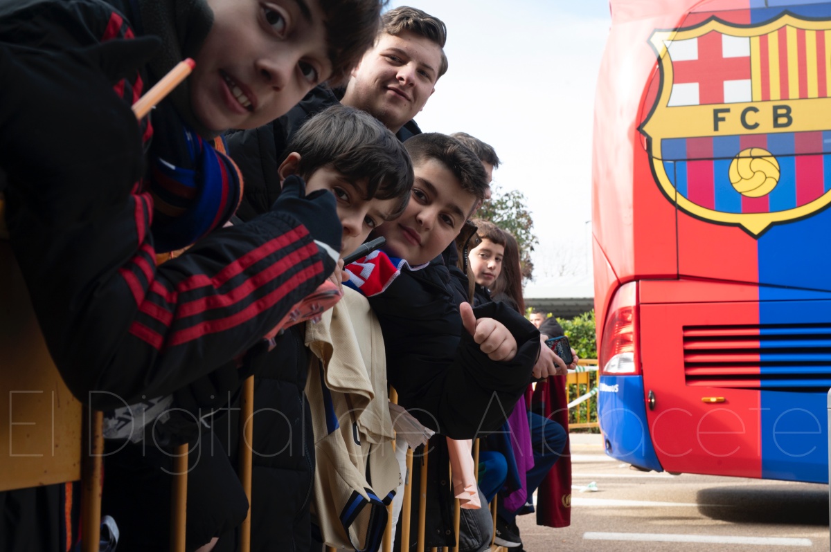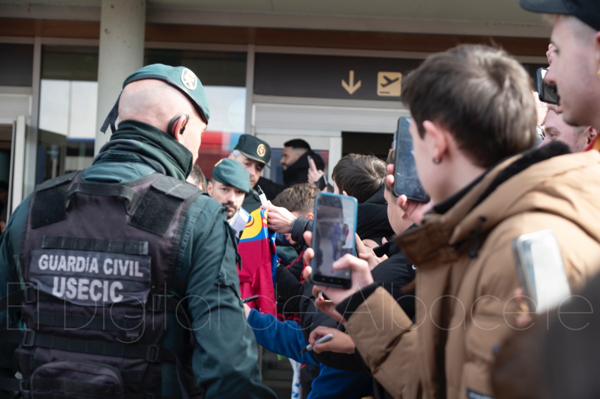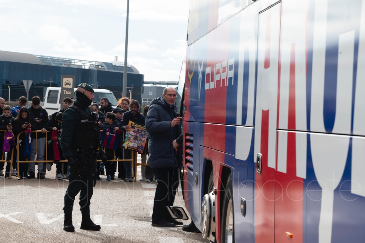 La llegada del equipo catalán estuvo acompañada de una notable expectación en el Aeropuerto de Albacete – Los Llanos. Desde primeras horas de la mañana, decenas de aficionados se congregaron en los aledaños del aeropuerto con camisetas azulgranas y móviles en alto para intentar ver de cerca a sus ídolos, en un ambiente marcado por la ilusión ante una cita de Copa del Rey de alto voltaje.