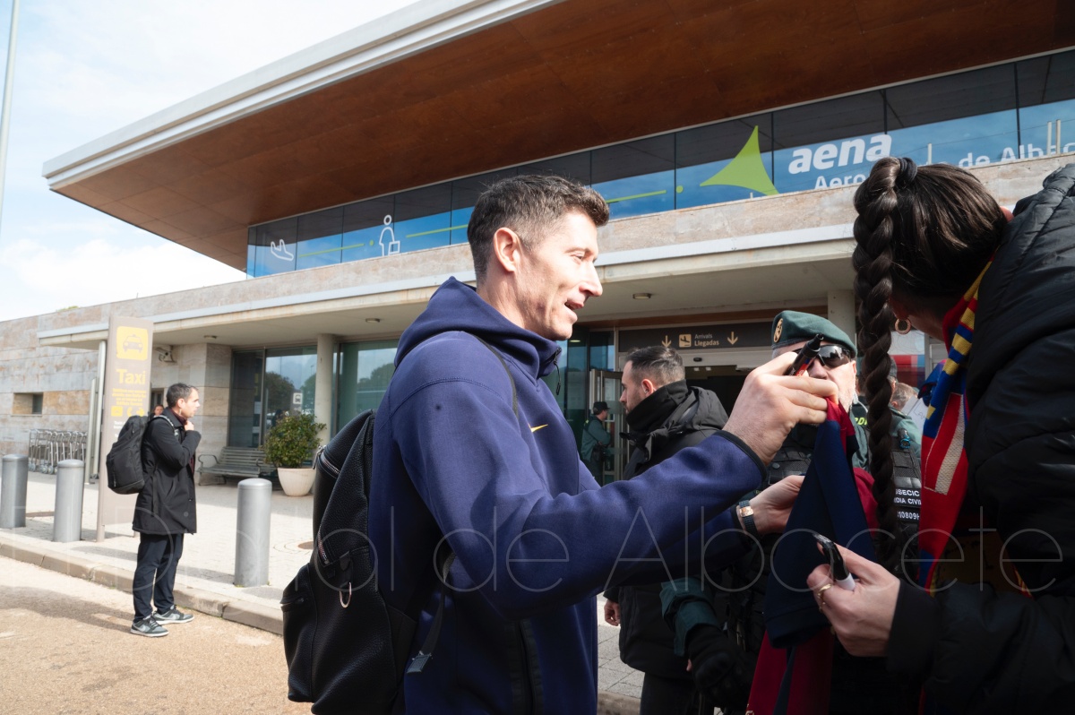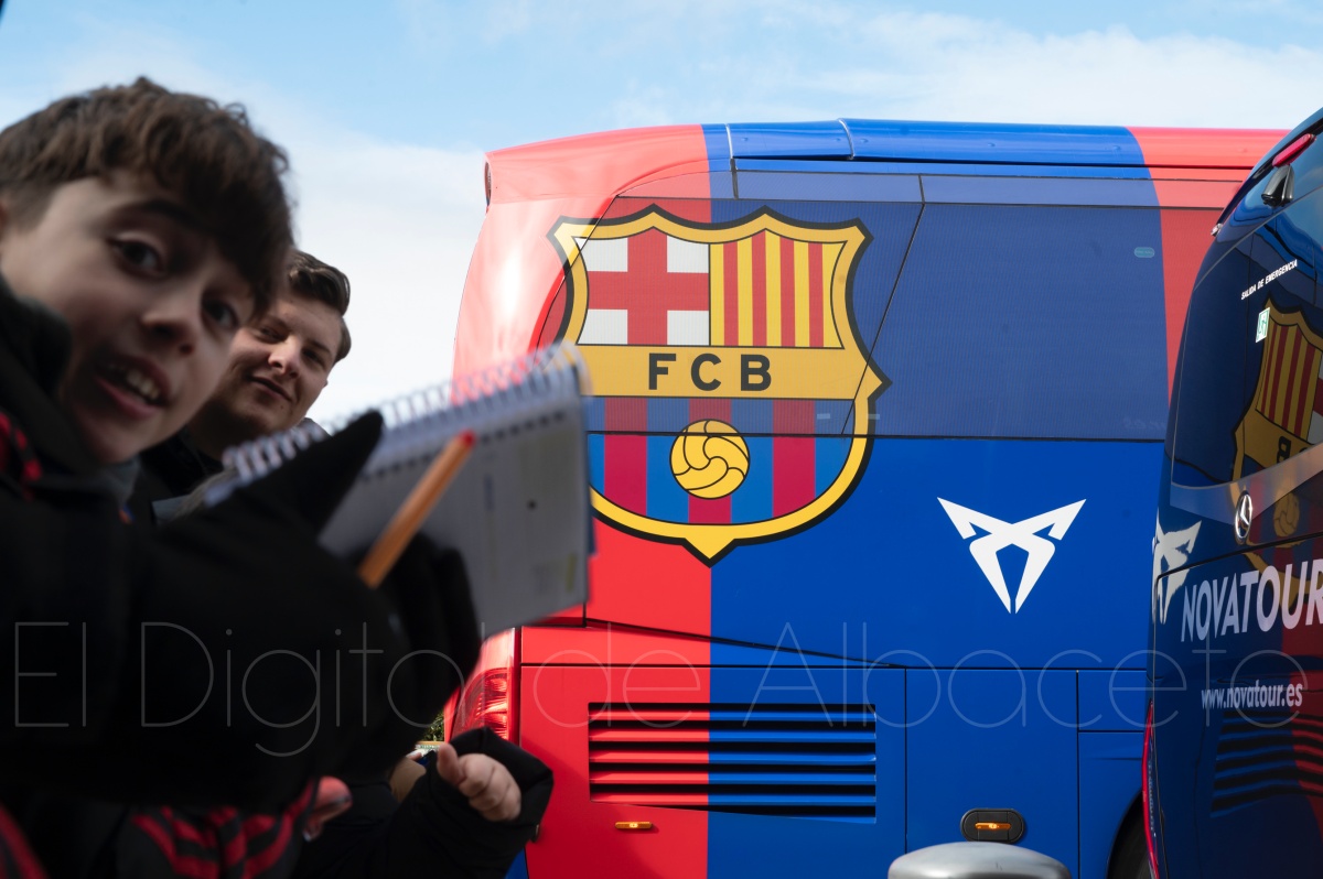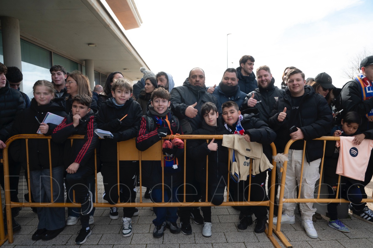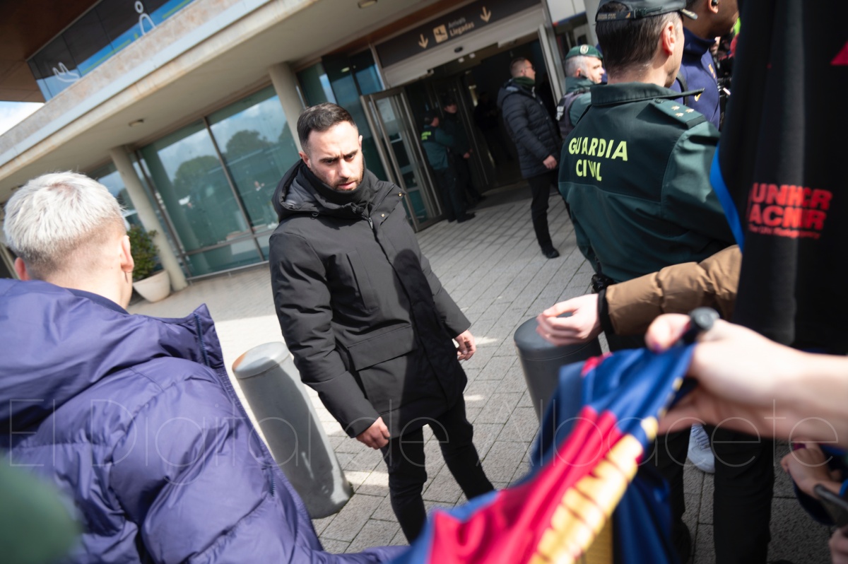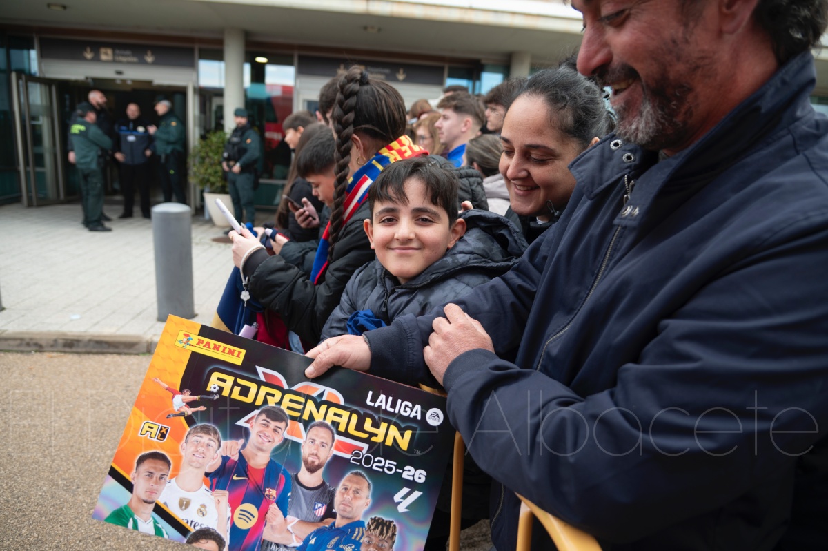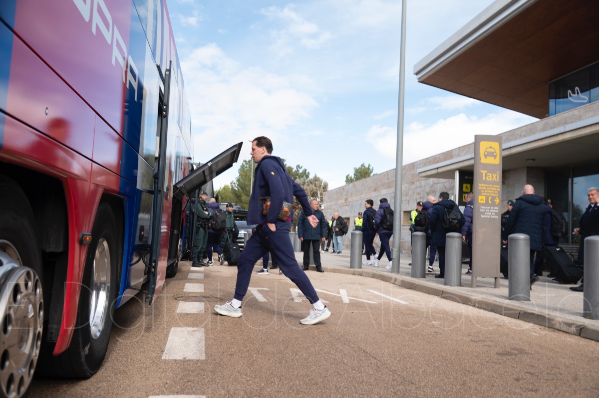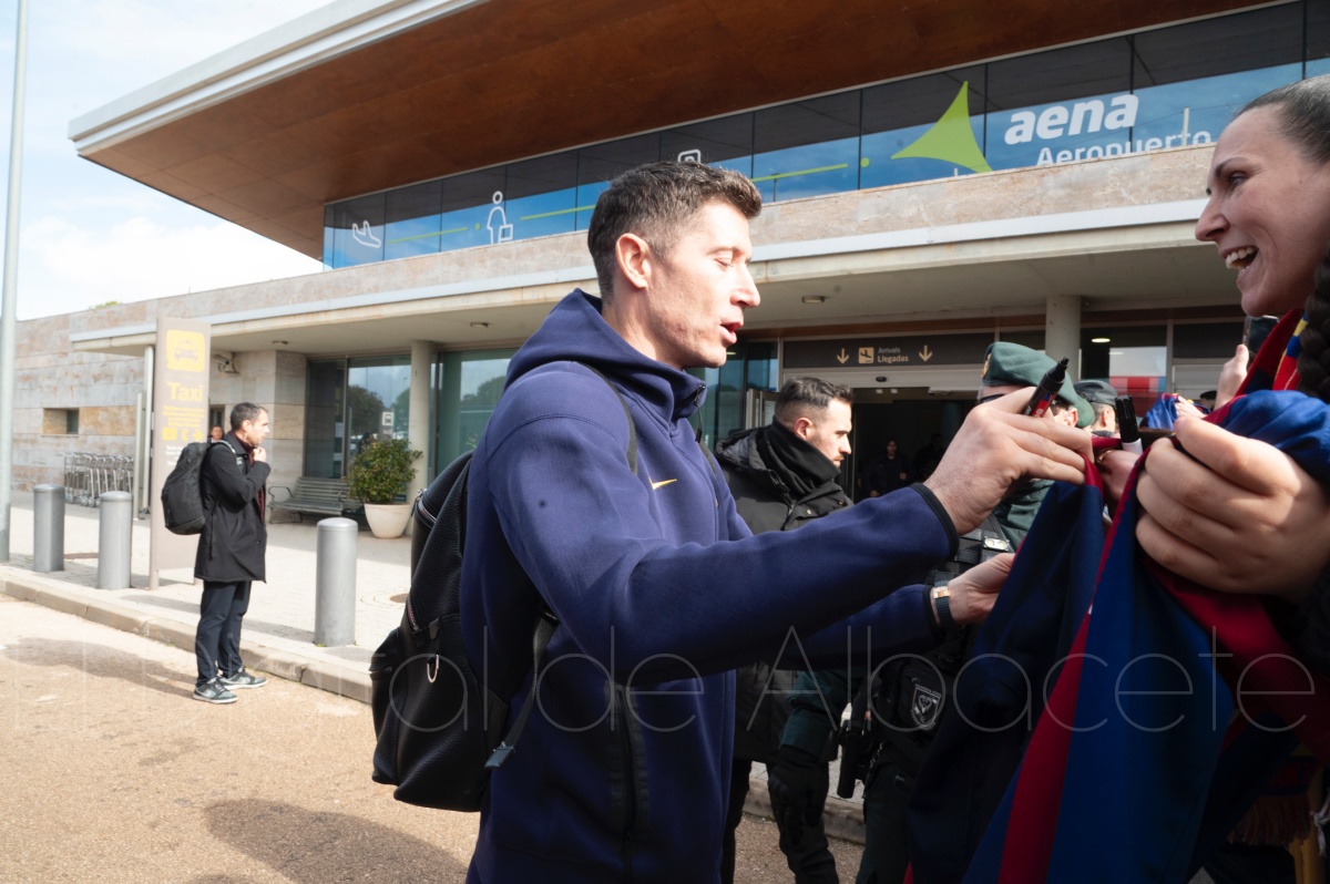 La llegada del equipo catalán estuvo acompañada de una notable expectación en el Aeropuerto de Albacete – Los Llanos. Desde primeras horas de la mañana, decenas de aficionados se congregaron en los aledaños del aeropuerto con camisetas azulgranas y móviles en alto para intentar ver de cerca a sus ídolos, en un ambiente marcado por la ilusión ante una cita de Copa del Rey de alto voltaje.