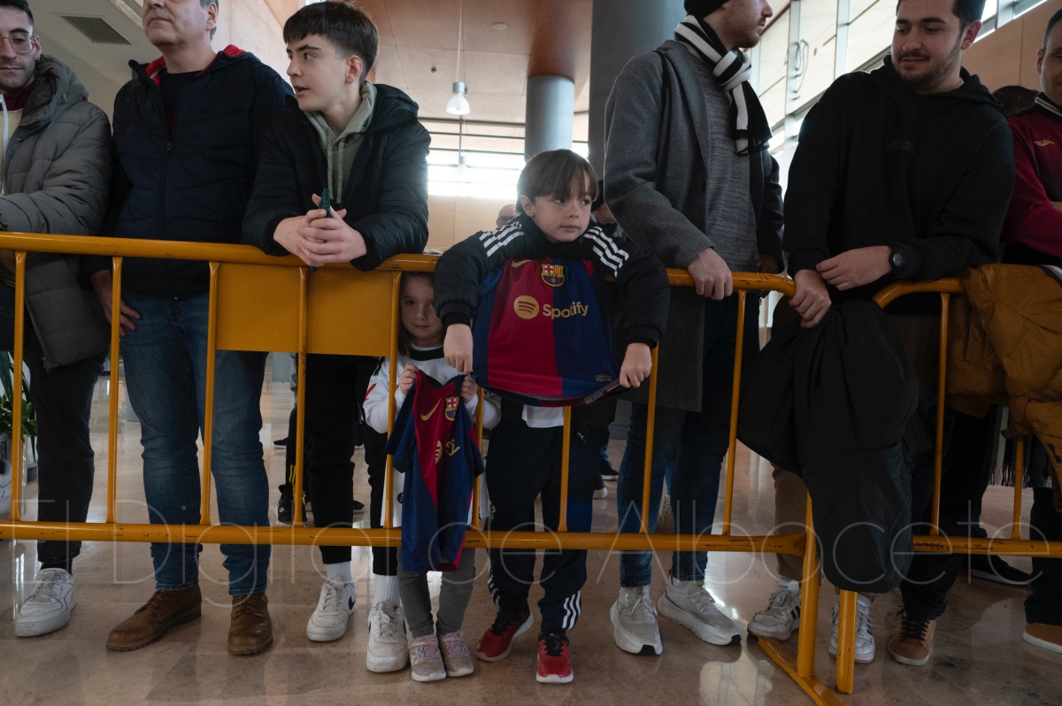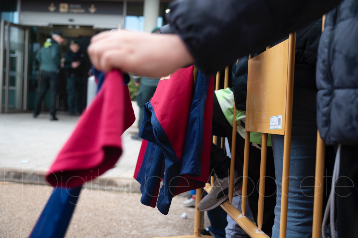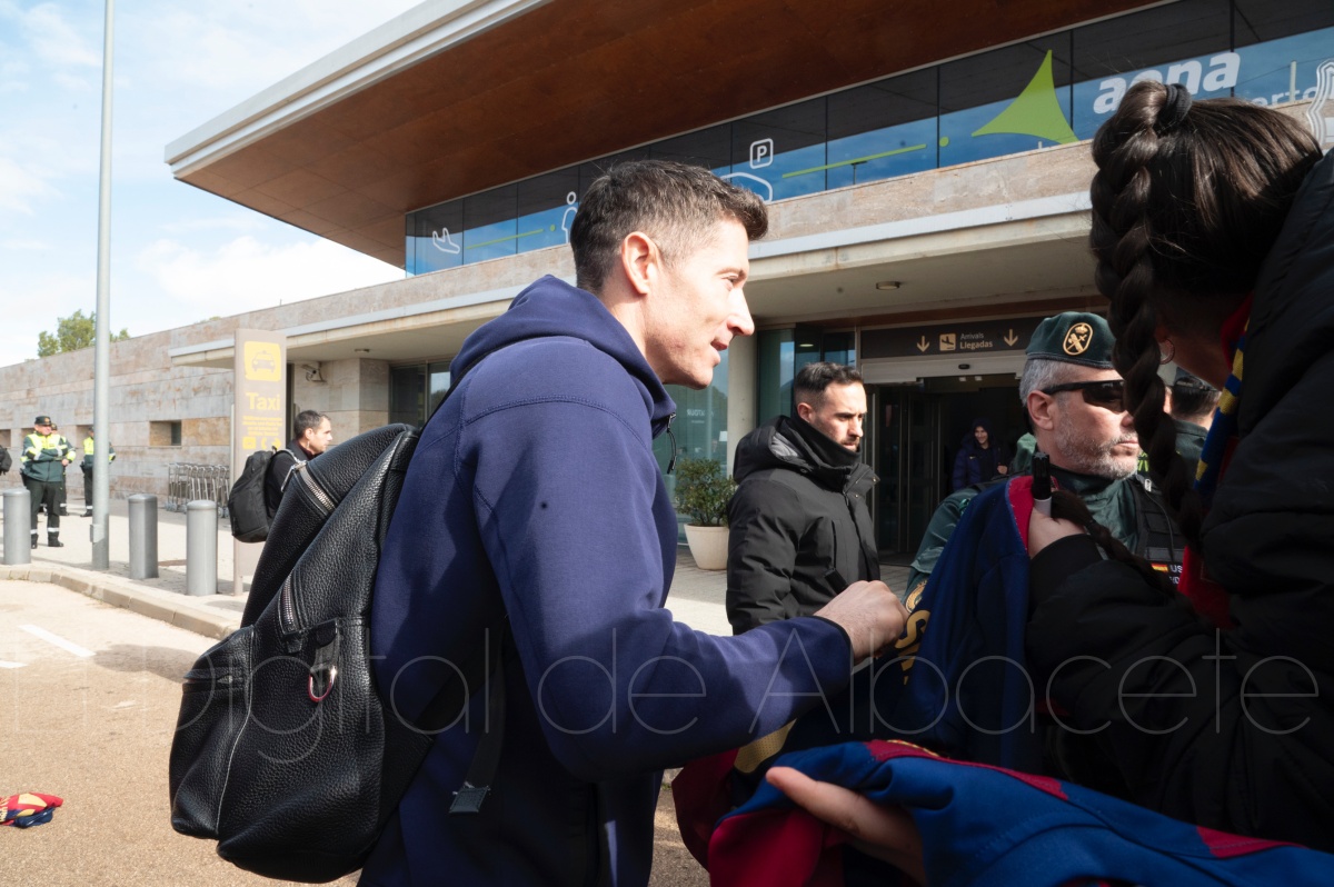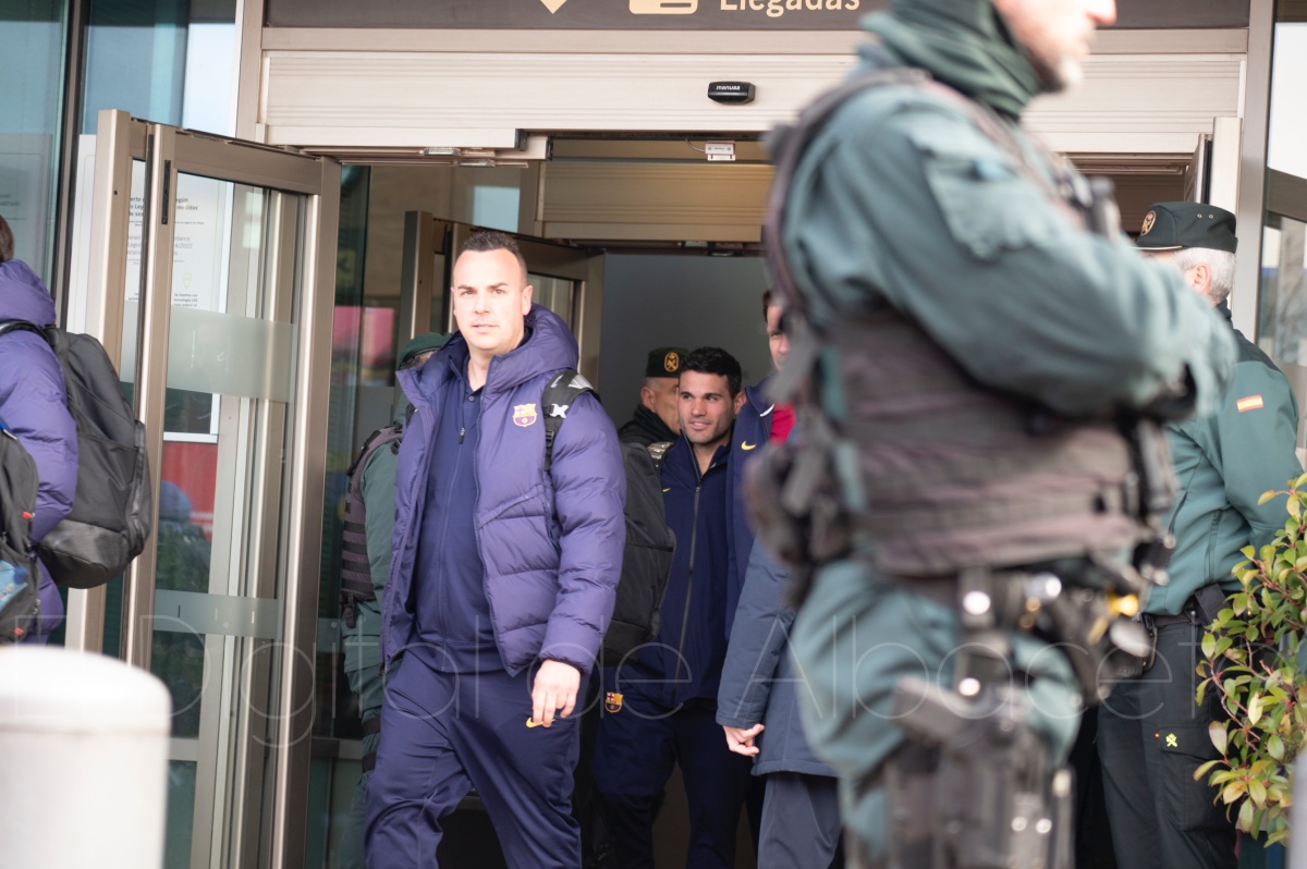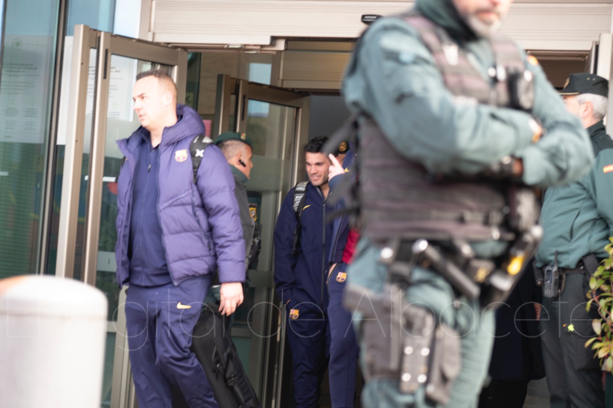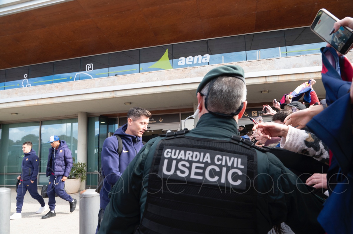 La llegada del equipo catalán estuvo acompañada de una notable expectación en el Aeropuerto de Albacete – Los Llanos. Desde primeras horas de la mañana, decenas de aficionados se congregaron en los aledaños del aeropuerto con camisetas azulgranas y móviles en alto para intentar ver de cerca a sus ídolos, en un ambiente marcado por la ilusión ante una cita de Copa del Rey de alto voltaje.