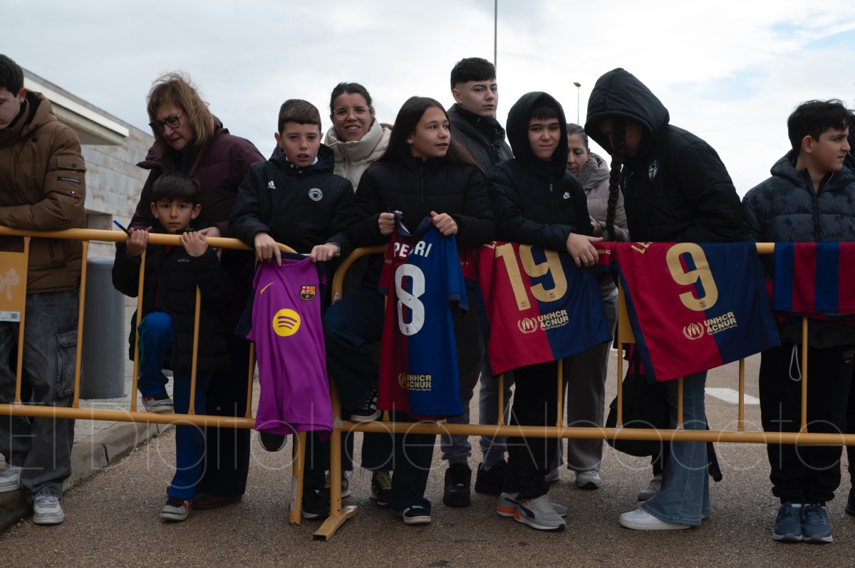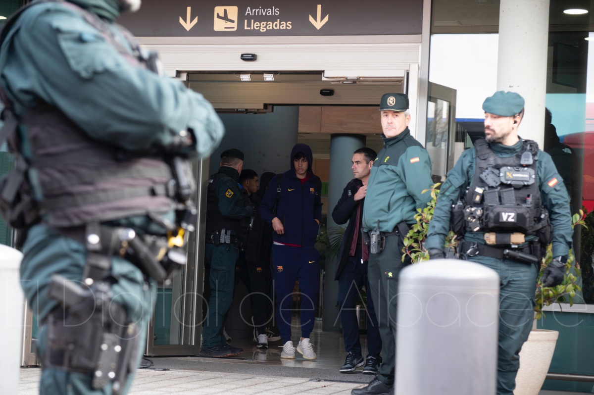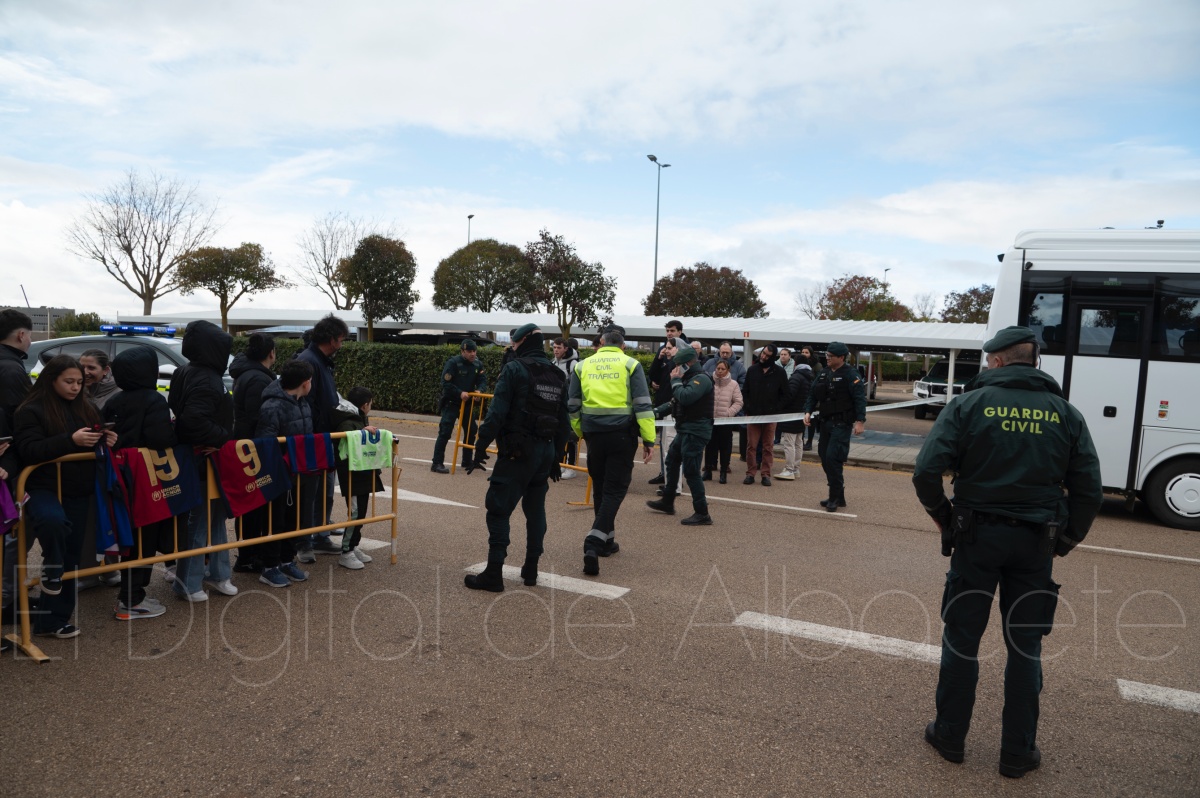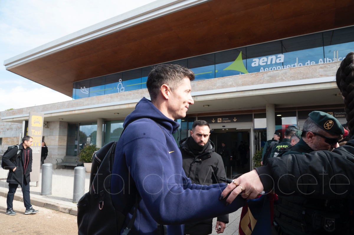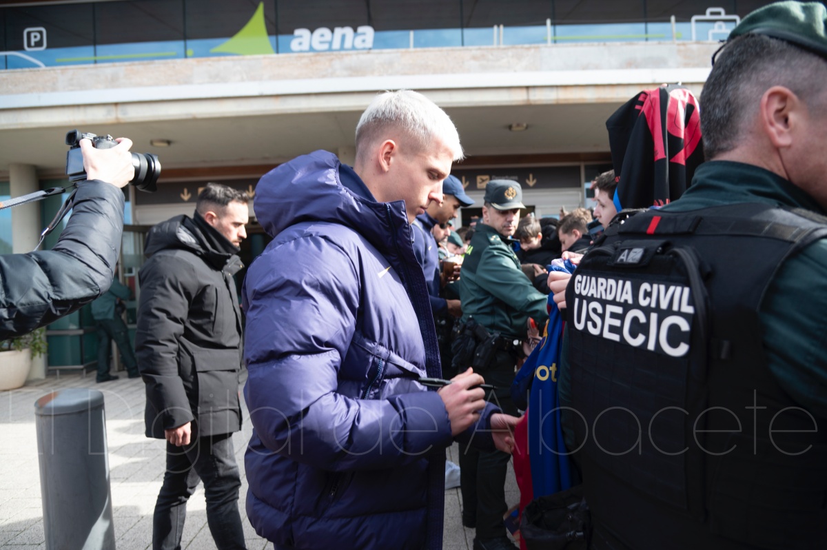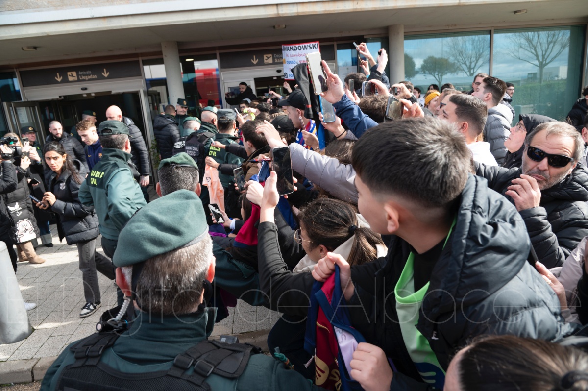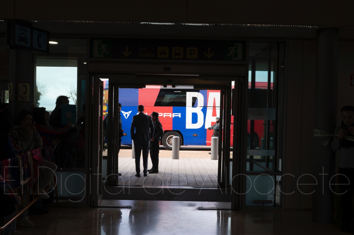 La llegada del equipo catalán estuvo acompañada de una notable expectación en el Aeropuerto de Albacete – Los Llanos. Desde primeras horas de la mañana, decenas de aficionados se congregaron en los aledaños del aeropuerto con camisetas azulgranas y móviles en alto para intentar ver de cerca a sus ídolos, en un ambiente marcado por la ilusión ante una cita de Copa del Rey de alto voltaje.