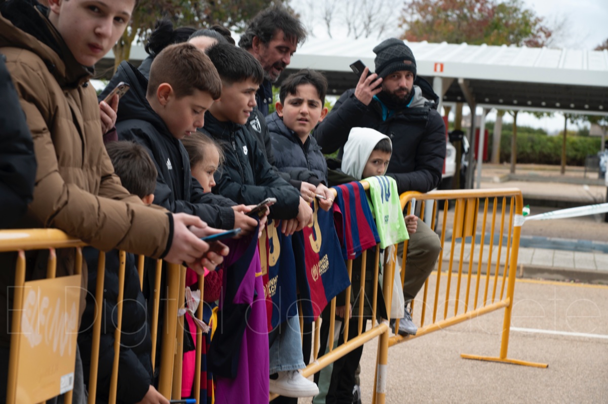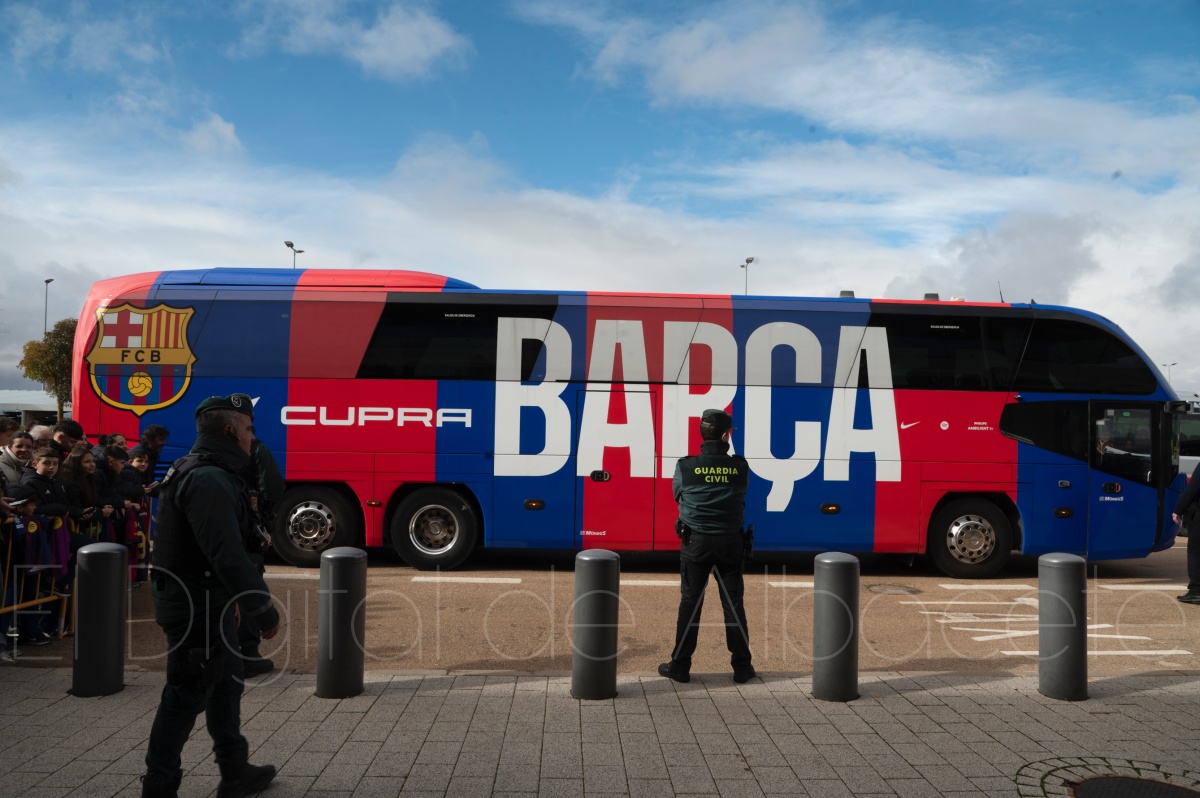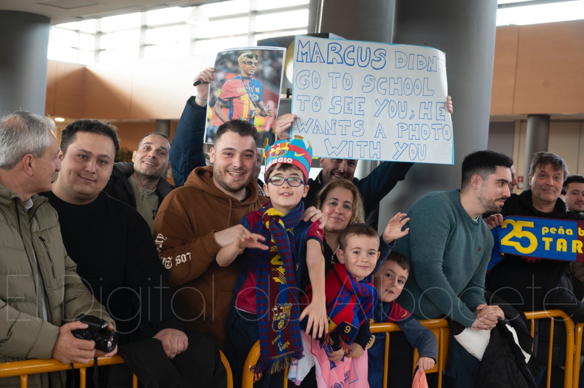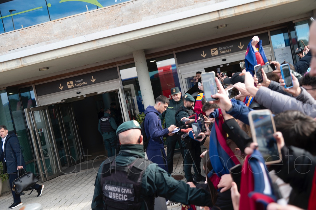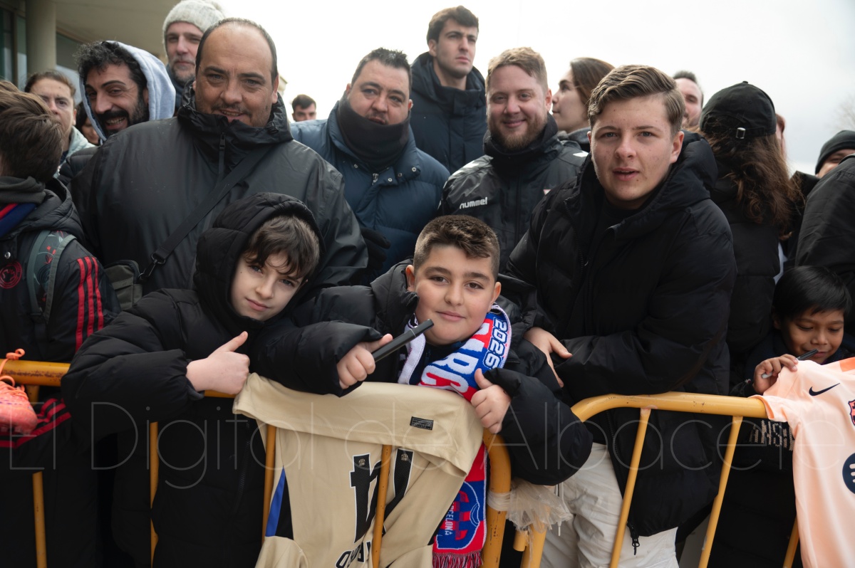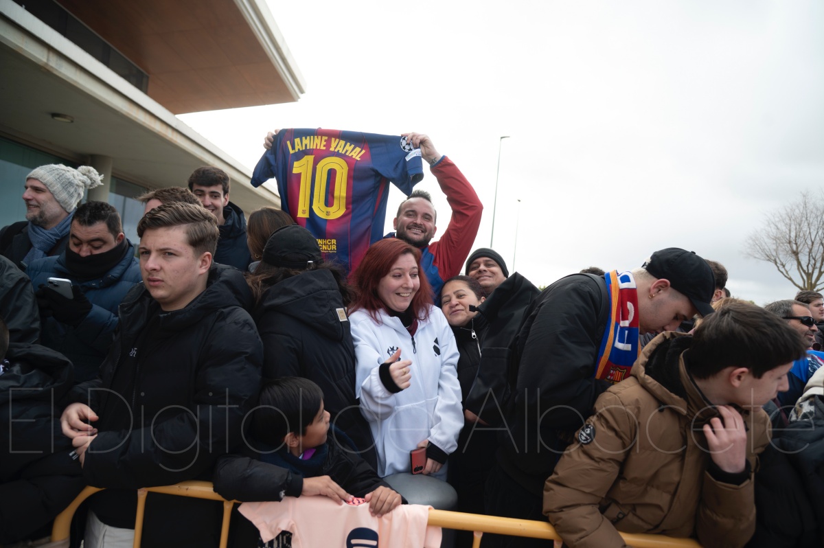 La llegada del equipo catalán estuvo acompañada de una notable expectación en el Aeropuerto de Albacete – Los Llanos. Desde primeras horas de la mañana, decenas de aficionados se congregaron en los aledaños del aeropuerto con camisetas azulgranas y móviles en alto para intentar ver de cerca a sus ídolos, en un ambiente marcado por la ilusión ante una cita de Copa del Rey de alto voltaje.