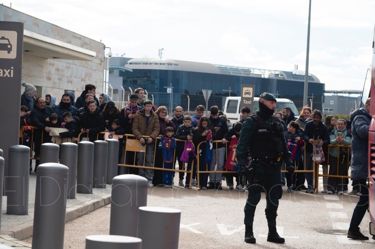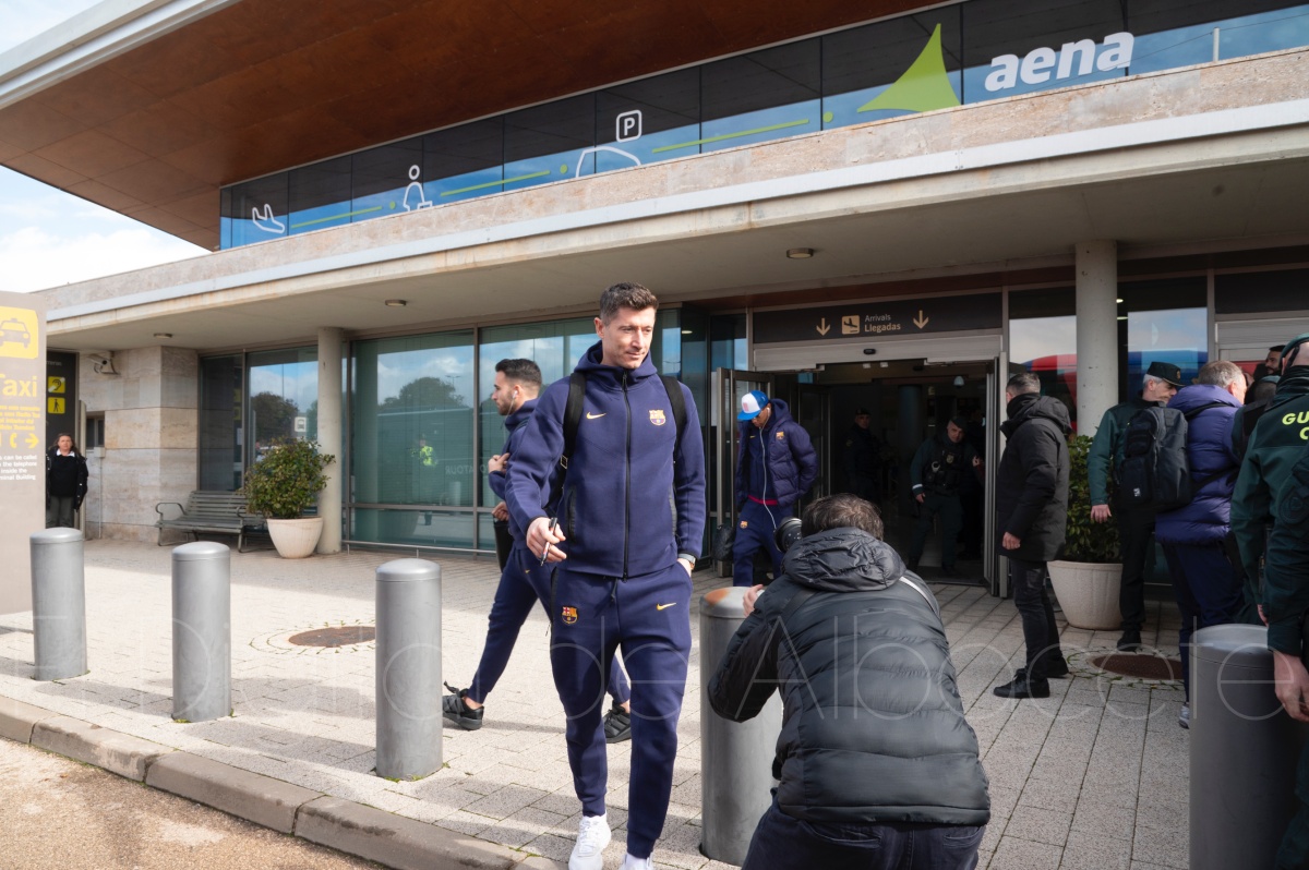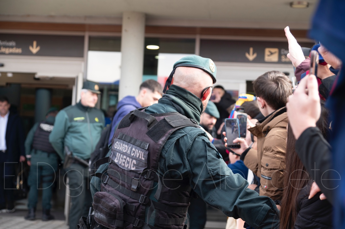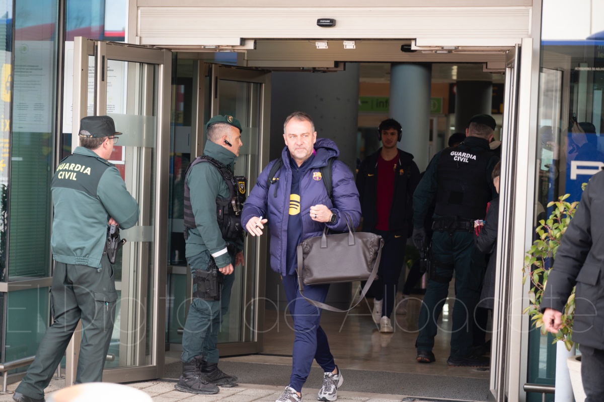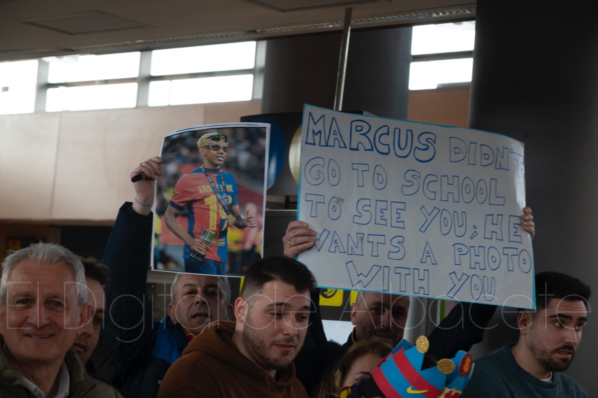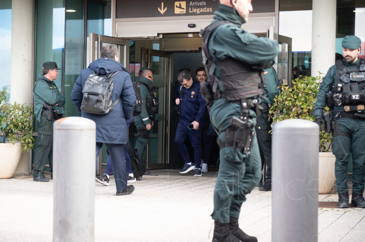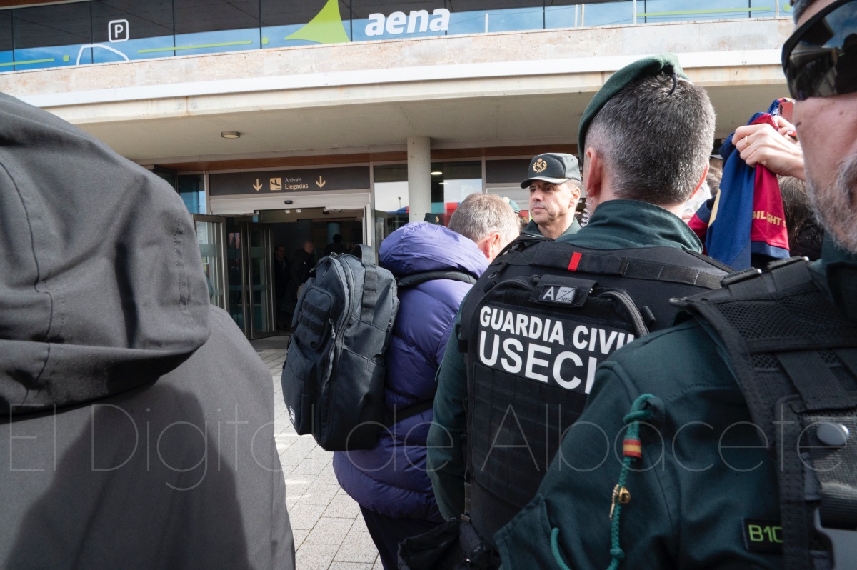 La llegada del equipo catalán estuvo acompañada de una notable expectación en el Aeropuerto de Albacete – Los Llanos. Desde primeras horas de la mañana, decenas de aficionados se congregaron en los aledaños del aeropuerto con camisetas azulgranas y móviles en alto para intentar ver de cerca a sus ídolos, en un ambiente marcado por la ilusión ante una cita de Copa del Rey de alto voltaje.
