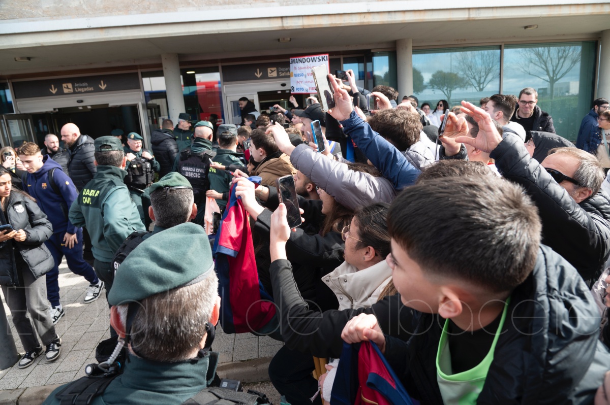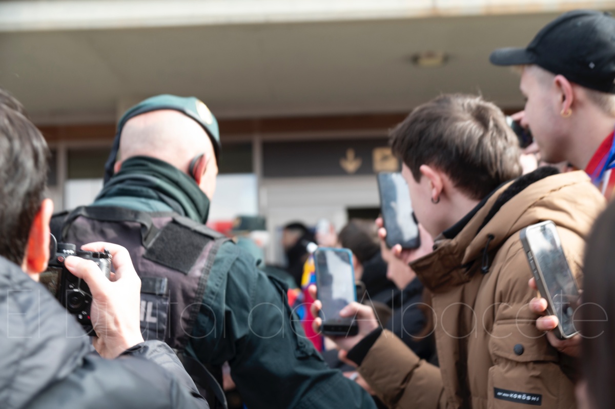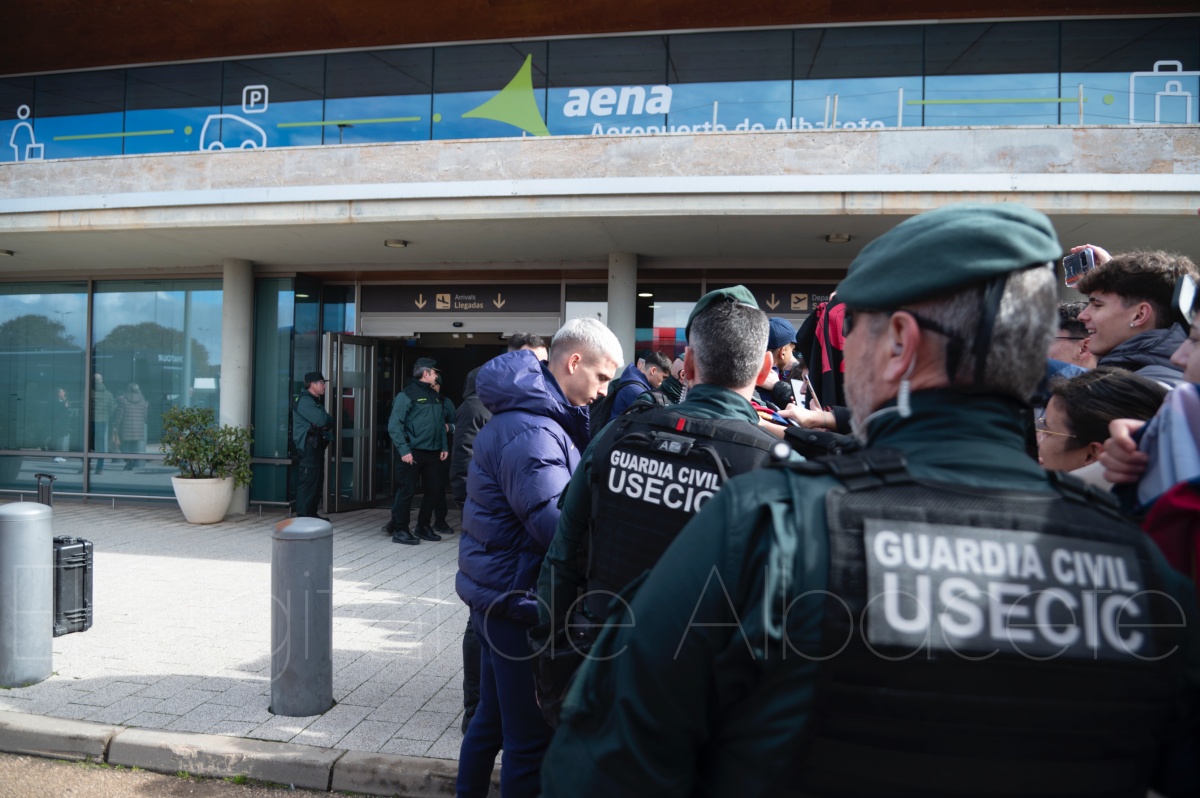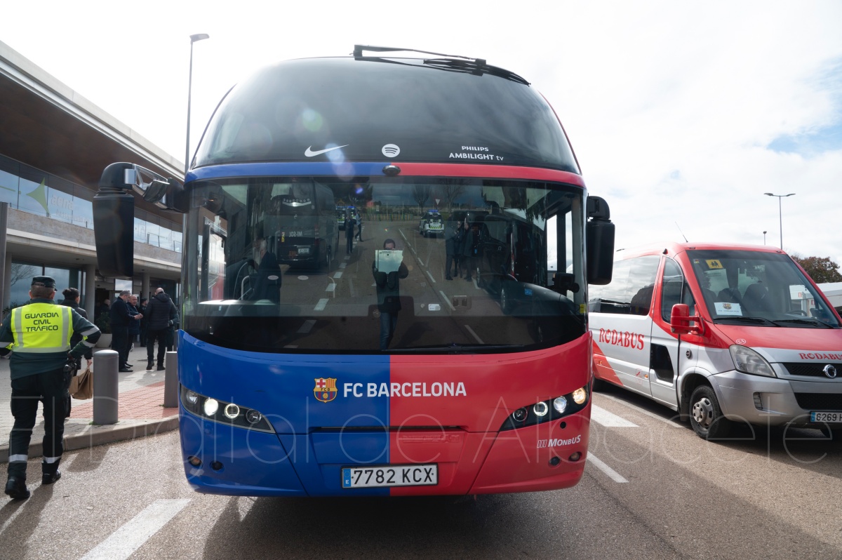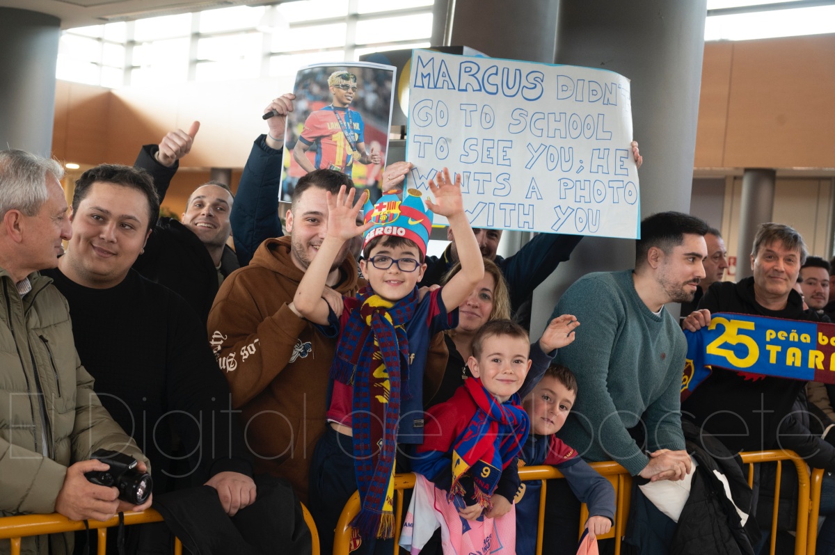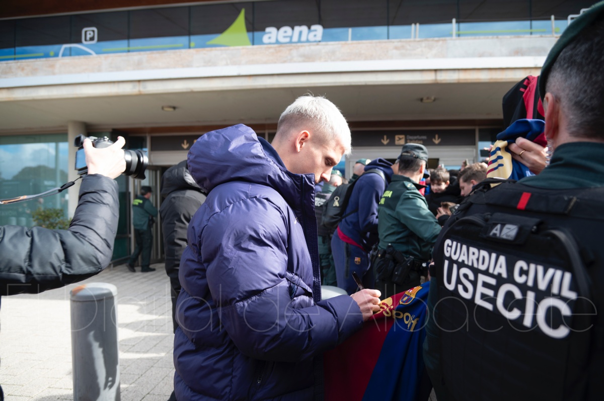 La llegada del equipo catalán estuvo acompañada de una notable expectación en el Aeropuerto de Albacete – Los Llanos. Desde primeras horas de la mañana, decenas de aficionados se congregaron en los aledaños del aeropuerto con camisetas azulgranas y móviles en alto para intentar ver de cerca a sus ídolos, en un ambiente marcado por la ilusión ante una cita de Copa del Rey de alto voltaje.