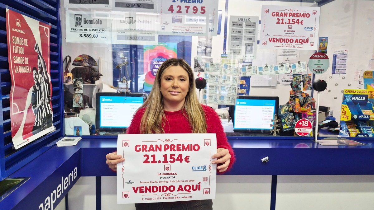 En la Jornada 39ª de ‘La Quiniela’ del domingo 1 de febrero de 2026, han aparecido treinta nueve acertantes de 1º Categoría (14 Aciertos), siendo uno de ellos validado en el Punto de Venta 01.155 (Papelería B&N), ubicada en la c/ Miguel Servet, 45 de Albacete.