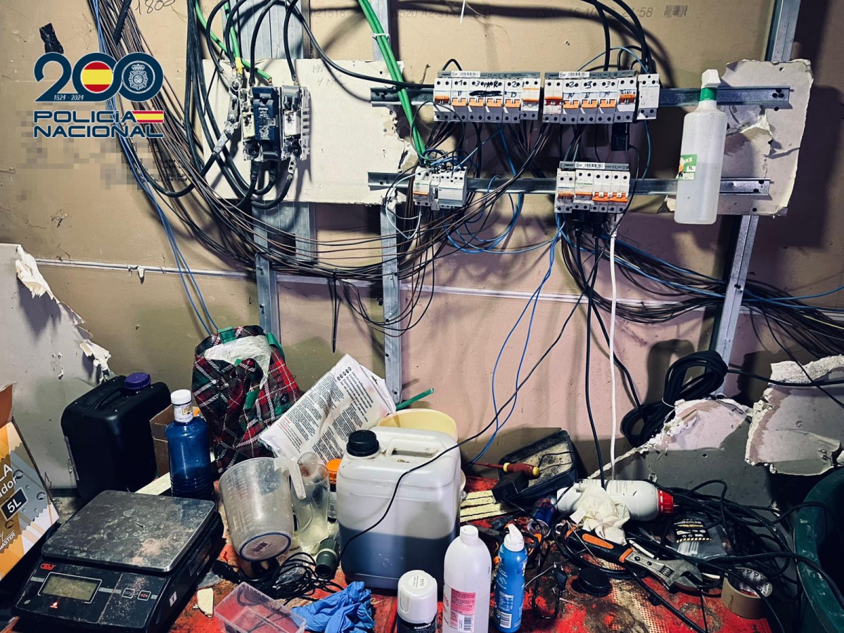 La aparente fachada del negocio ganadero ocultaba en realidad un zulo de 800 metros cuadrados excavado bajo una nave dedicada a la cría de pollos. La construcción subterránea contaba con cinco estancias individualizadas y provistas de varios aparatos de aire acondicionado, extractores de aire, reactancias, transformadores, cuadros eléctricos, lámparas, ventiladores y humidificadores, conformando una compleja instalación que mantenía las condiciones óptimas para el crecimiento de 932 plantas.