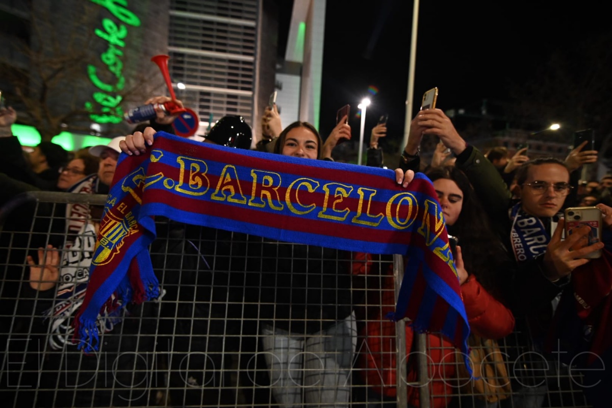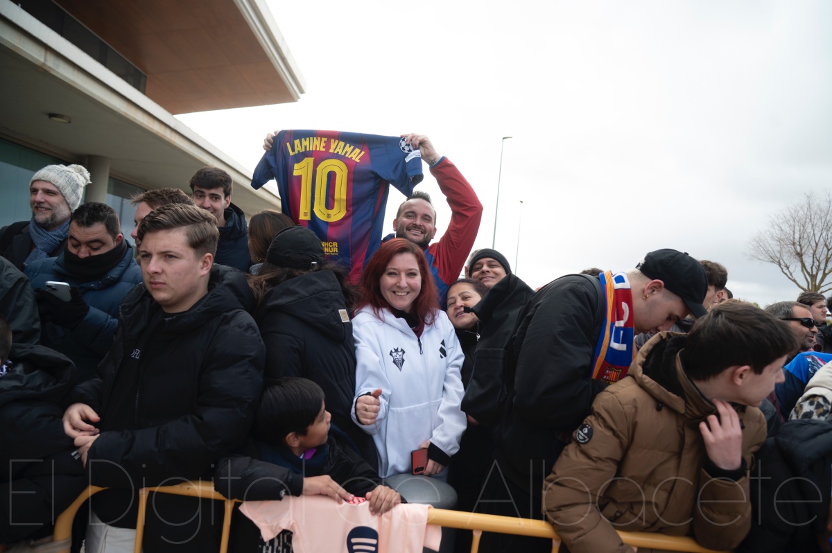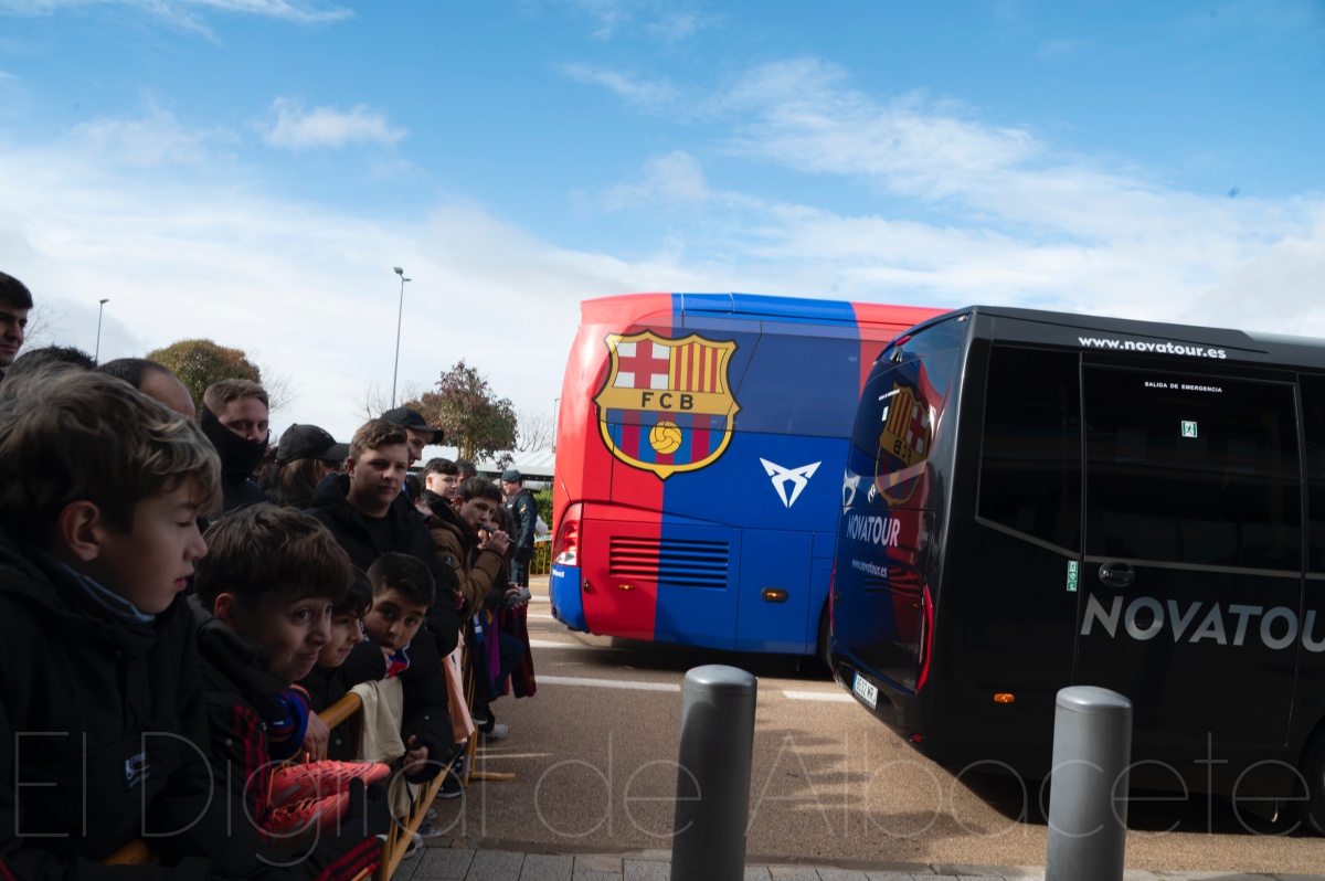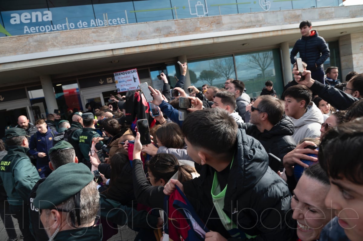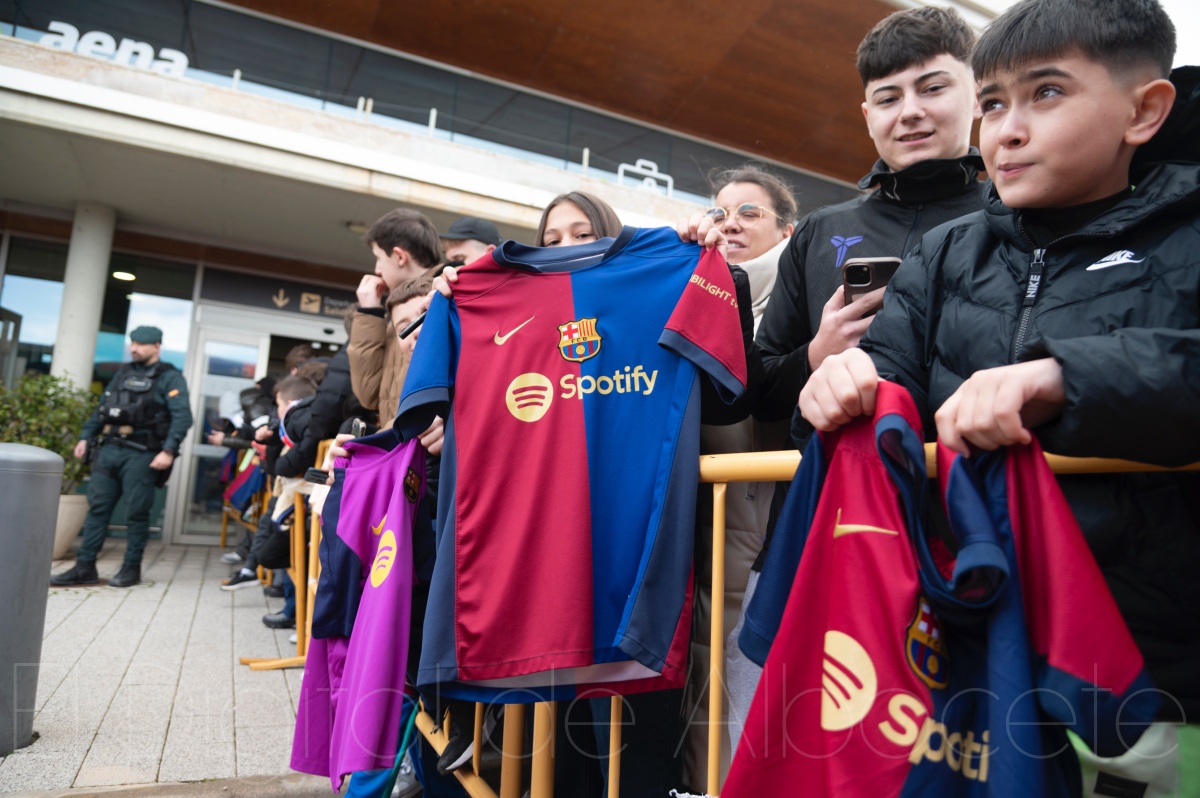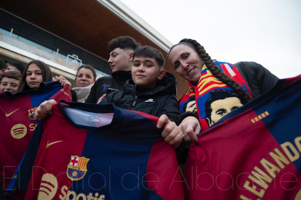 El día arrancó temprano, con la expectación desbordándose fuera del estadio y, antes, incluso fuera de la ciudad. Hubo aficionados aguardando la llegada azulgrana en el Aeropuerto de Albacete-Los Llanos y también a las puertas del hotel de concentración, buscando un gesto, una mirada, un autógrafo que convertir en recuerdo de por vida.