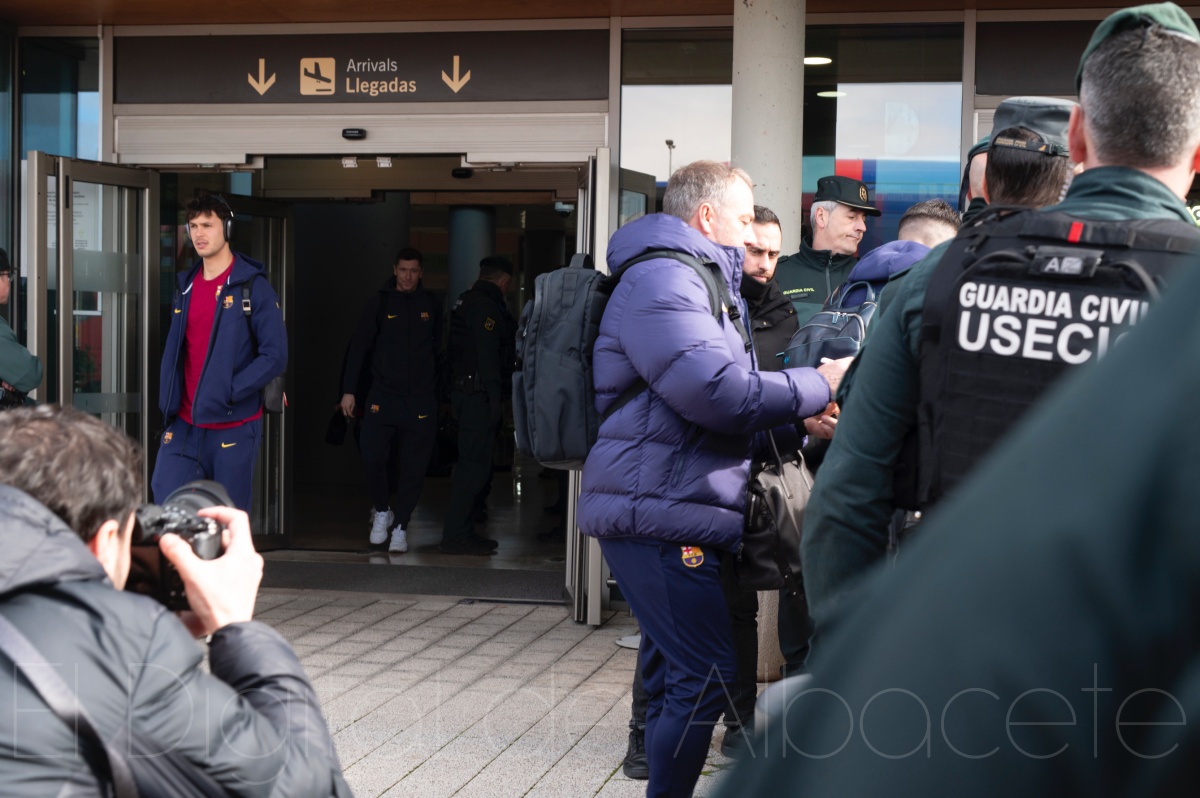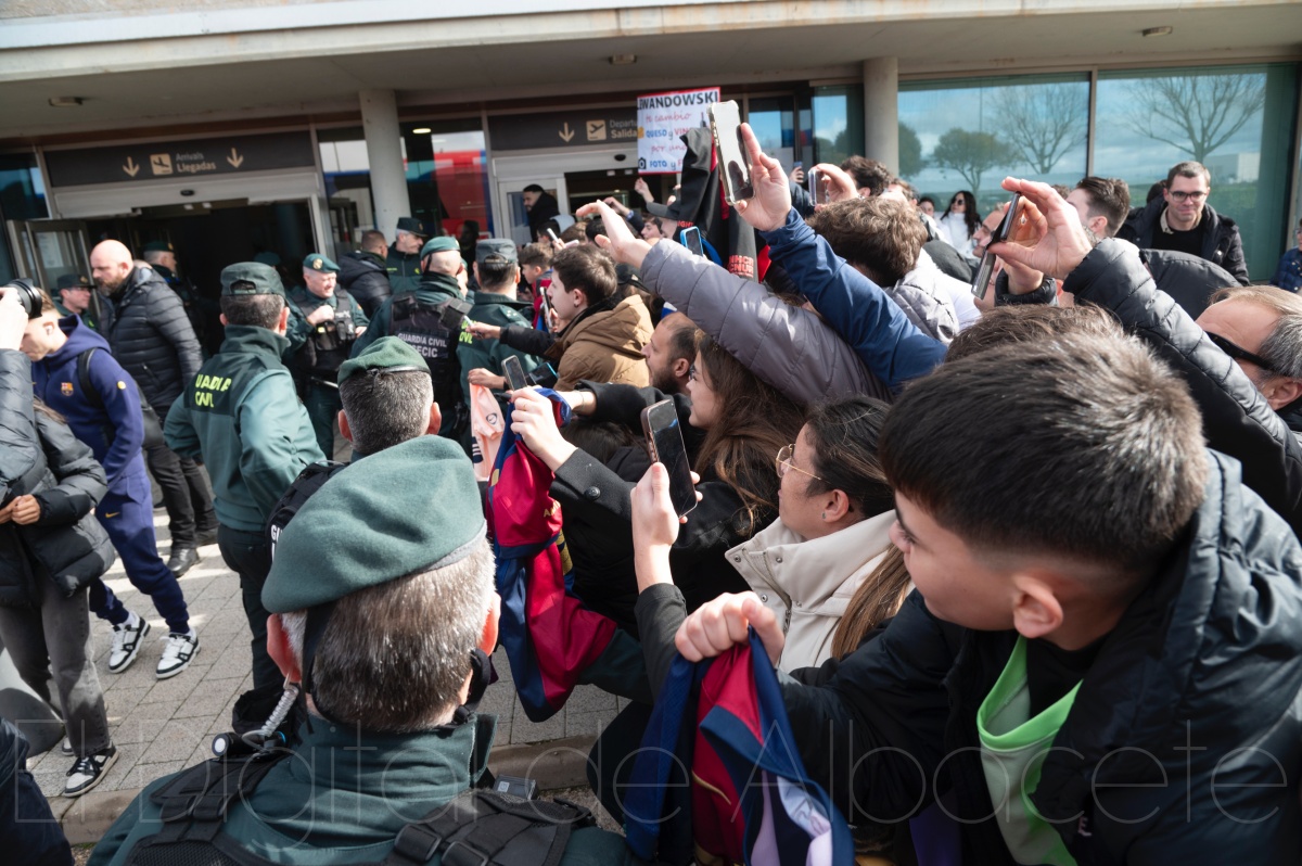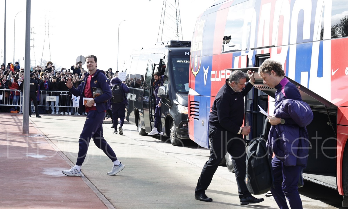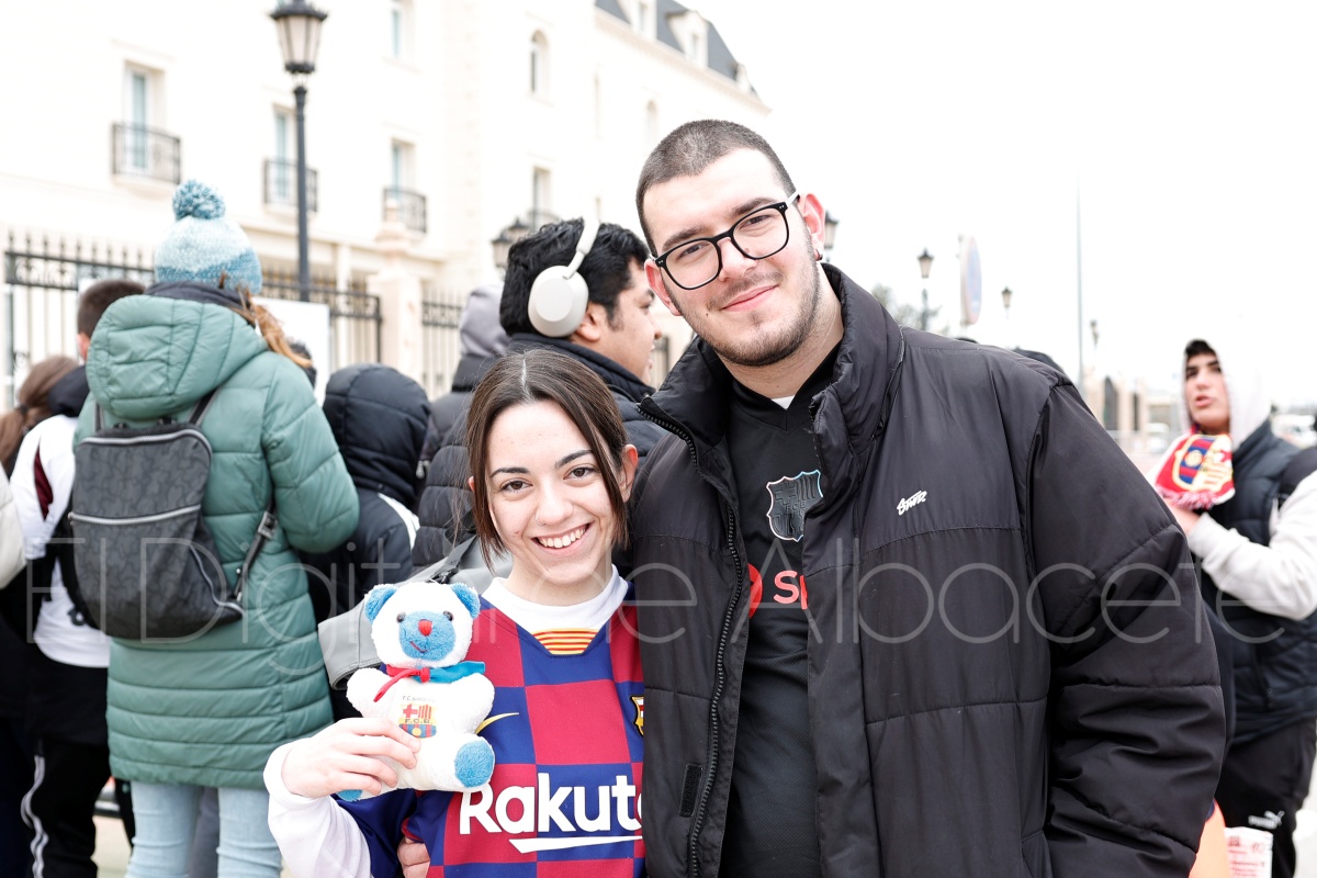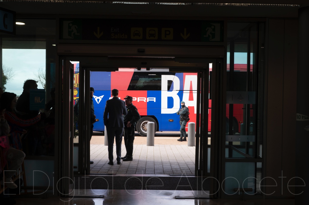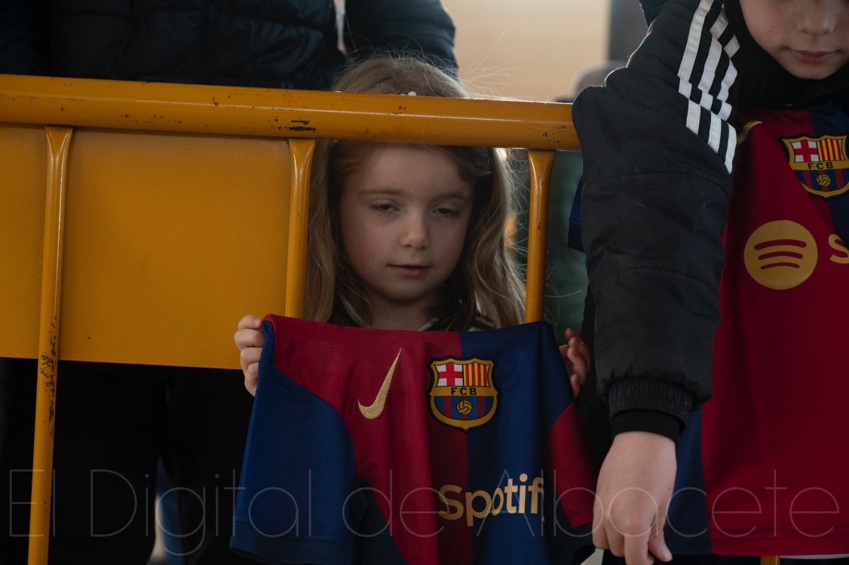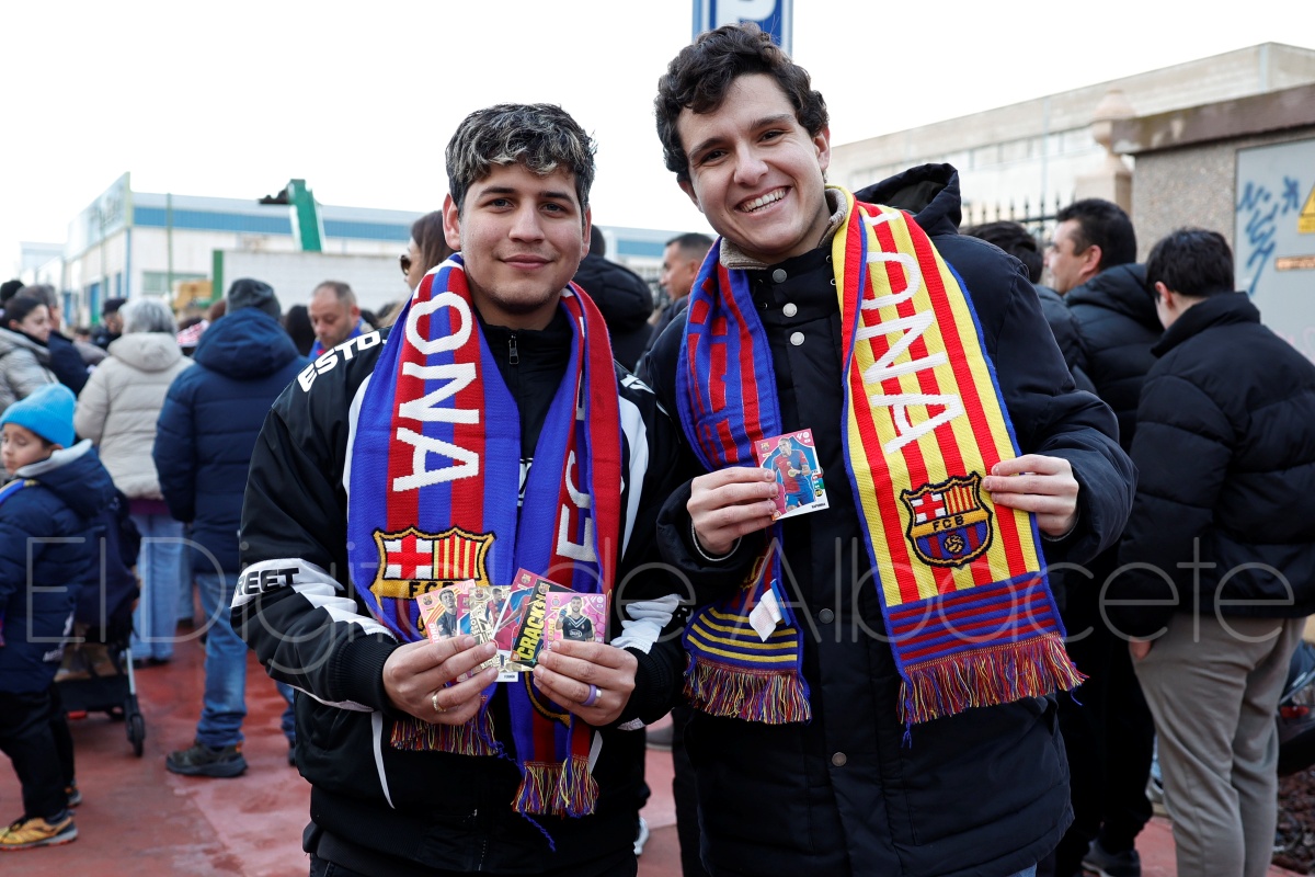 El día arrancó temprano, con la expectación desbordándose fuera del estadio y, antes, incluso fuera de la ciudad. Hubo aficionados aguardando la llegada azulgrana en el Aeropuerto de Albacete-Los Llanos y también a las puertas del hotel de concentración, buscando un gesto, una mirada, un autógrafo que convertir en recuerdo de por vida.