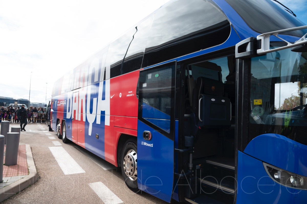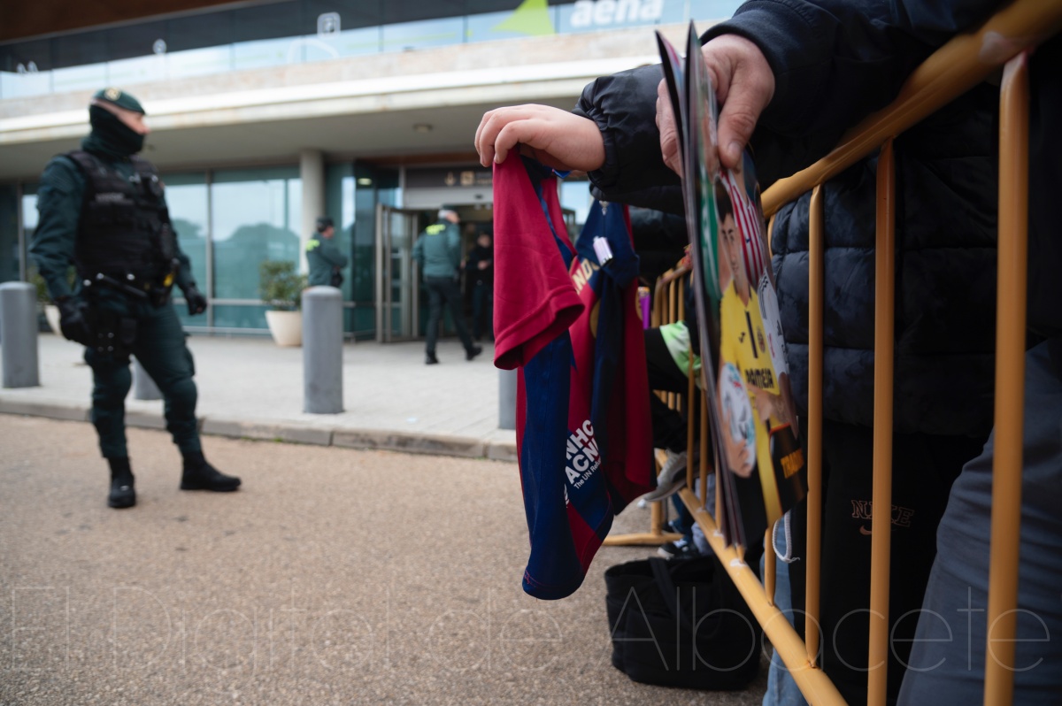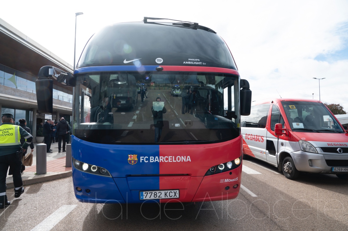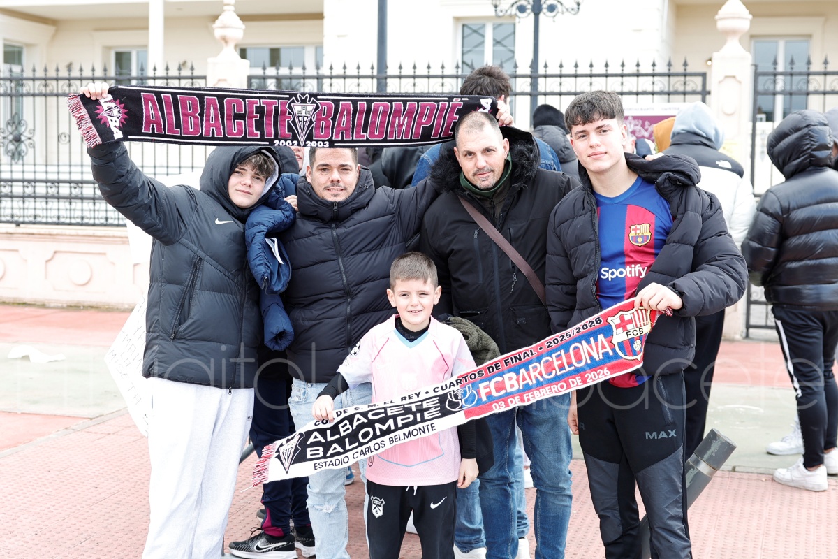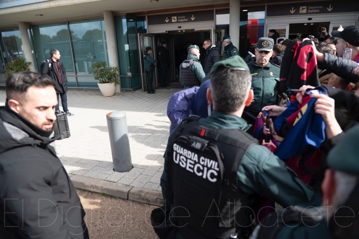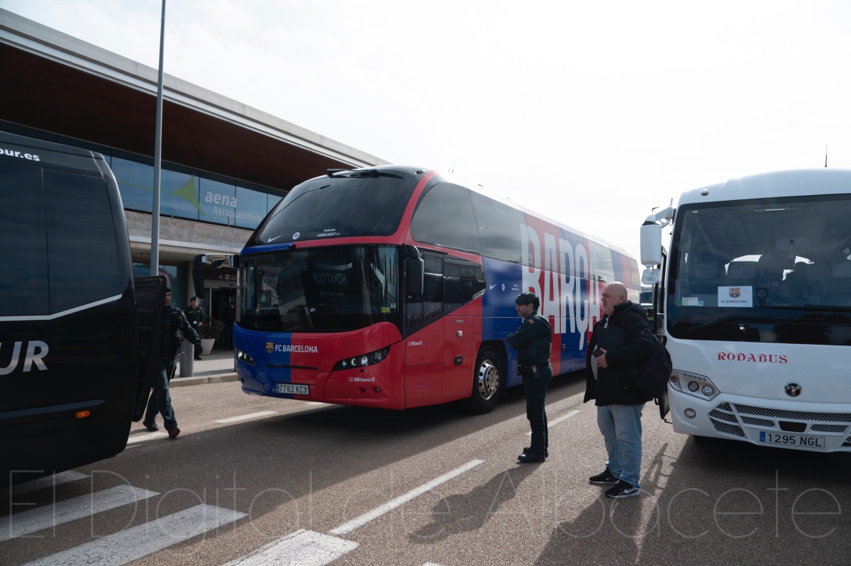 El día arrancó temprano, con la expectación desbordándose fuera del estadio y, antes, incluso fuera de la ciudad. Hubo aficionados aguardando la llegada azulgrana en el Aeropuerto de Albacete-Los Llanos y también a las puertas del hotel de concentración, buscando un gesto, una mirada, un autógrafo que convertir en recuerdo de por vida.