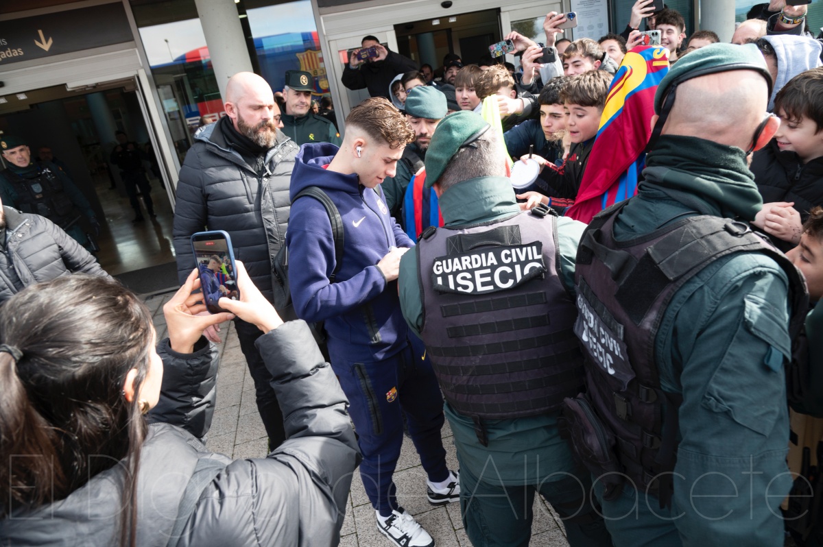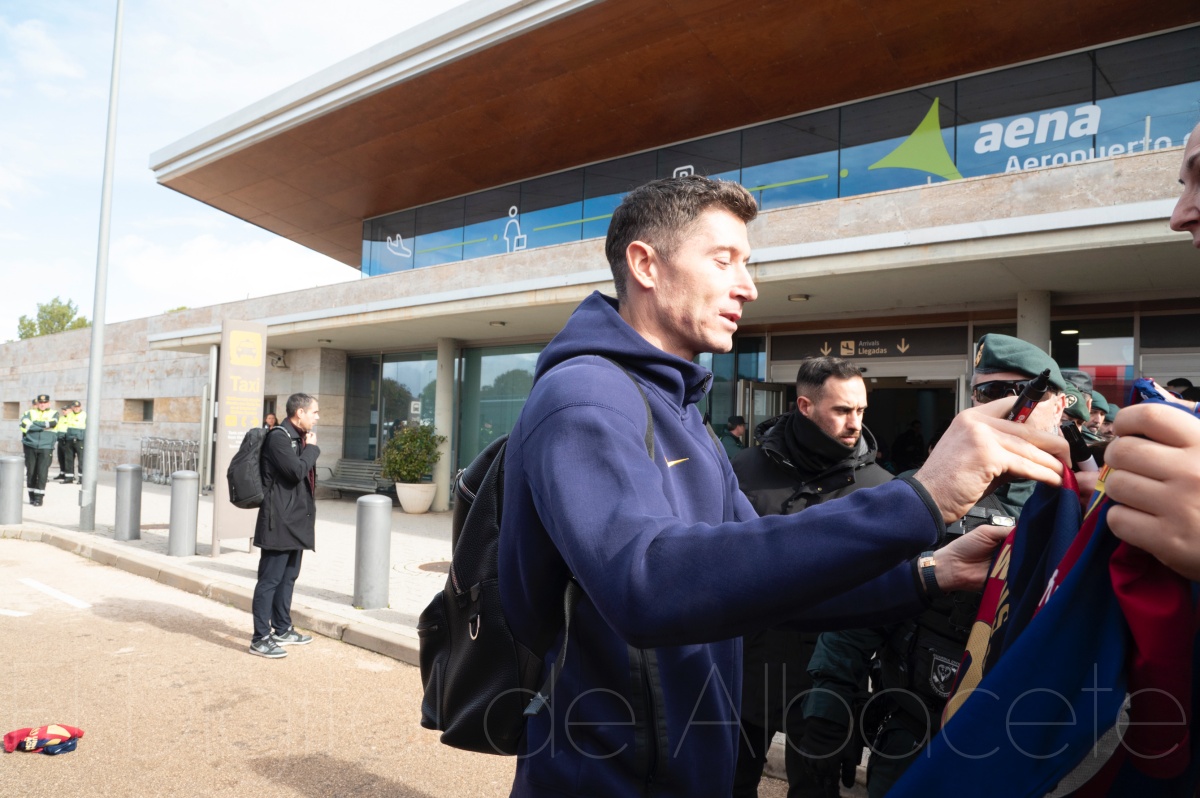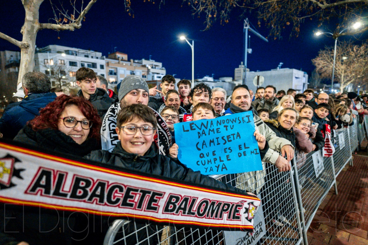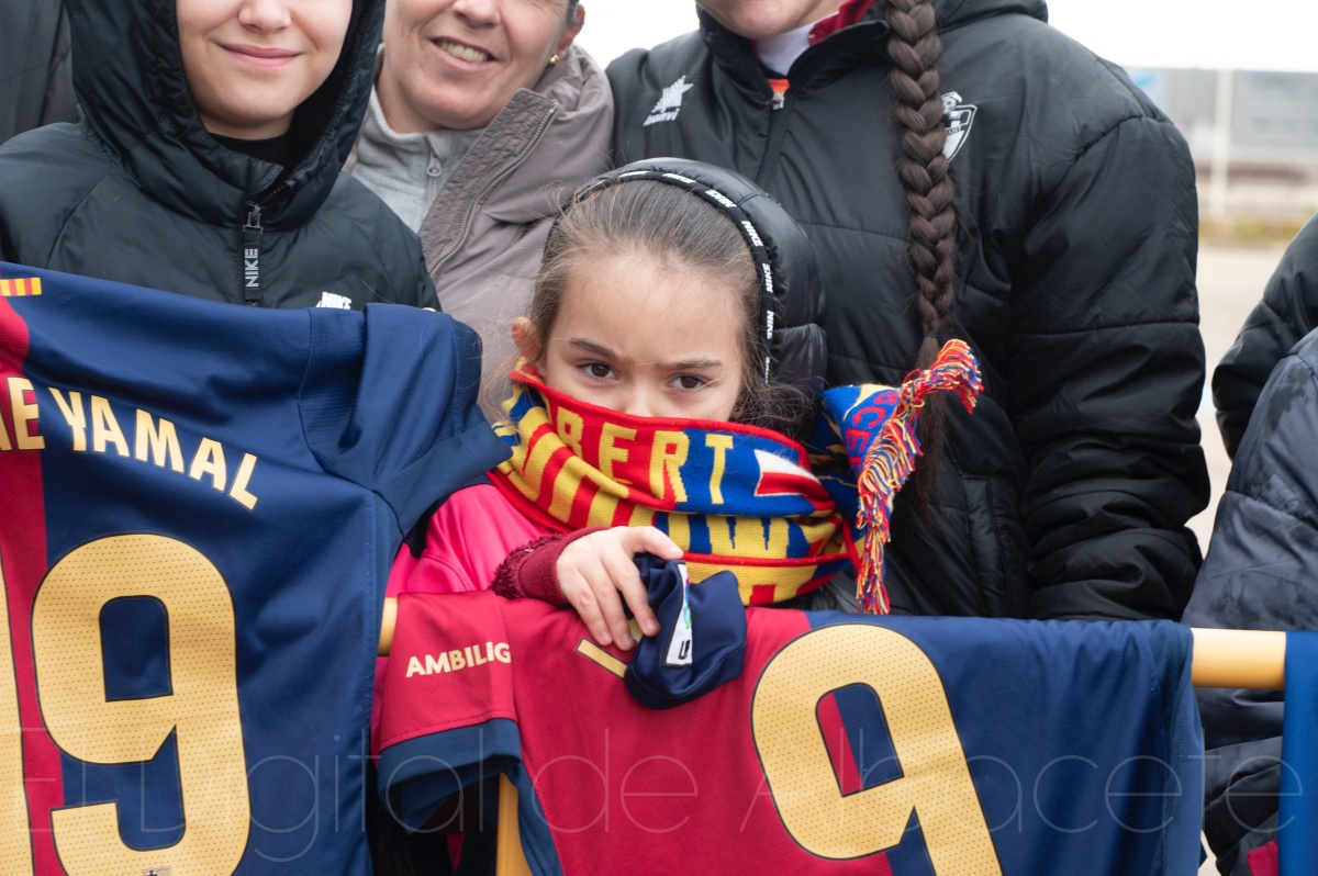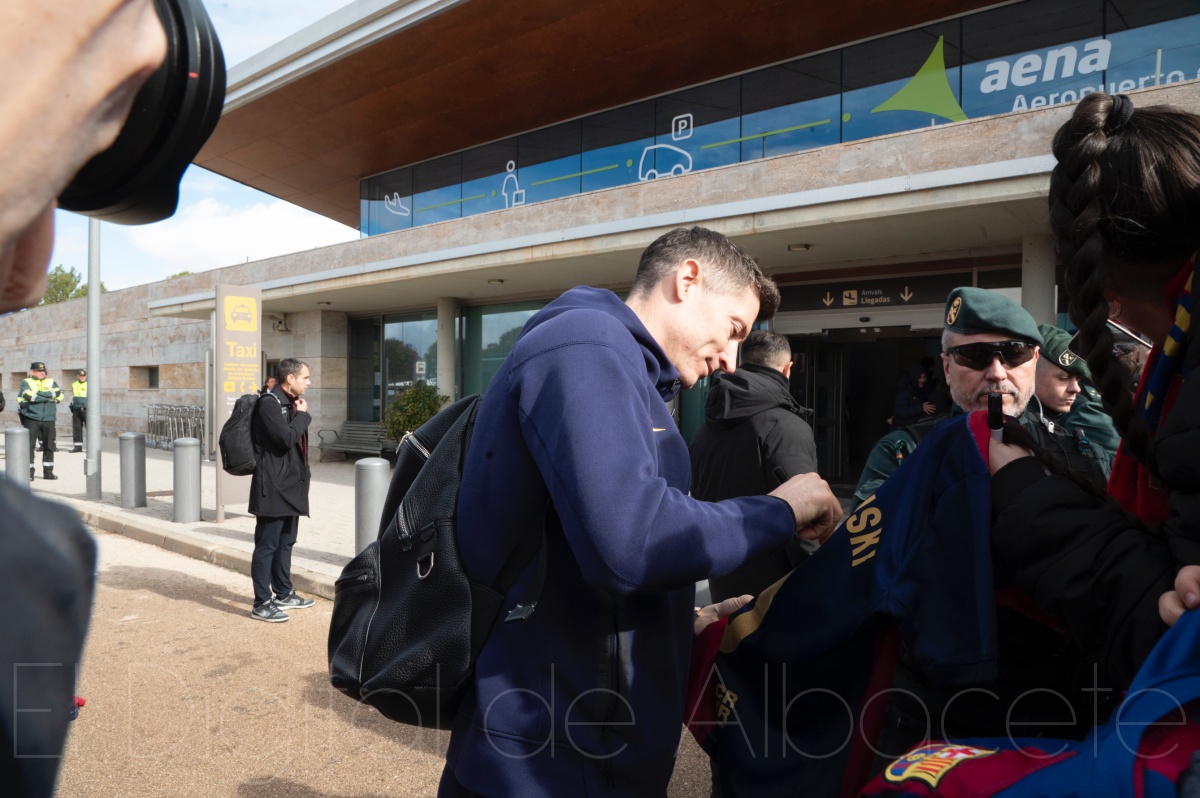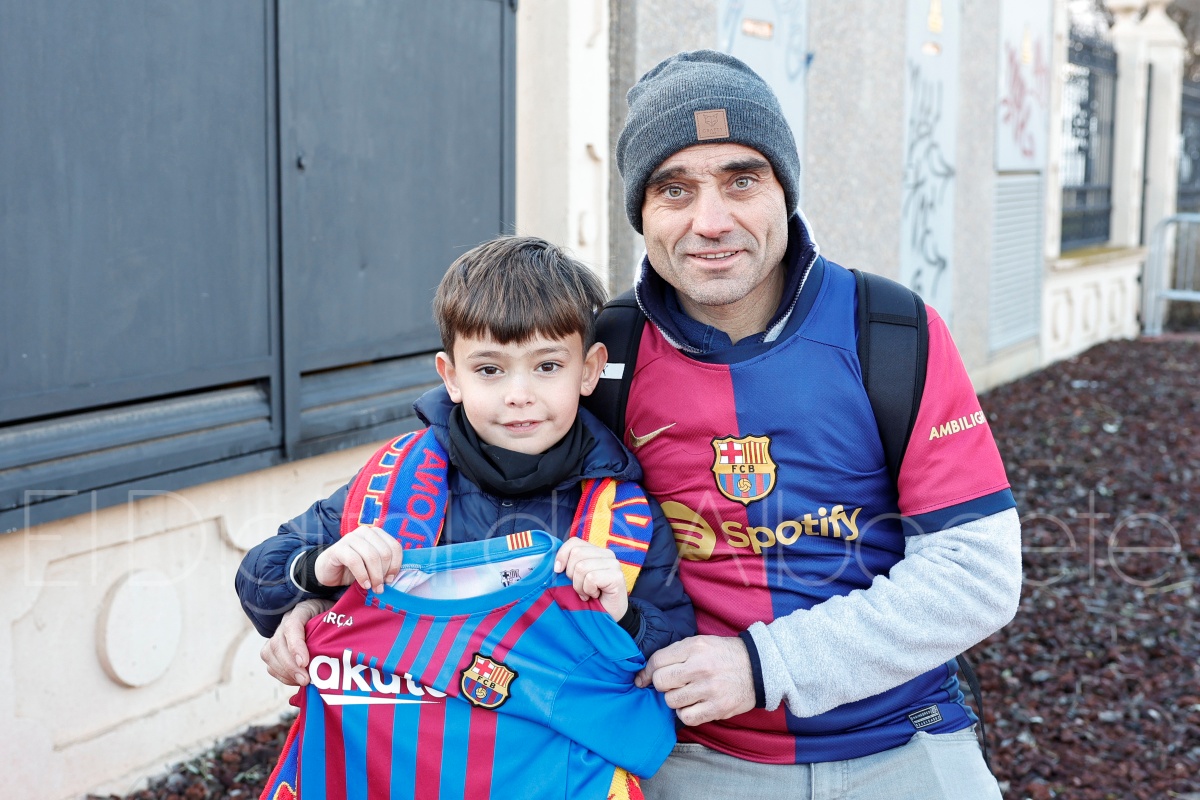 El día arrancó temprano, con la expectación desbordándose fuera del estadio y, antes, incluso fuera de la ciudad. Hubo aficionados aguardando la llegada azulgrana en el Aeropuerto de Albacete-Los Llanos y también a las puertas del hotel de concentración, buscando un gesto, una mirada, un autógrafo que convertir en recuerdo de por vida.