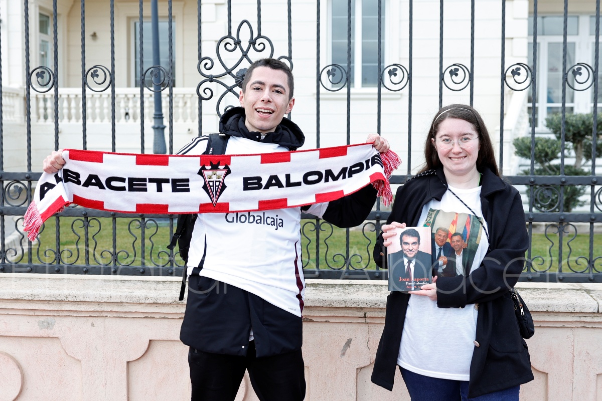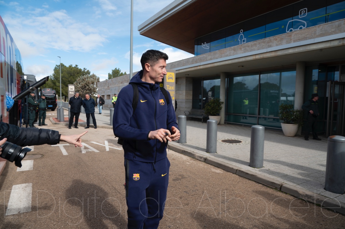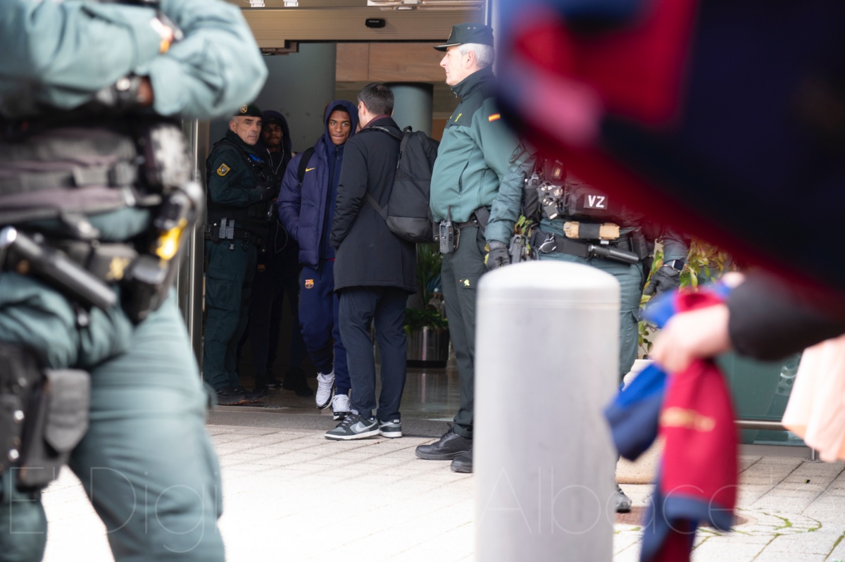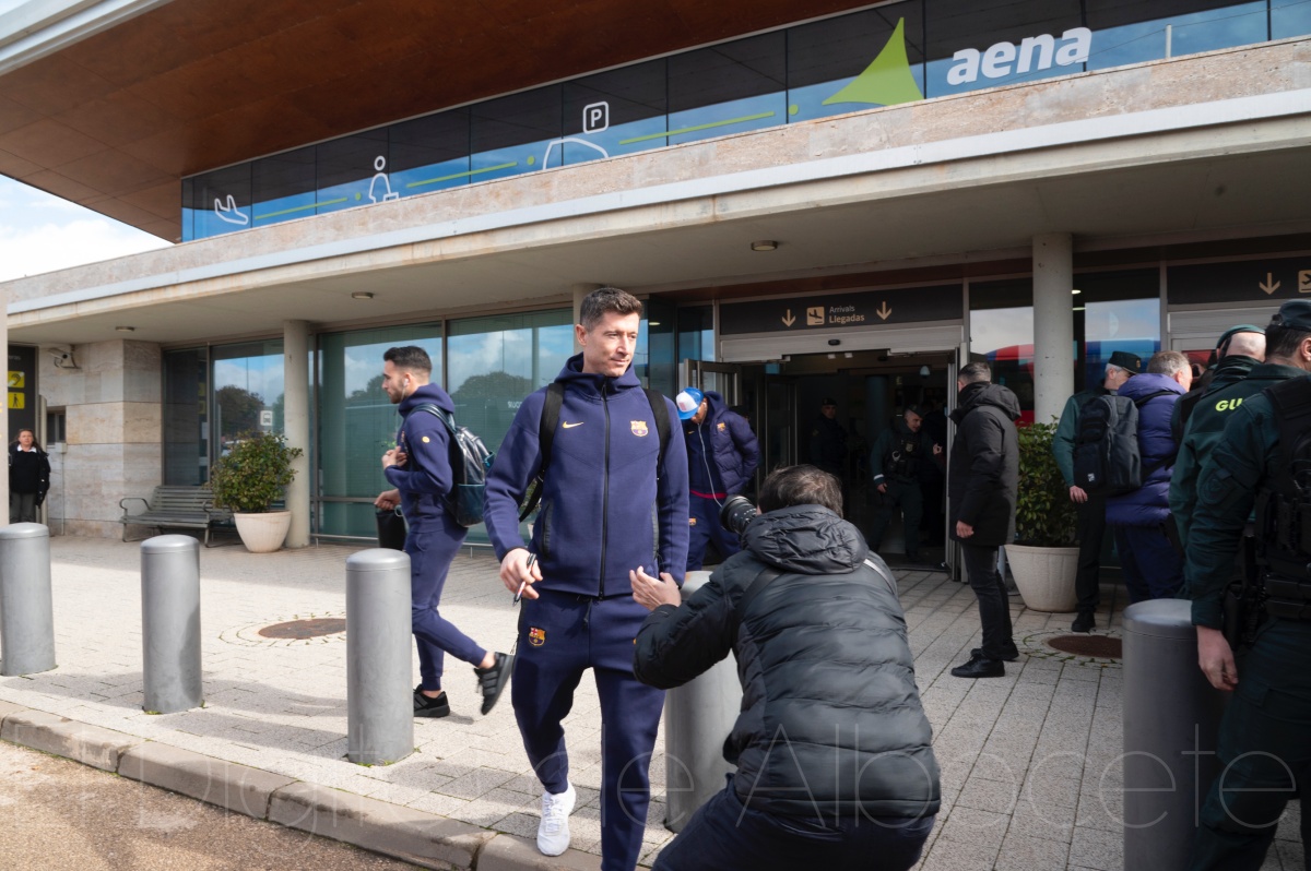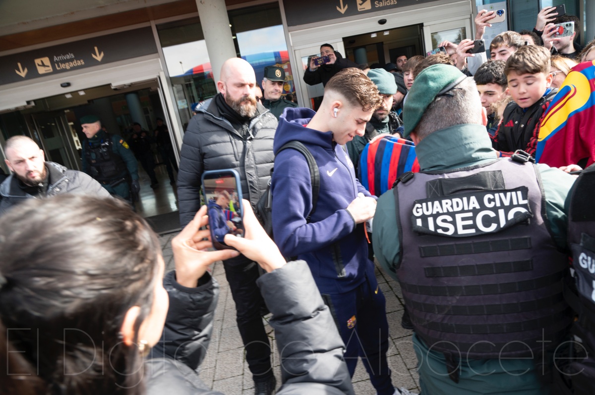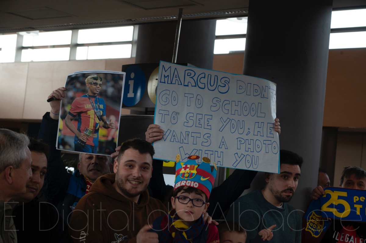 El día arrancó temprano, con la expectación desbordándose fuera del estadio y, antes, incluso fuera de la ciudad. Hubo aficionados aguardando la llegada azulgrana en el Aeropuerto de Albacete-Los Llanos y también a las puertas del hotel de concentración, buscando un gesto, una mirada, un autógrafo que convertir en recuerdo de por vida.