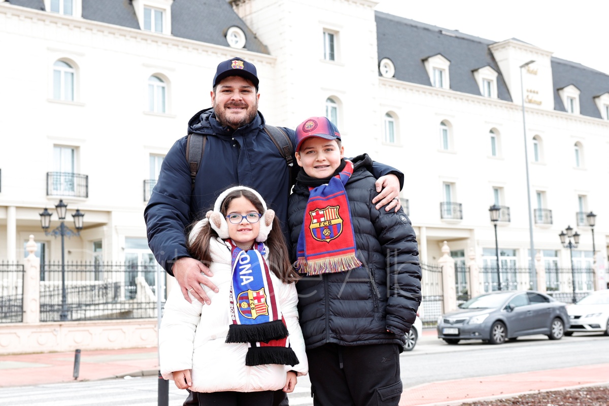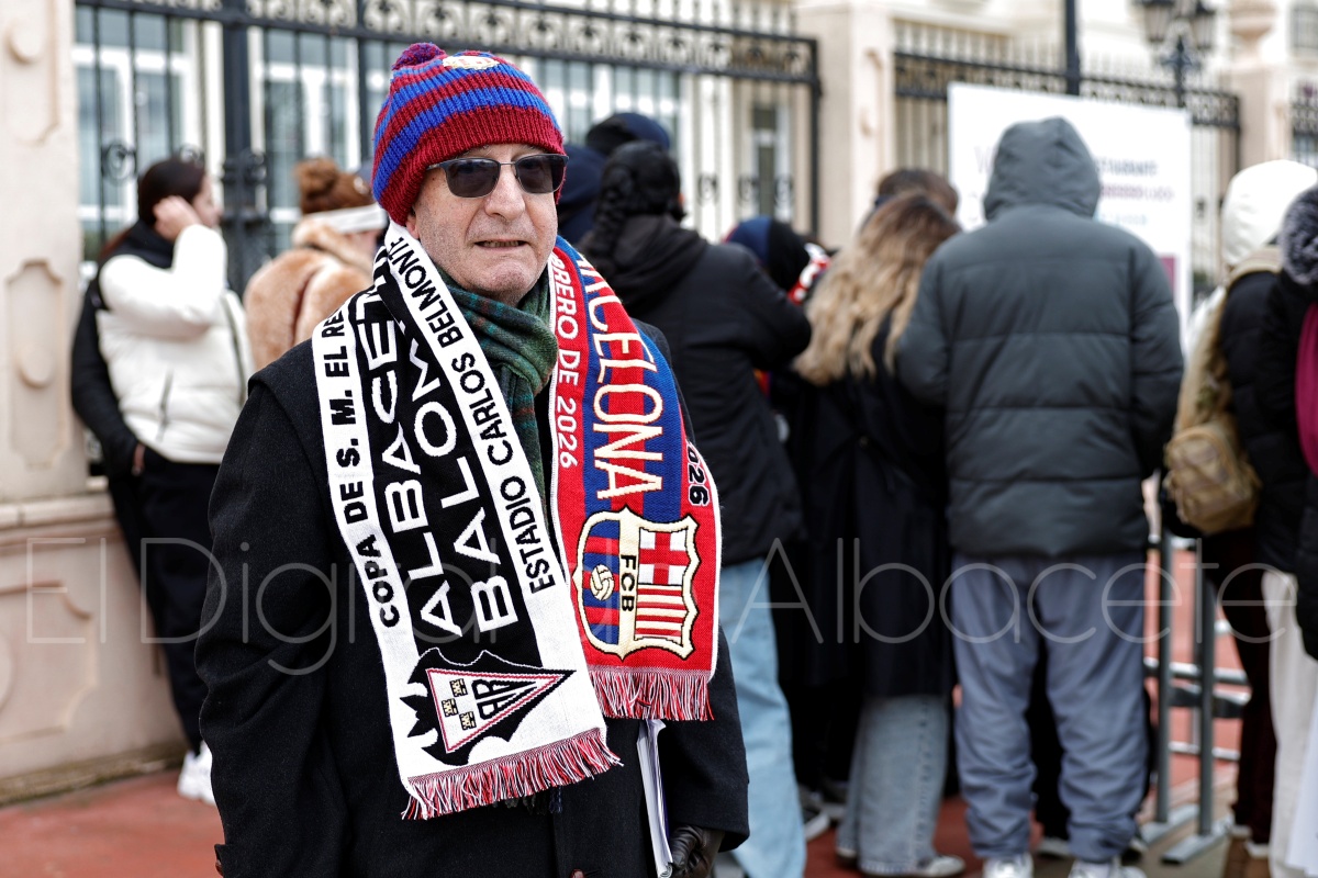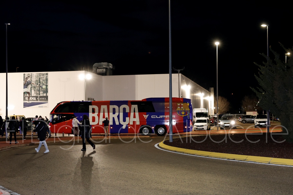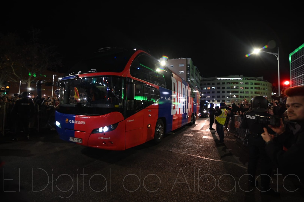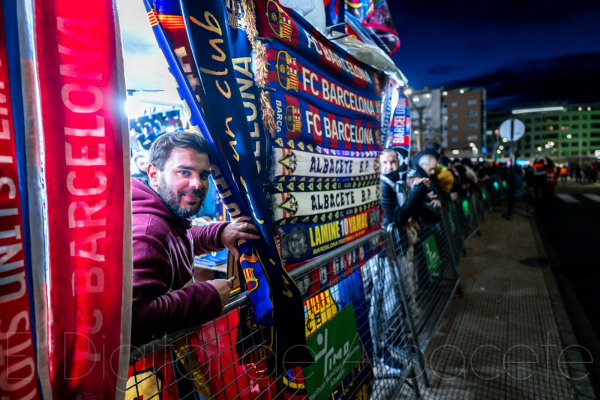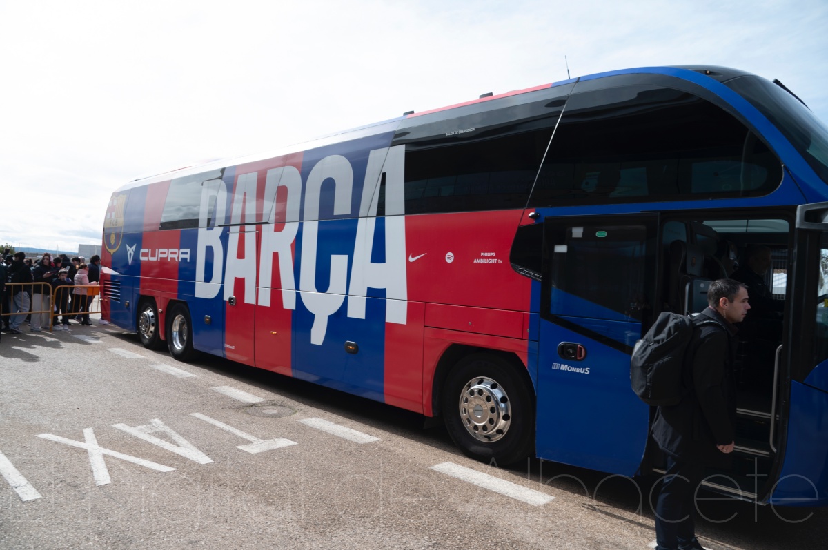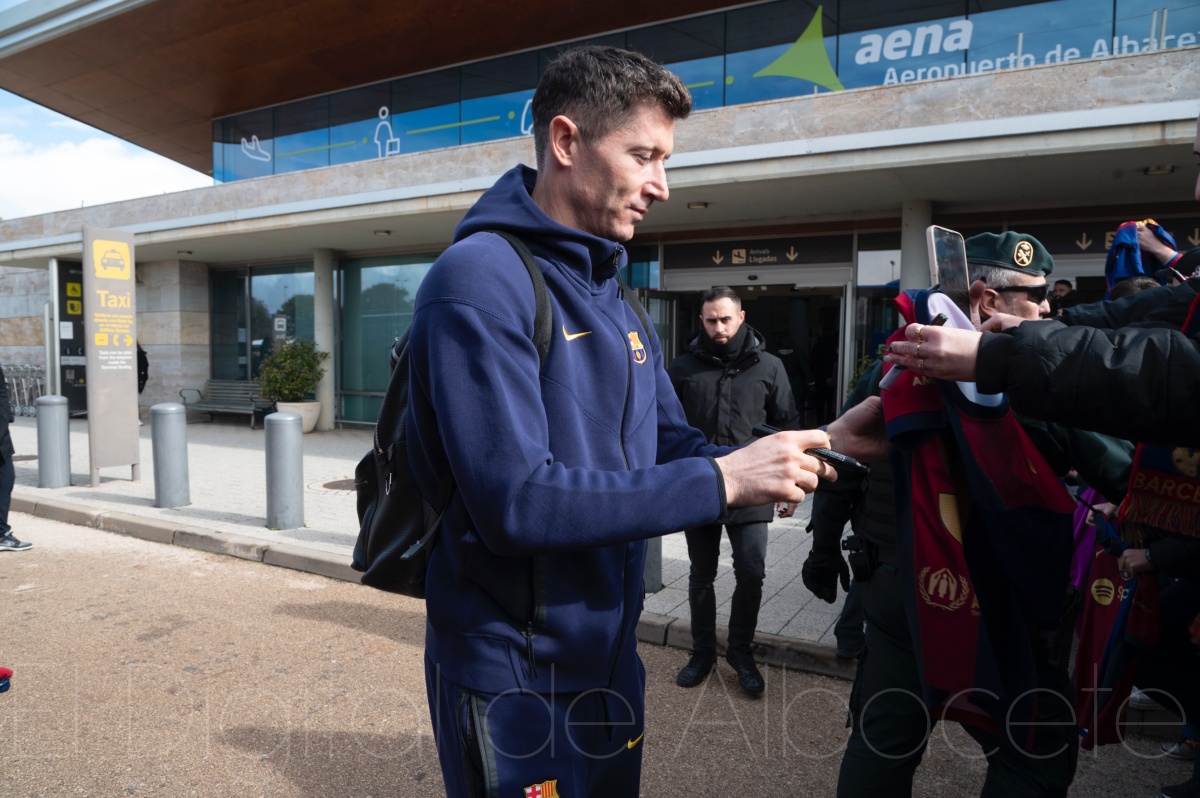 El día arrancó temprano, con la expectación desbordándose fuera del estadio y, antes, incluso fuera de la ciudad. Hubo aficionados aguardando la llegada azulgrana en el Aeropuerto de Albacete-Los Llanos y también a las puertas del hotel de concentración, buscando un gesto, una mirada, un autógrafo que convertir en recuerdo de por vida.