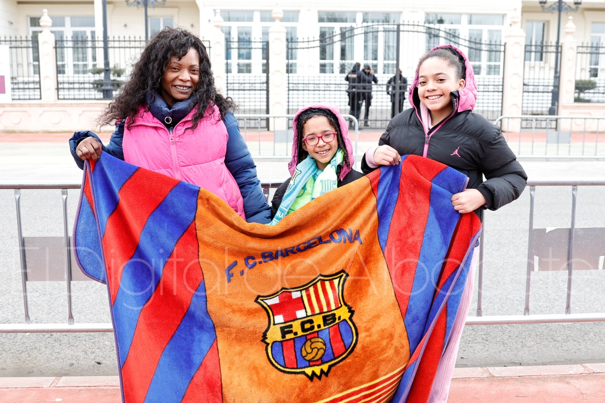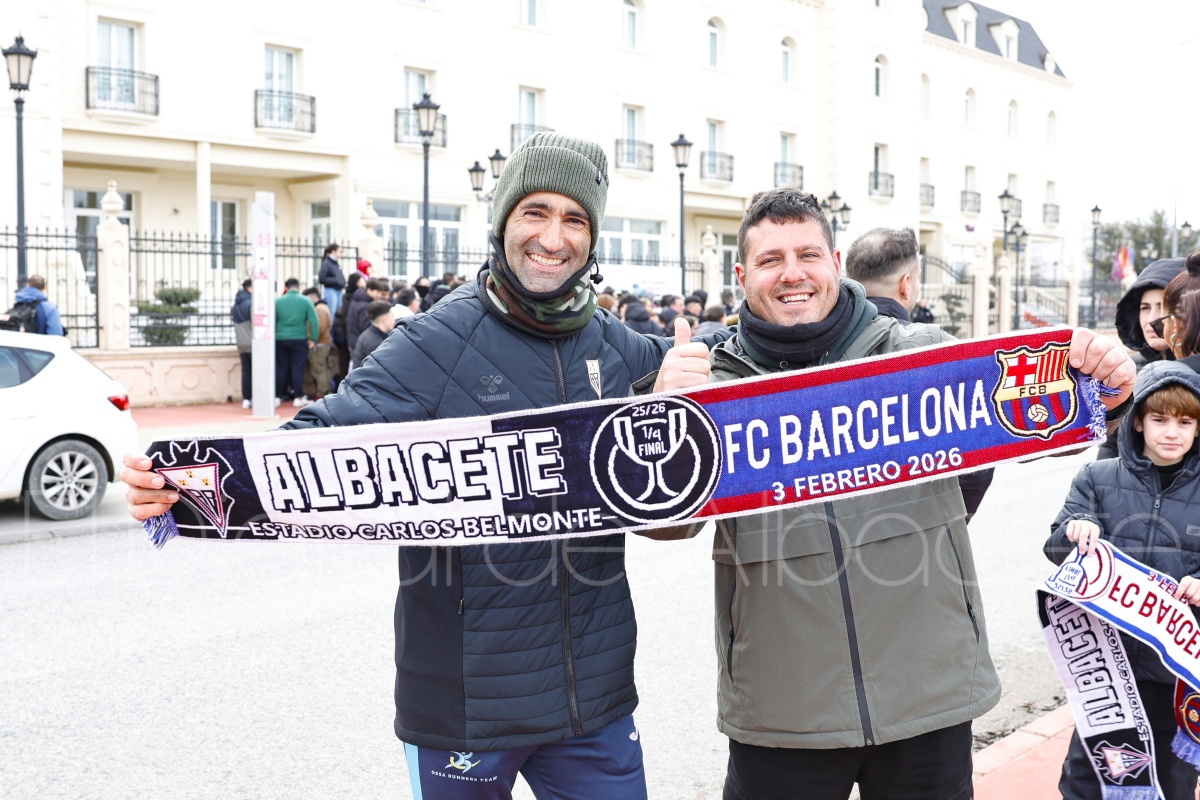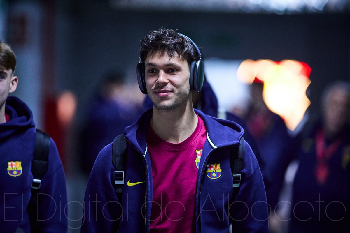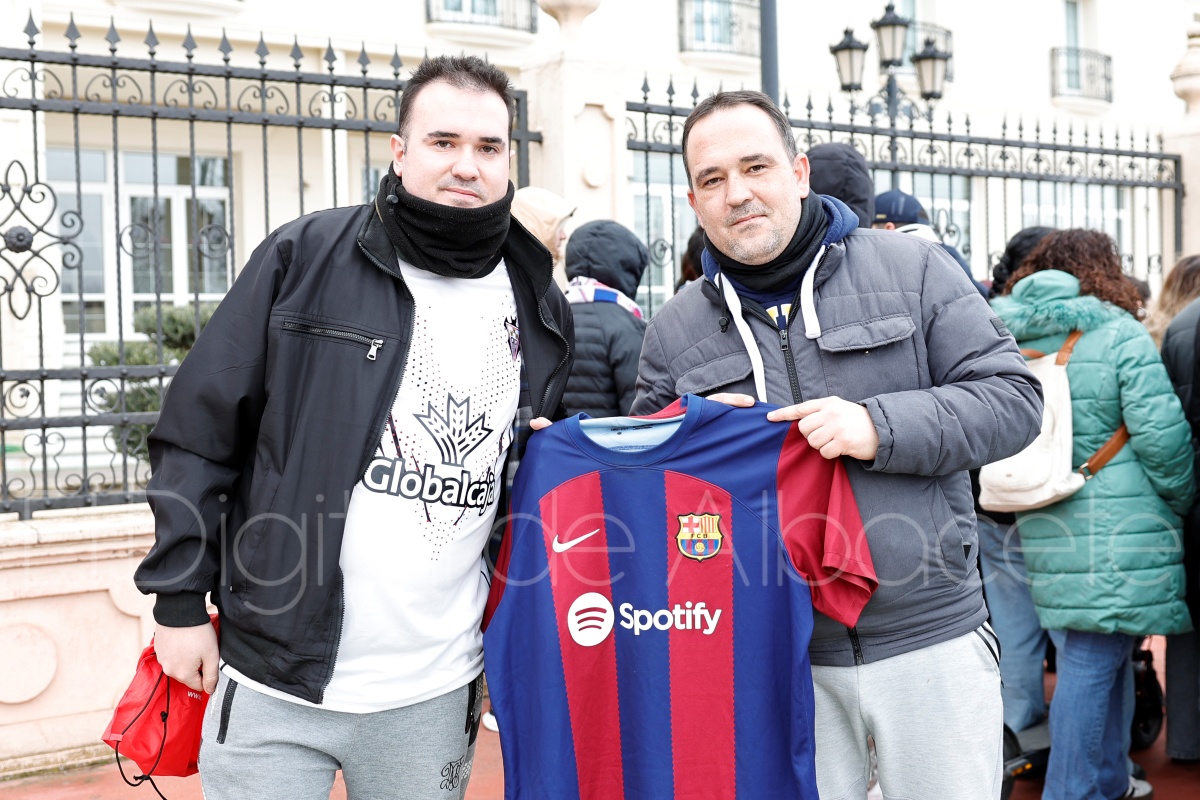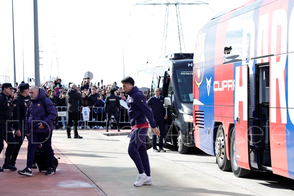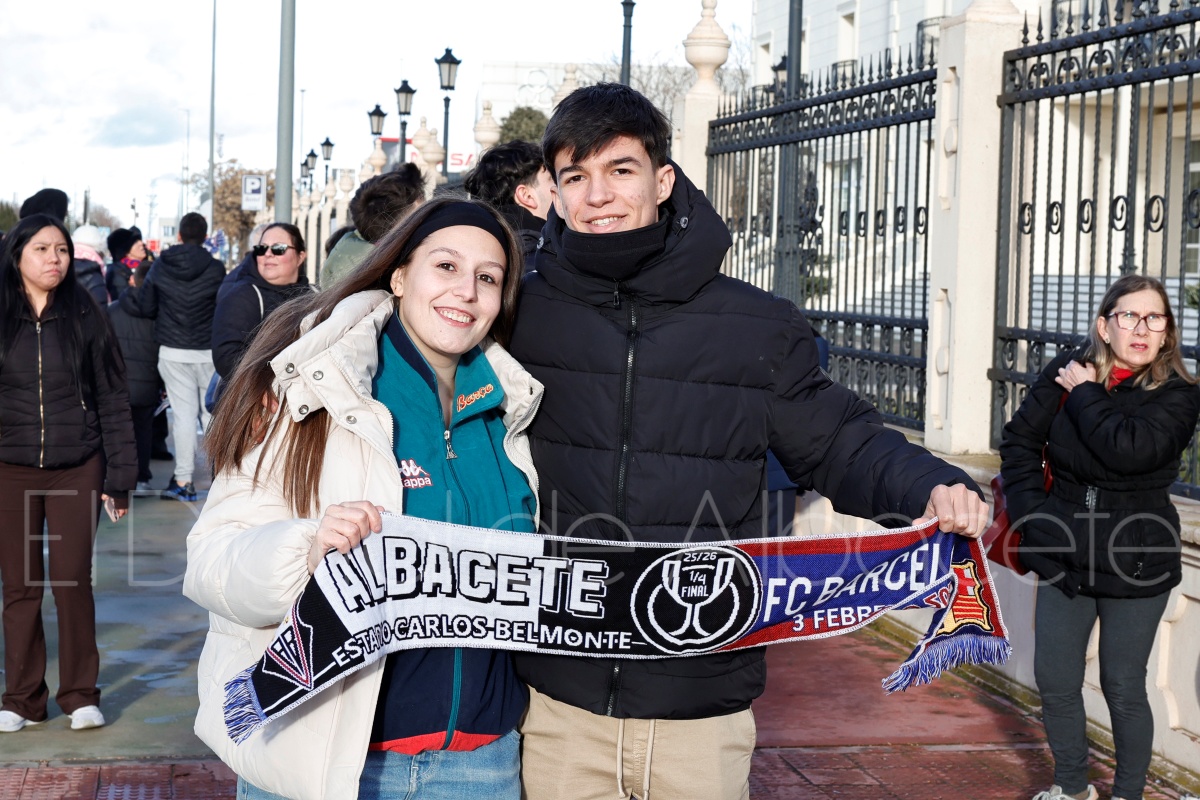El día arrancó temprano, con la expectación desbordándose fuera del estadio y, antes, incluso fuera de la ciudad. Hubo aficionados aguardando la llegada azulgrana en el Aeropuerto de Albacete-Los Llanos y también a las puertas del hotel de concentración, buscando un gesto, una mirada, un autógrafo que convertir en recuerdo de por vida.