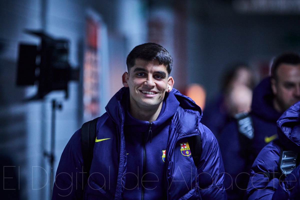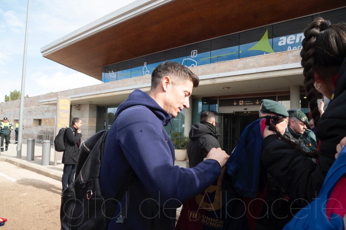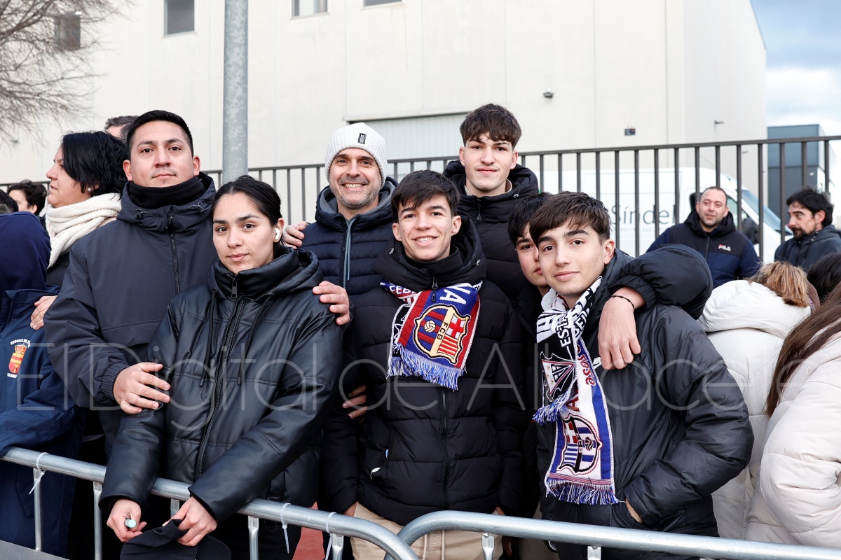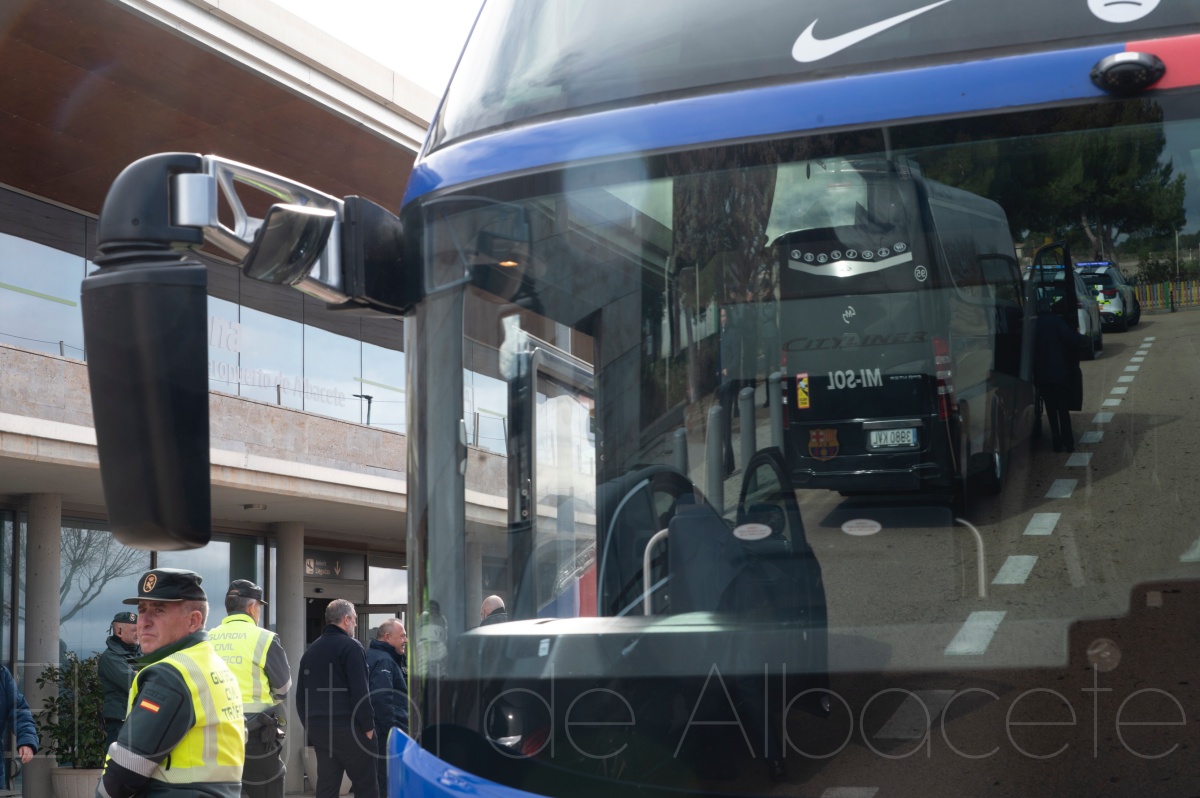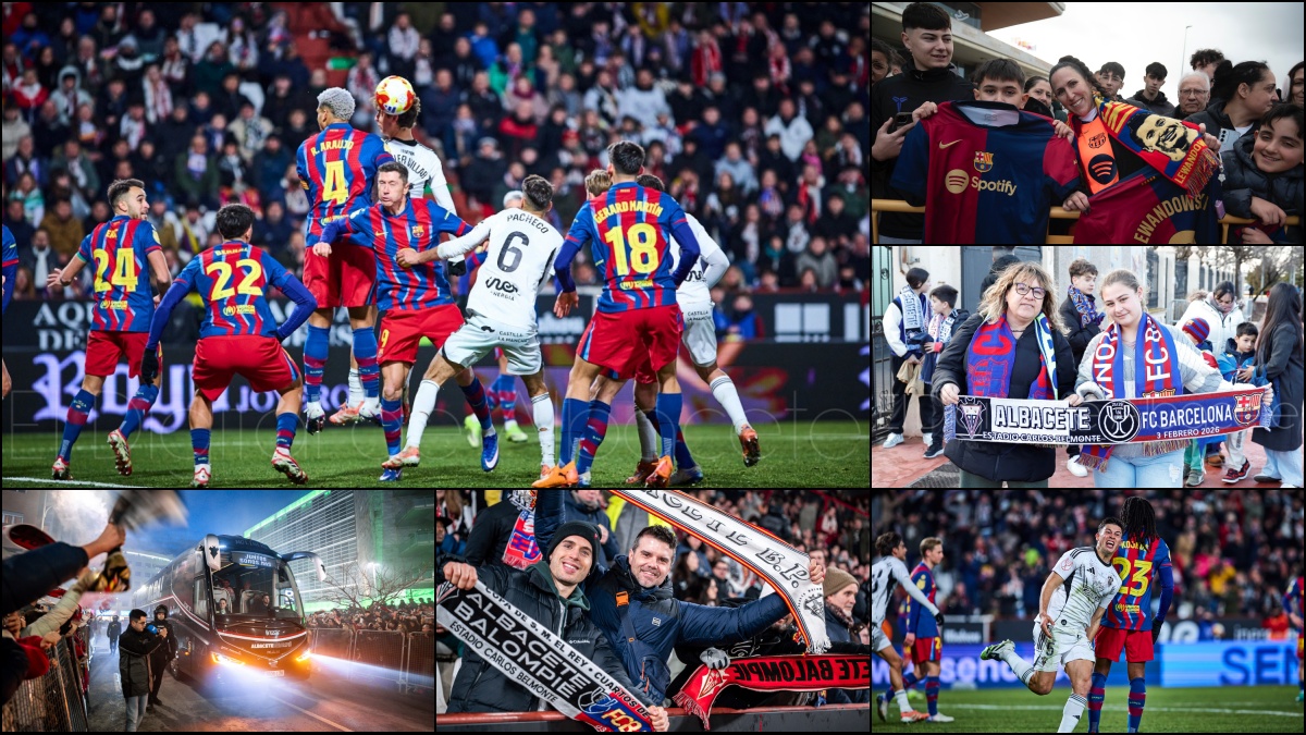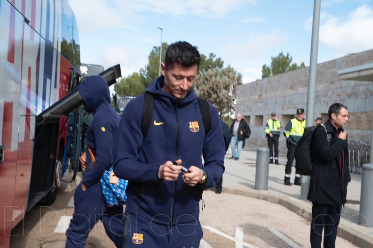El día arrancó temprano, con la expectación desbordándose fuera del estadio y, antes, incluso fuera de la ciudad. Hubo aficionados aguardando la llegada azulgrana en el Aeropuerto de Albacete-Los Llanos y también a las puertas del hotel de concentración, buscando un gesto, una mirada, un autógrafo que convertir en recuerdo de por vida.
