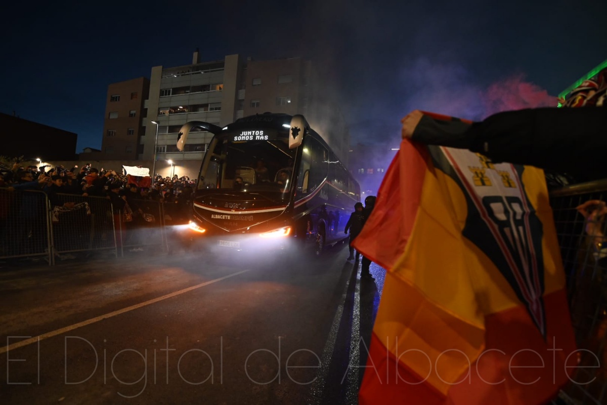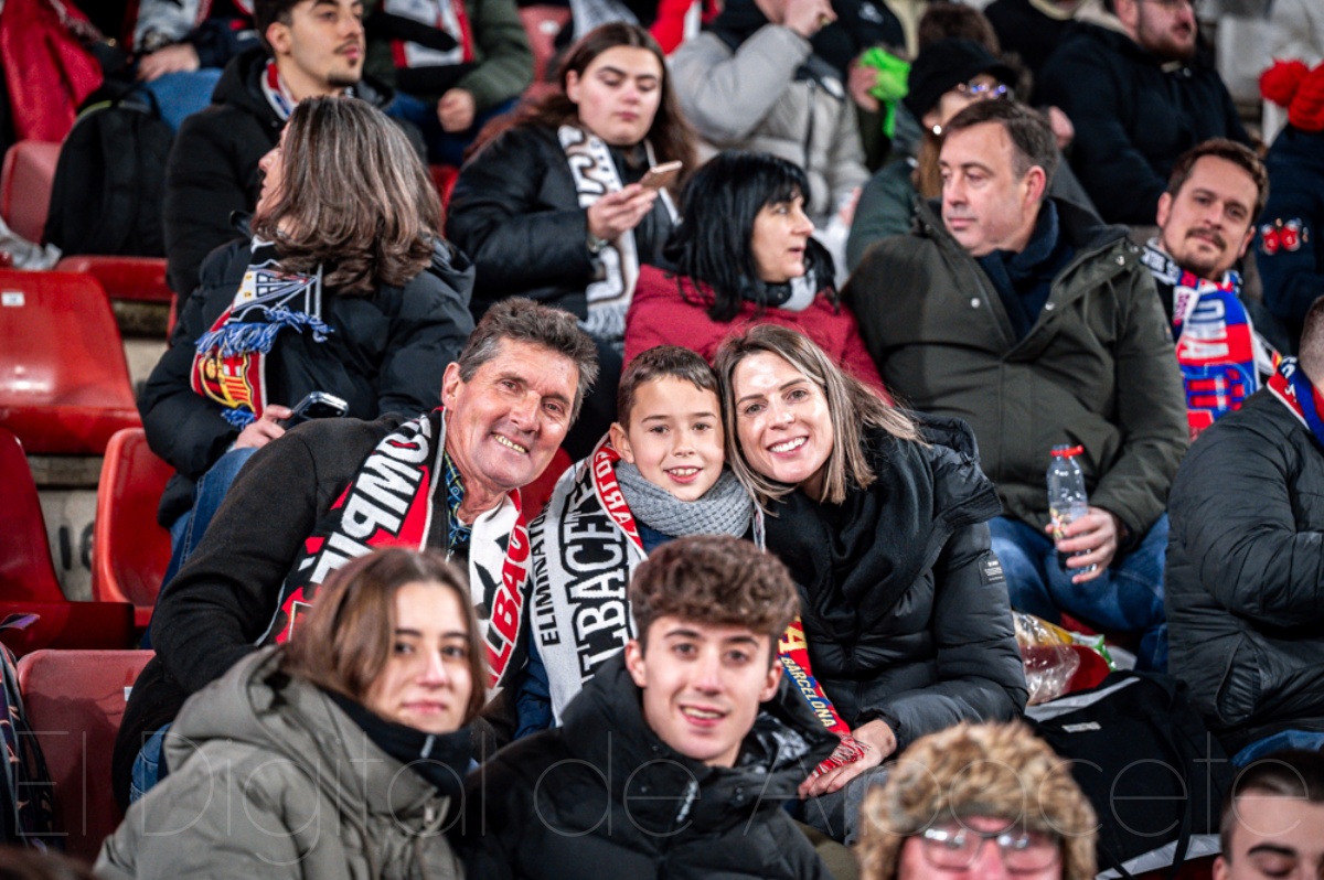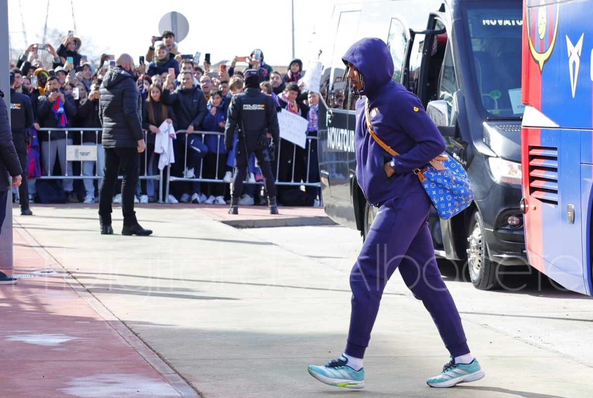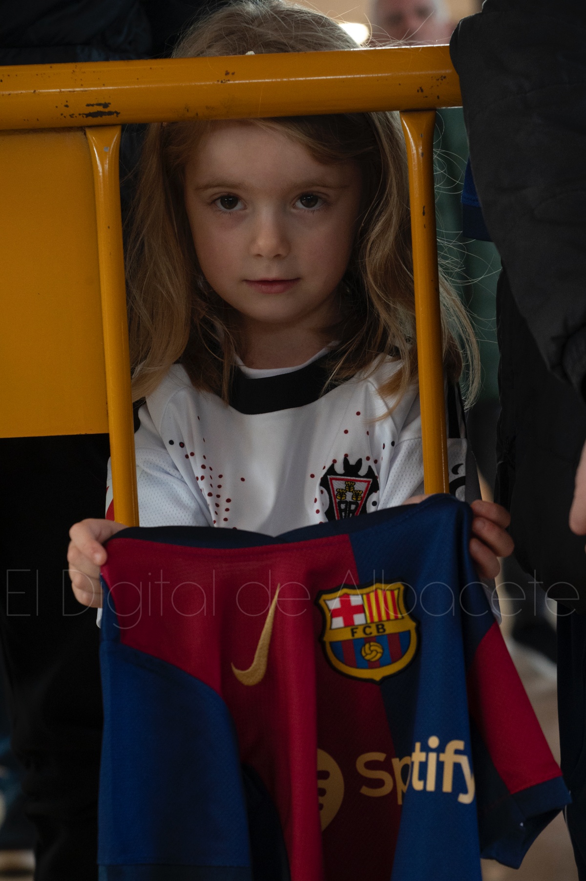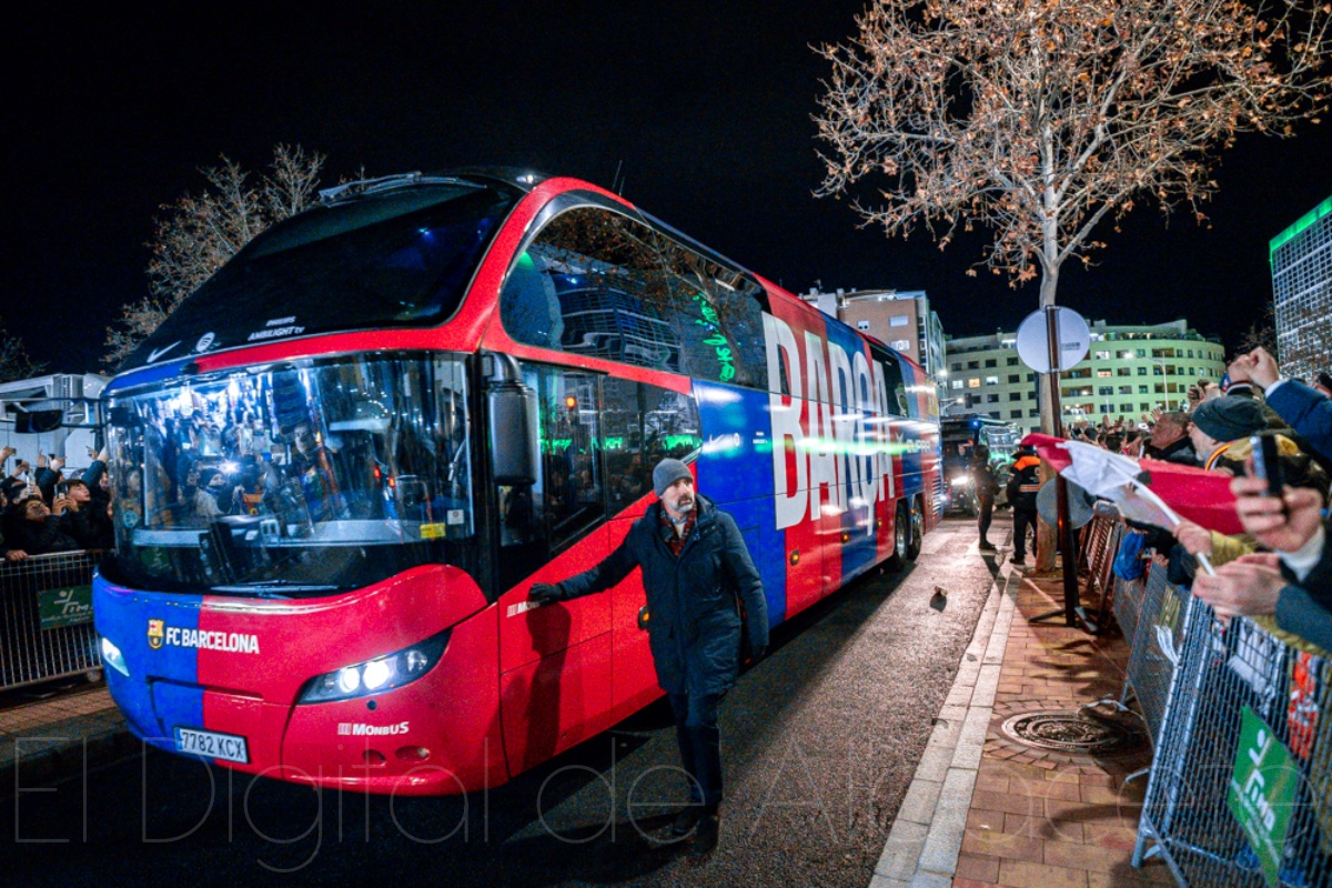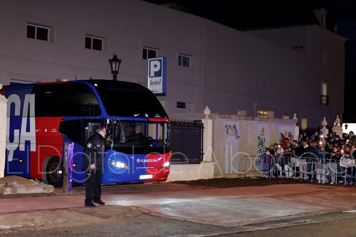 El día arrancó temprano, con la expectación desbordándose fuera del estadio y, antes, incluso fuera de la ciudad. Hubo aficionados aguardando la llegada azulgrana en el Aeropuerto de Albacete-Los Llanos y también a las puertas del hotel de concentración, buscando un gesto, una mirada, un autógrafo que convertir en recuerdo de por vida.