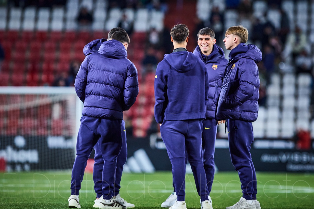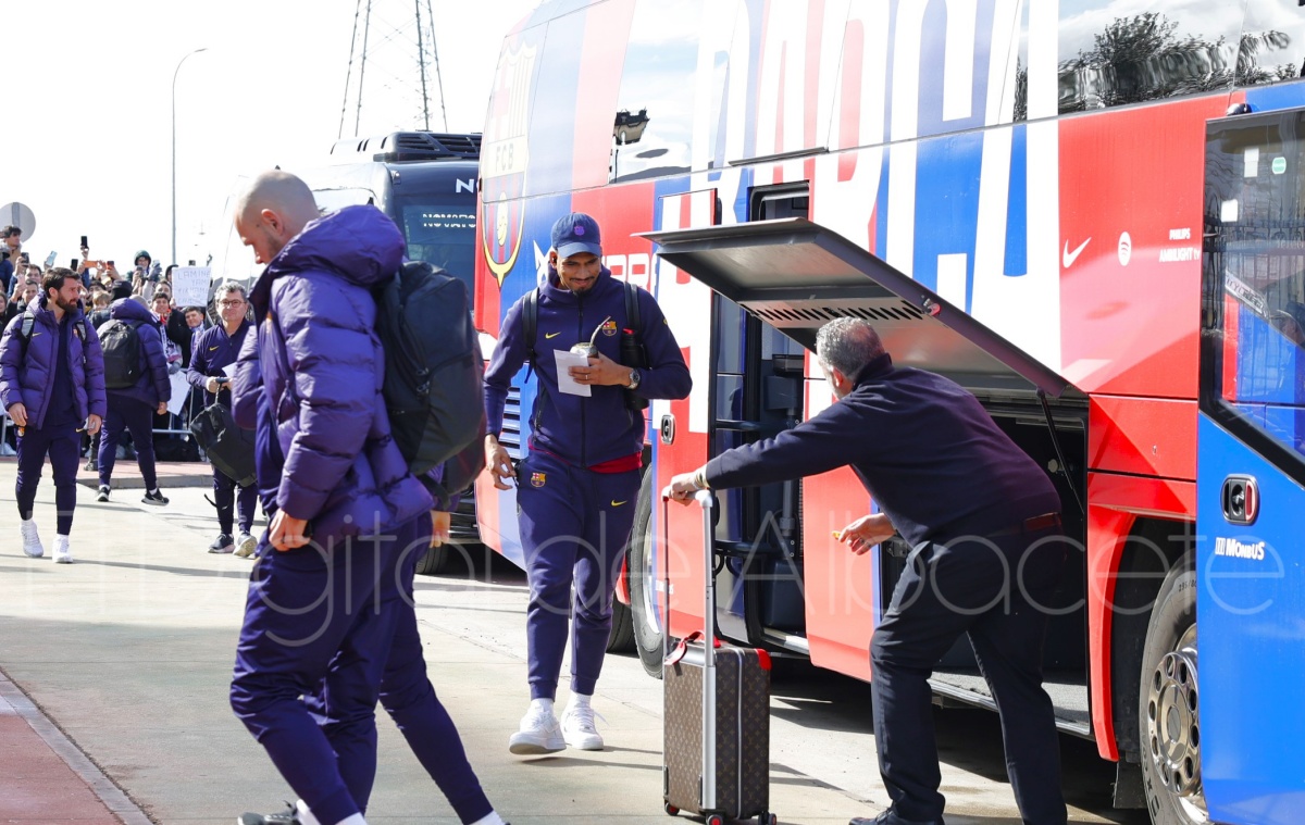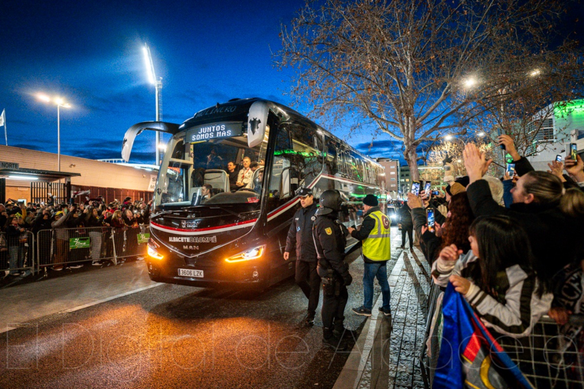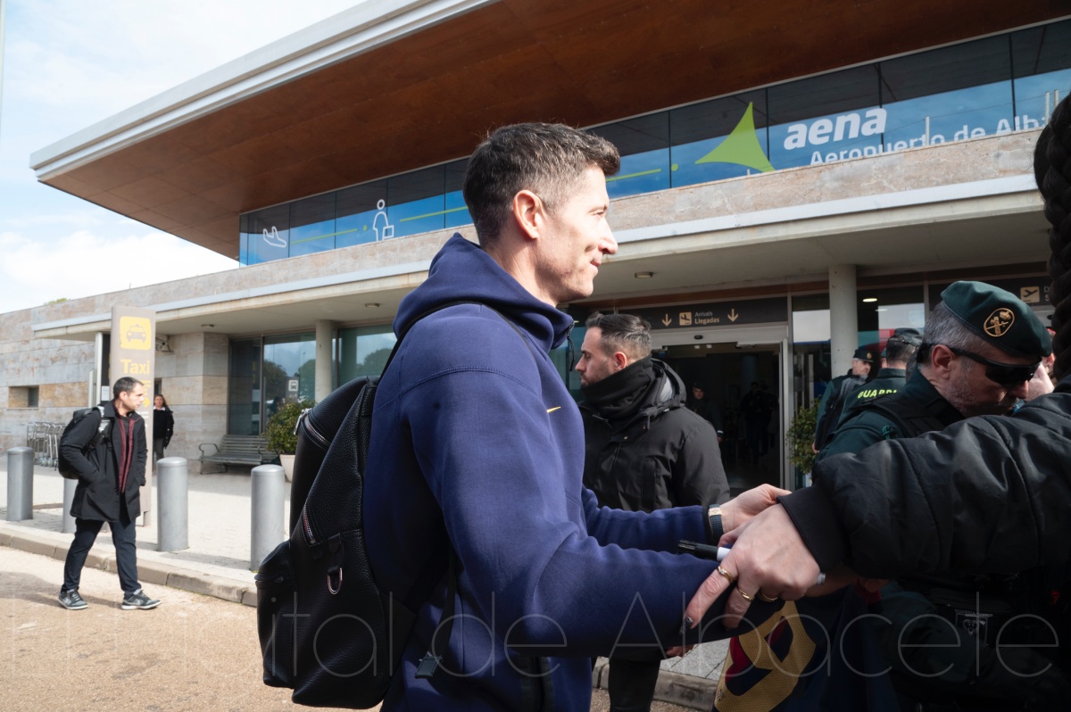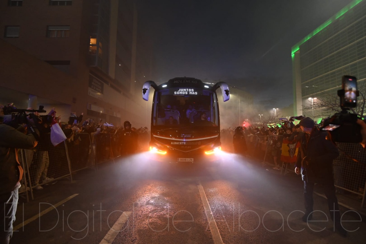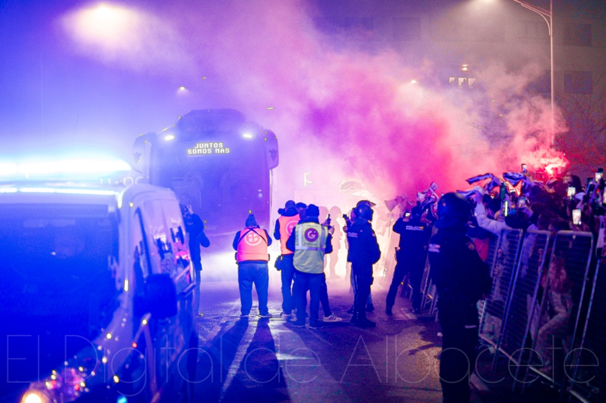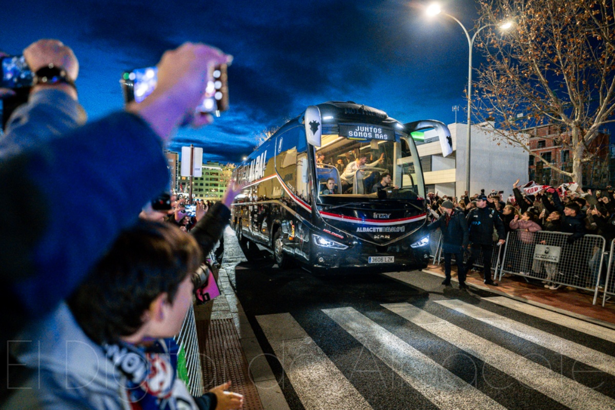 El día arrancó temprano, con la expectación desbordándose fuera del estadio y, antes, incluso fuera de la ciudad. Hubo aficionados aguardando la llegada azulgrana en el Aeropuerto de Albacete-Los Llanos y también a las puertas del hotel de concentración, buscando un gesto, una mirada, un autógrafo que convertir en recuerdo de por vida.