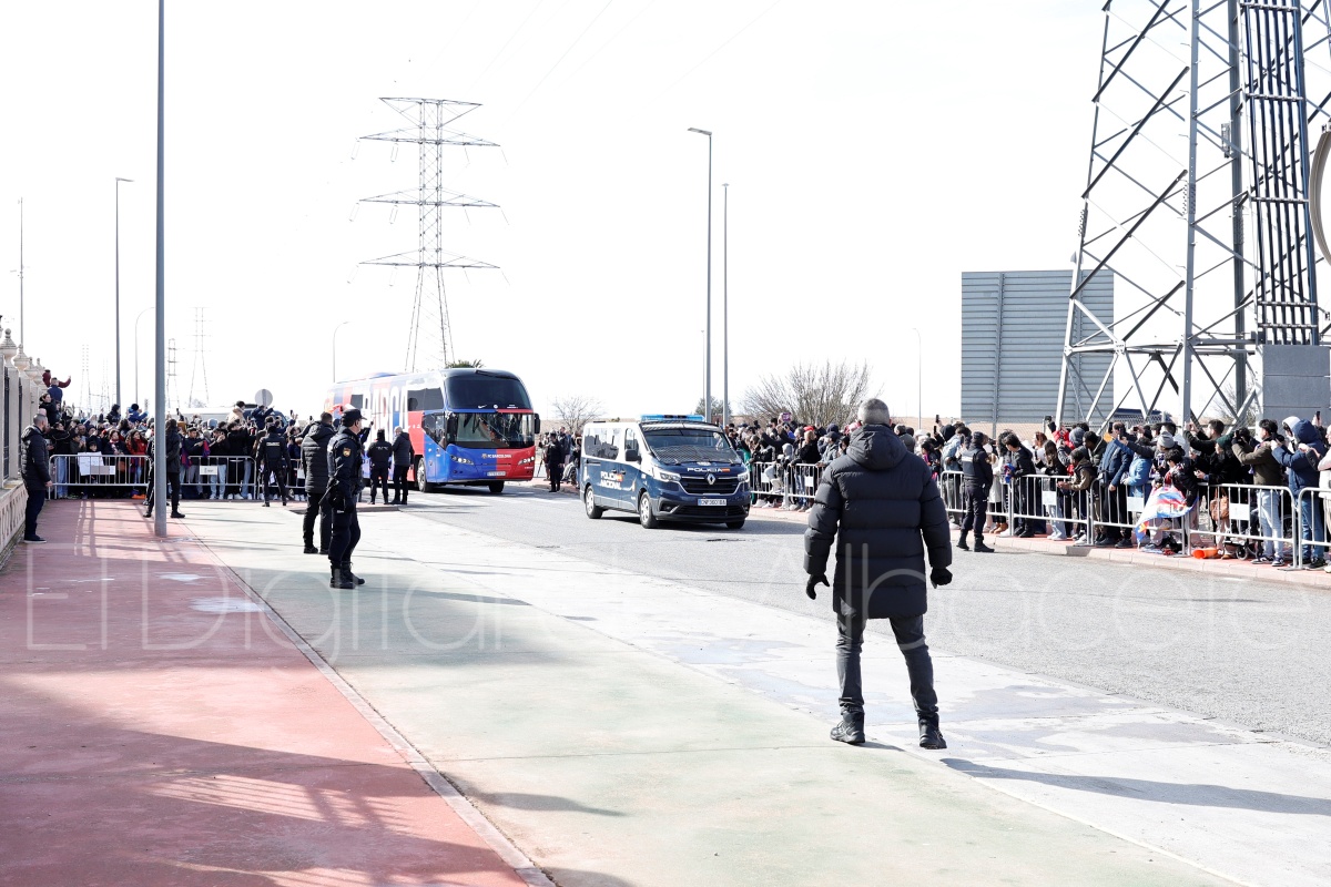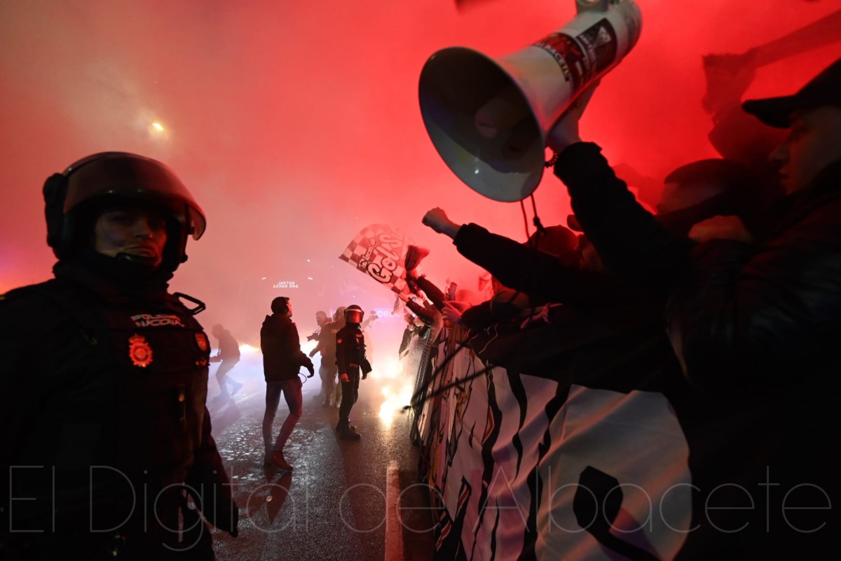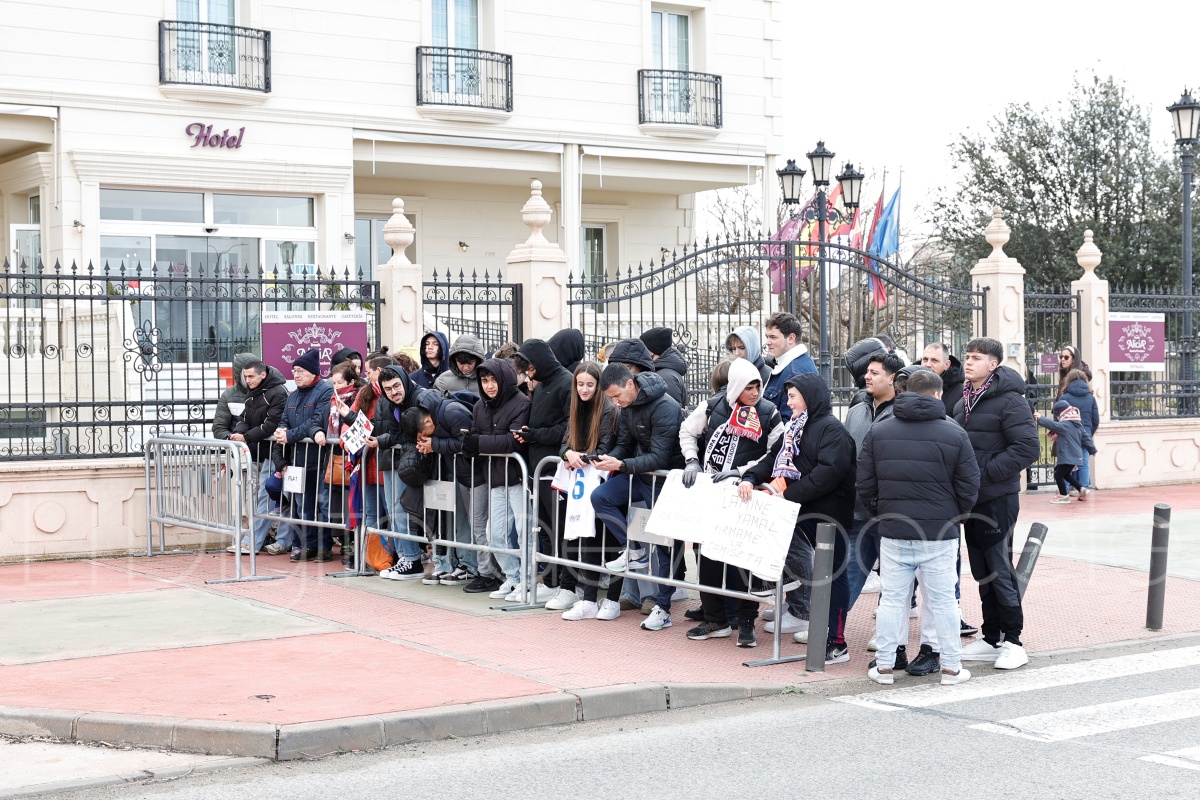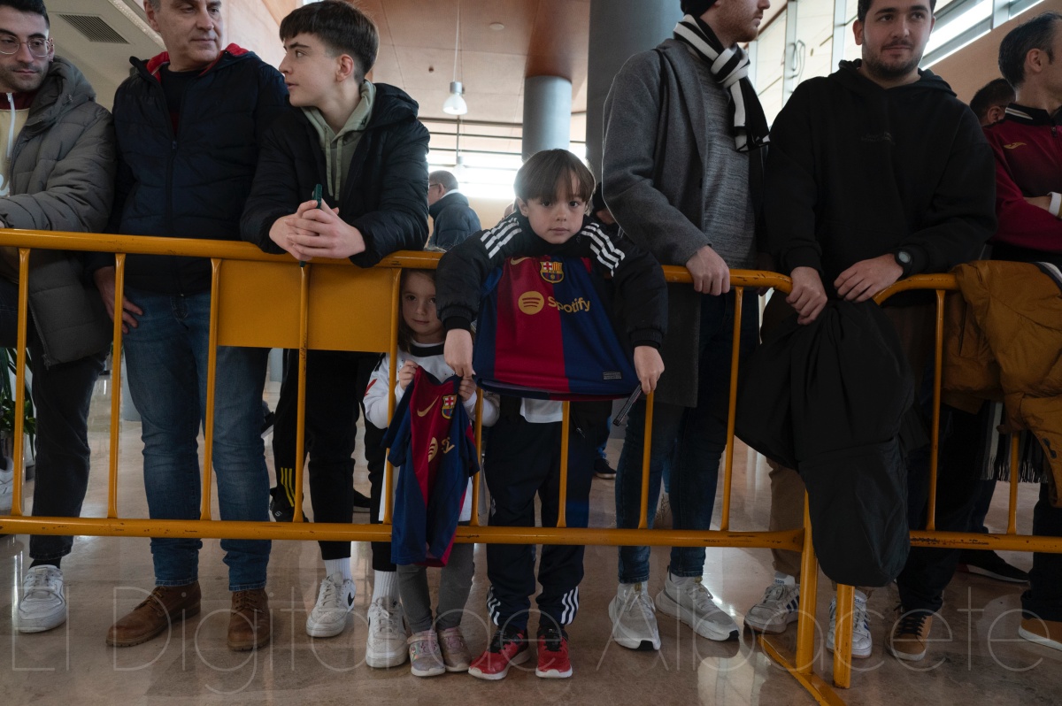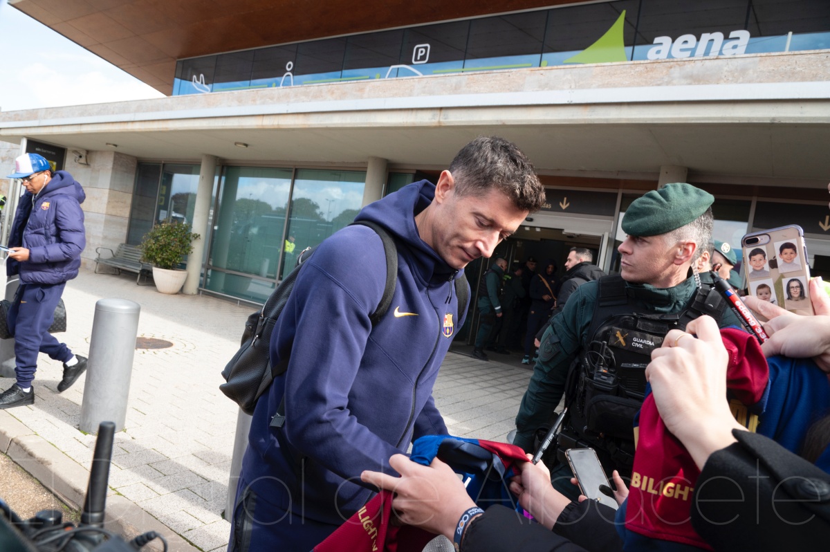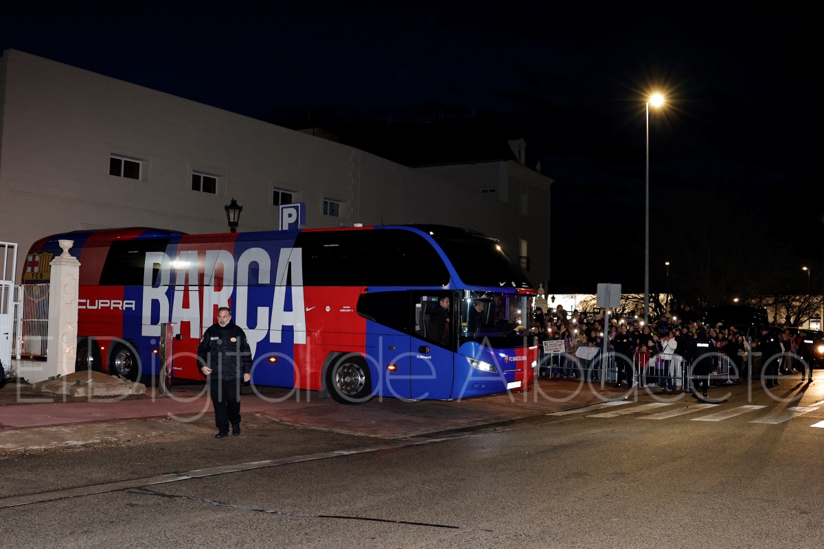 El día arrancó temprano, con la expectación desbordándose fuera del estadio y, antes, incluso fuera de la ciudad. Hubo aficionados aguardando la llegada azulgrana en el Aeropuerto de Albacete-Los Llanos y también a las puertas del hotel de concentración, buscando un gesto, una mirada, un autógrafo que convertir en recuerdo de por vida.