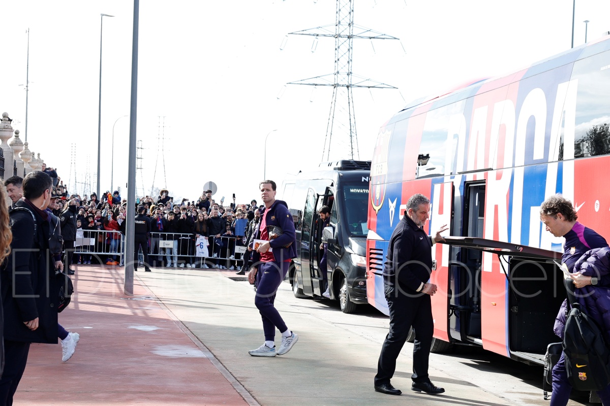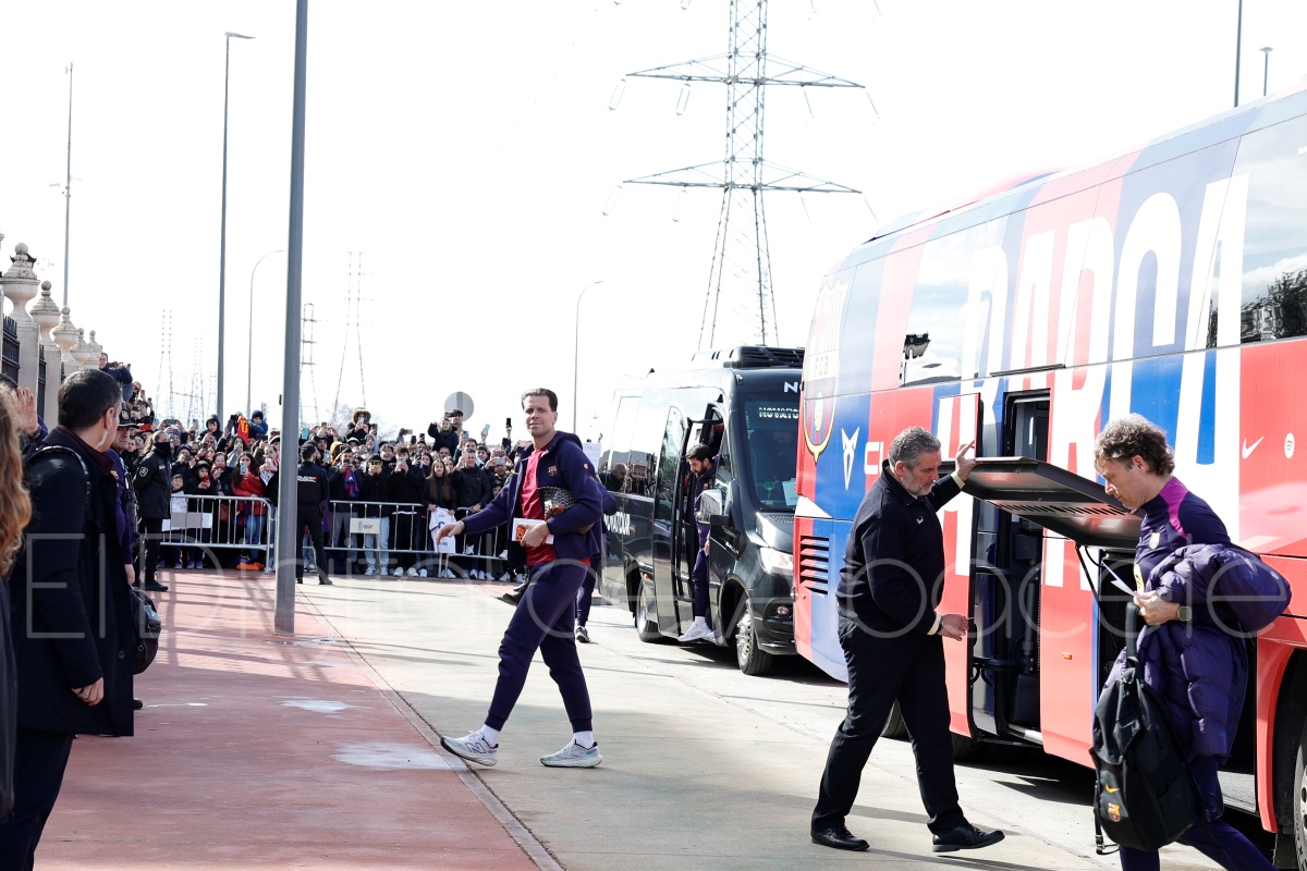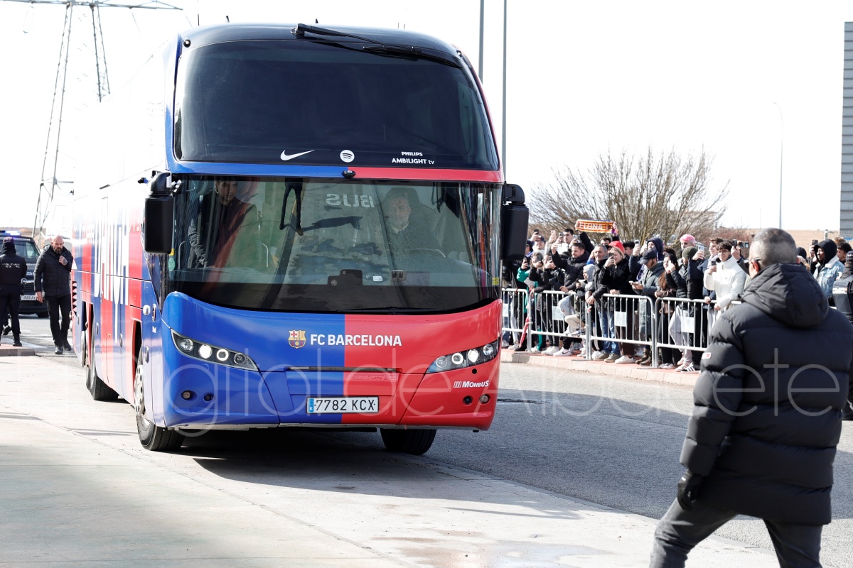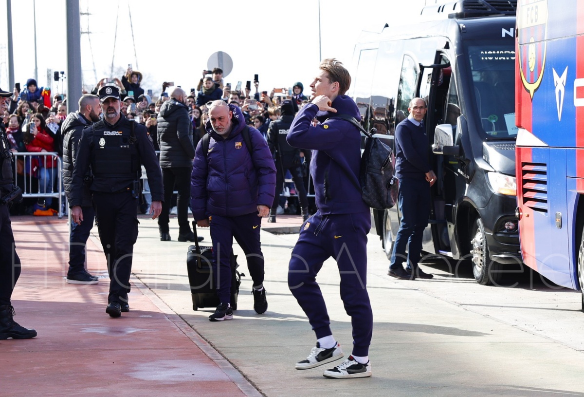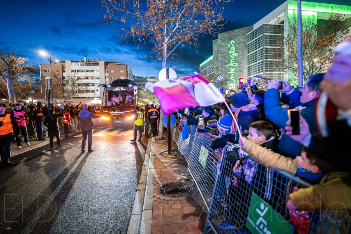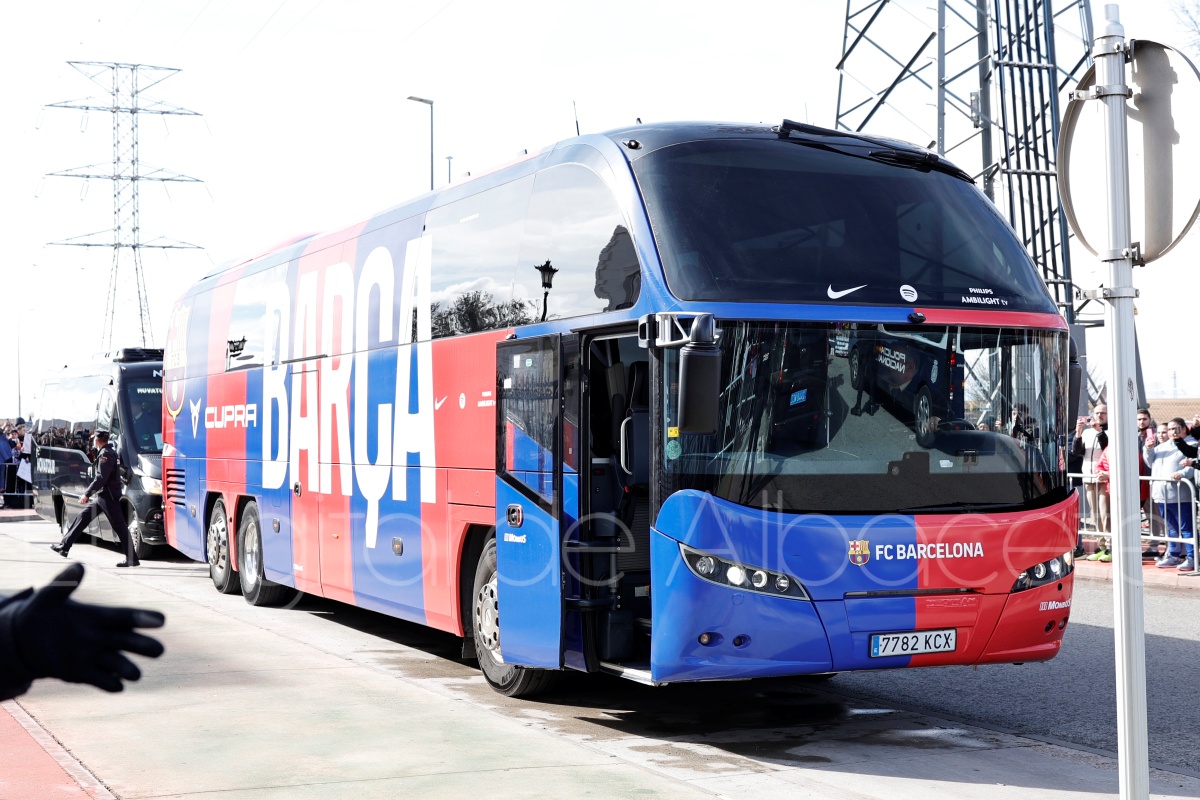 El día arrancó temprano, con la expectación desbordándose fuera del estadio y, antes, incluso fuera de la ciudad. Hubo aficionados aguardando la llegada azulgrana en el Aeropuerto de Albacete-Los Llanos y también a las puertas del hotel de concentración, buscando un gesto, una mirada, un autógrafo que convertir en recuerdo de por vida.