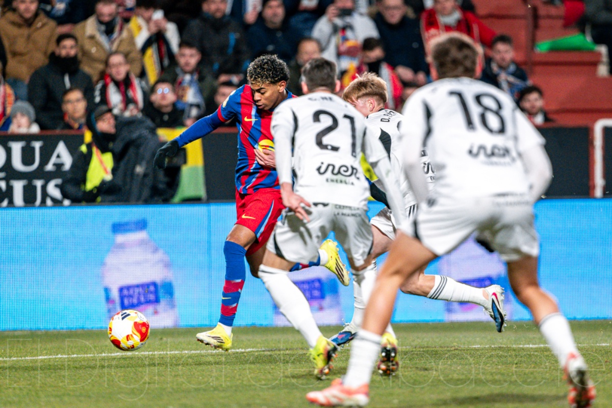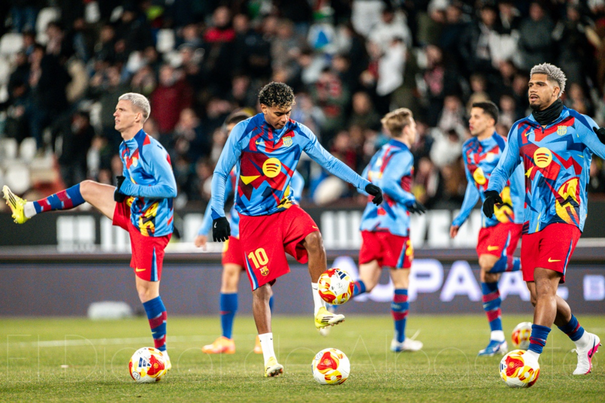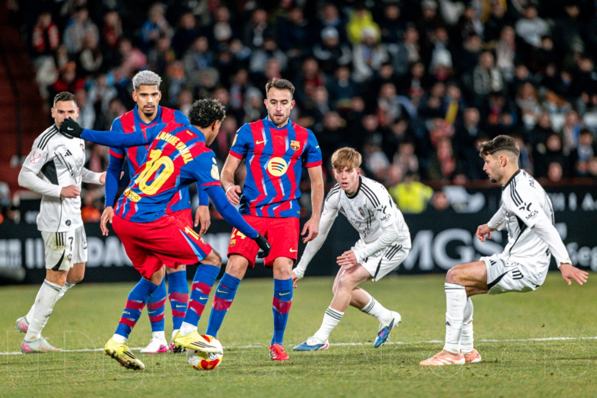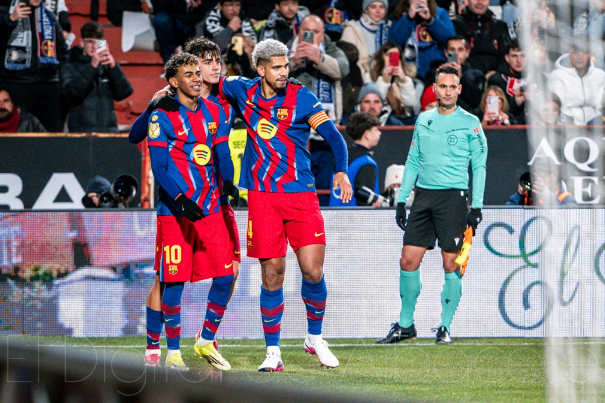 El encuentro respondió a la magnitud del contexto: un Segunda desafiando al campeón, un estadio a rebosar, y un guion que fue mutando hasta desembocar en un final de uñas mordidas. El Barcelona se adelantó con un gol de Lamine Yamal al filo de la media hora larga y amplió su ventaja tras el descanso con un cabezazo de Ronald Araujo a la salida de un córner.