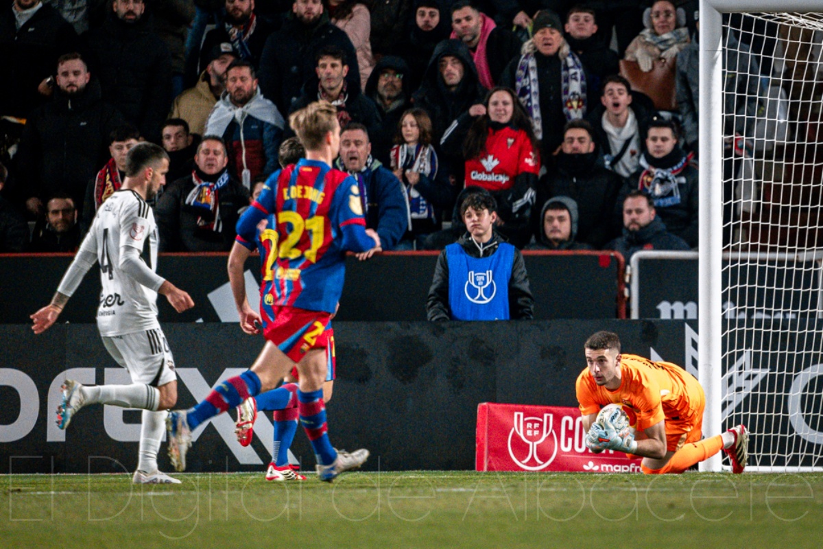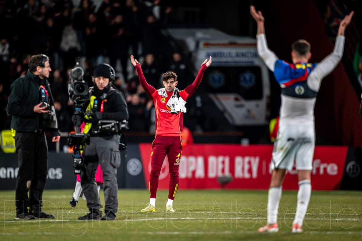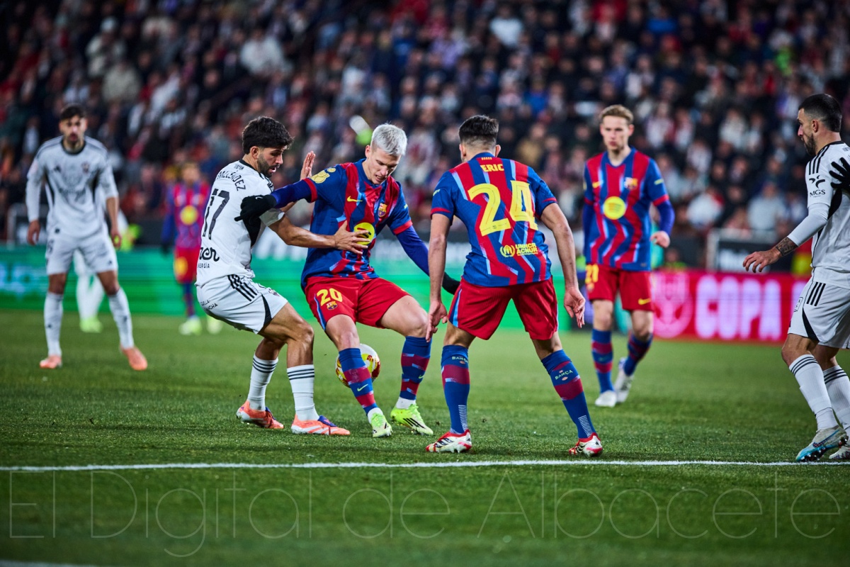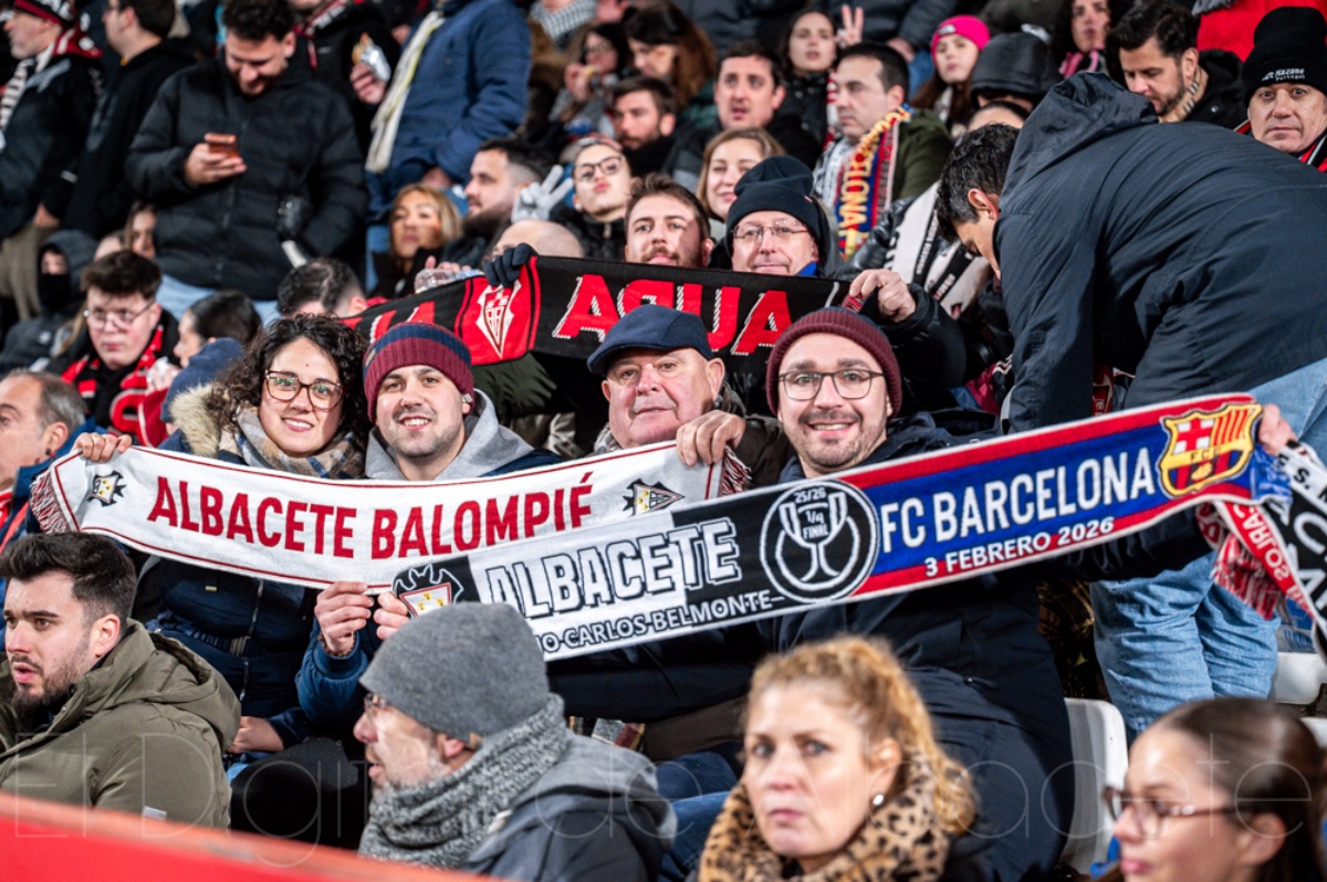 La ciudad de Albacete se levantó ayer martes, 3 de febrero, con esa electricidad que sólo traen los días grandes: los que se cuentan después en la sobremesa, los que se guardan en la memoria como una fotografía que no se borra. Albacete y el Albacete Balompié vivieron una jornada histórica en los cuartos de final de la Copa del Rey, un partido que terminó con victoria del FC Barcelona (1-2), sí, pero también con un Carlos Belmonte lleno hasta el alma y un equipo como el de Alberto González que, en el tramo final, puso contra las cuerdas a un gigante y estuvo a centímetros de empujar el duelo a la prórroga.