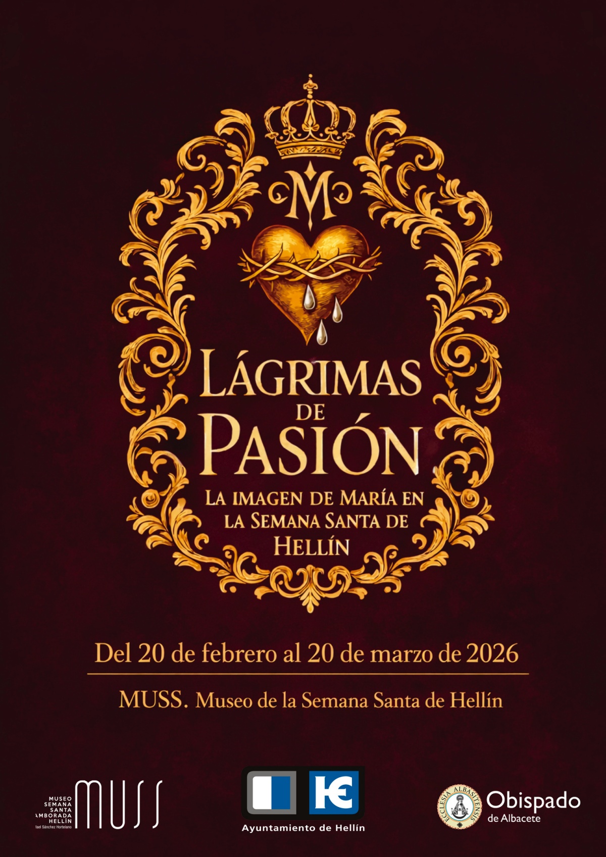 El Museo de la Semana Santa de Hellín (MUSS) acogerá del 20 de febrero al 20 de marzo de 2026 la exposición municipal de Cuaresma ‘Lágrimas de Pasión. La imagen de María en la Semana Santa de Hellín’, una muestra que pone el foco en la figura de la Virgen María como eje espiritual, artístico y devocional de la Semana Santa hellinera.