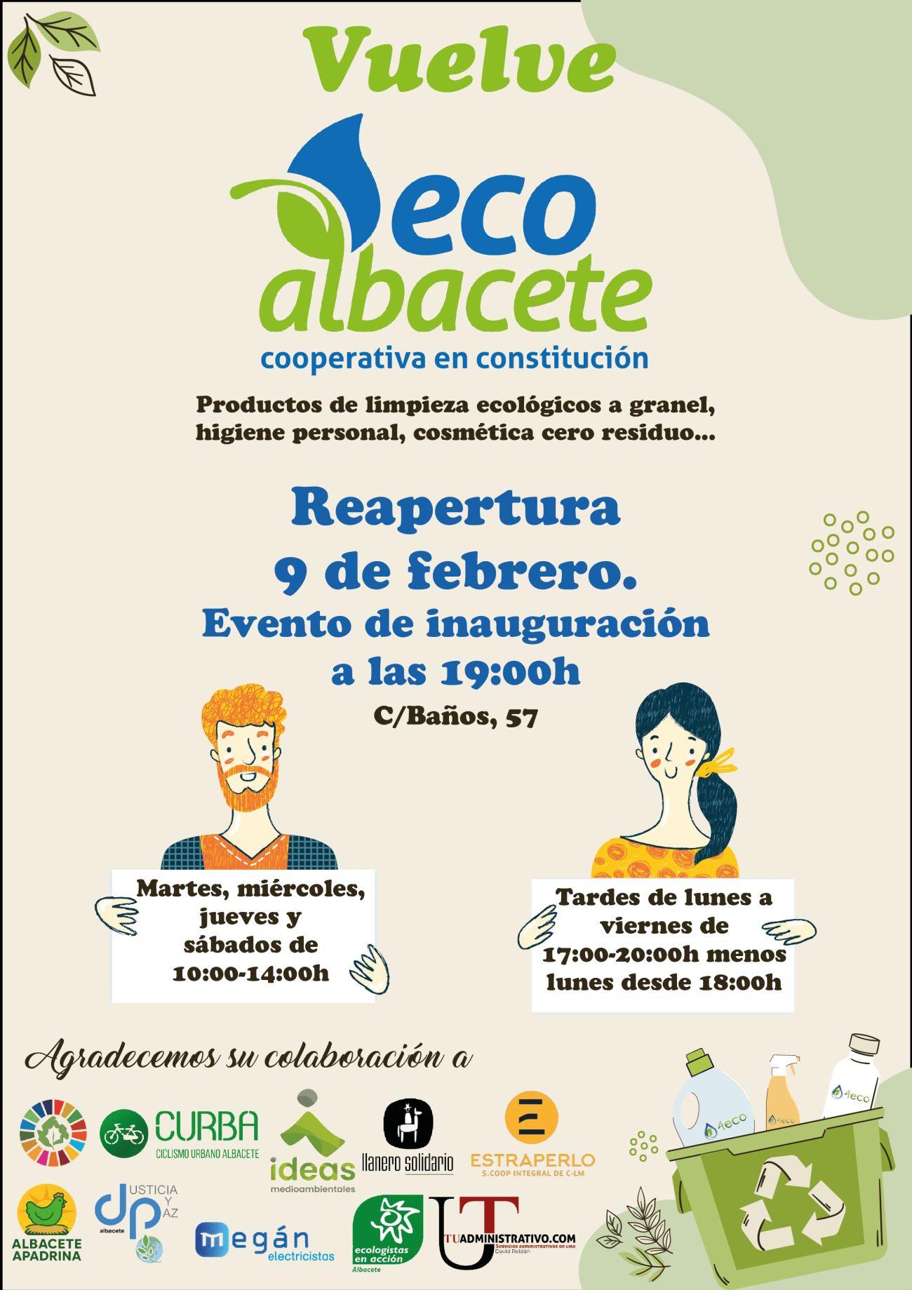 Hoy, esa movilización ciudadana se traduce en una fecha concreta. El próximo 9 de febrero EcoAlbacete reabrirá sus puertas en su local de siempre, en la calle Baños nº 57, esta vez como una cooperativa sin ánimo de lucro propiedad de la propia ciudadanía. Ese mismo día, a partir de las 19:00 horas, se celebrará una fiesta de inauguración de “traje”, abierta a todo el que quiera acercarse.